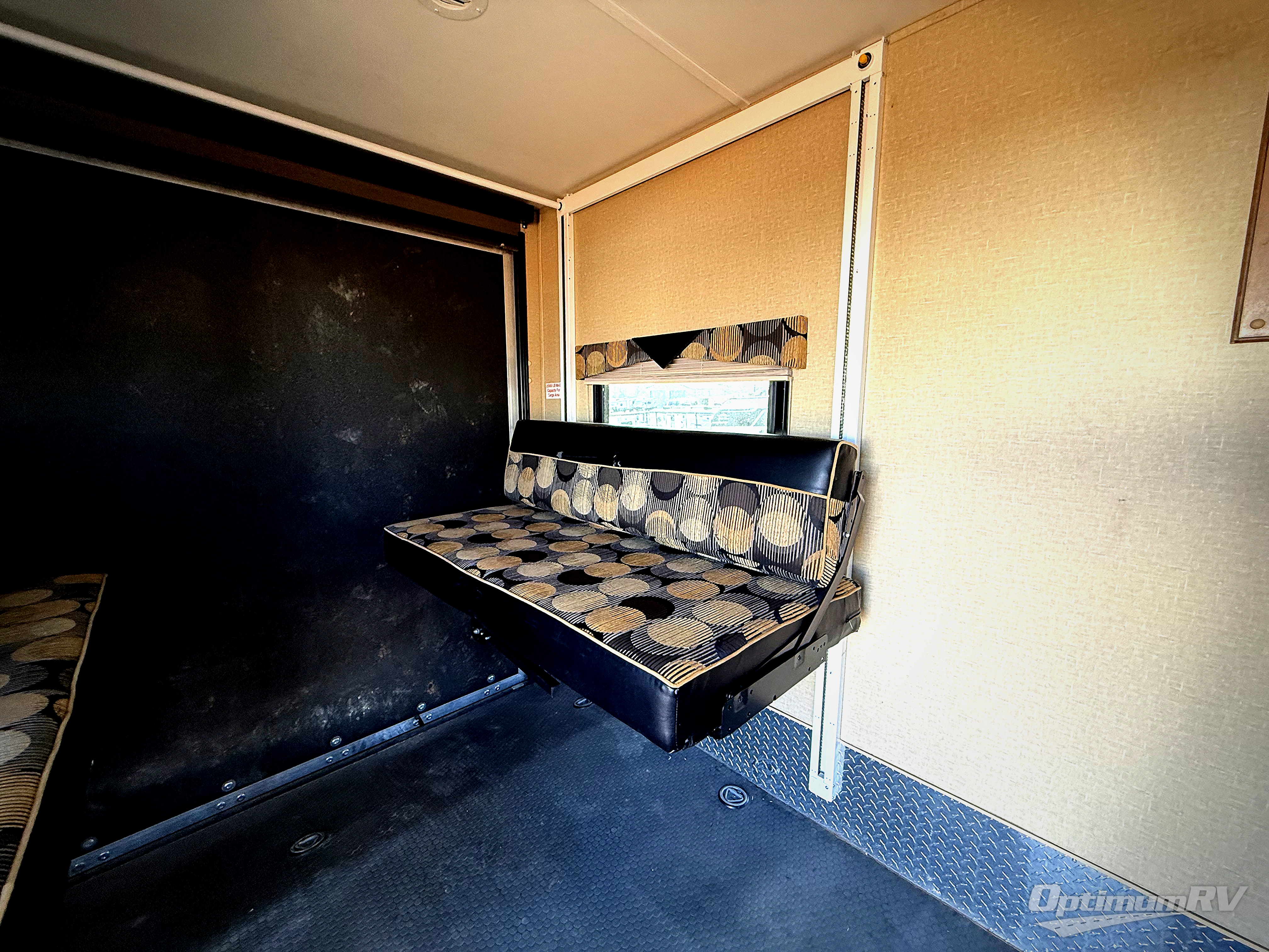 Enter through a rear ramp door to 10' of cargo space within the garage. There is a queen lift bed within the garage area as well as a side man door.
