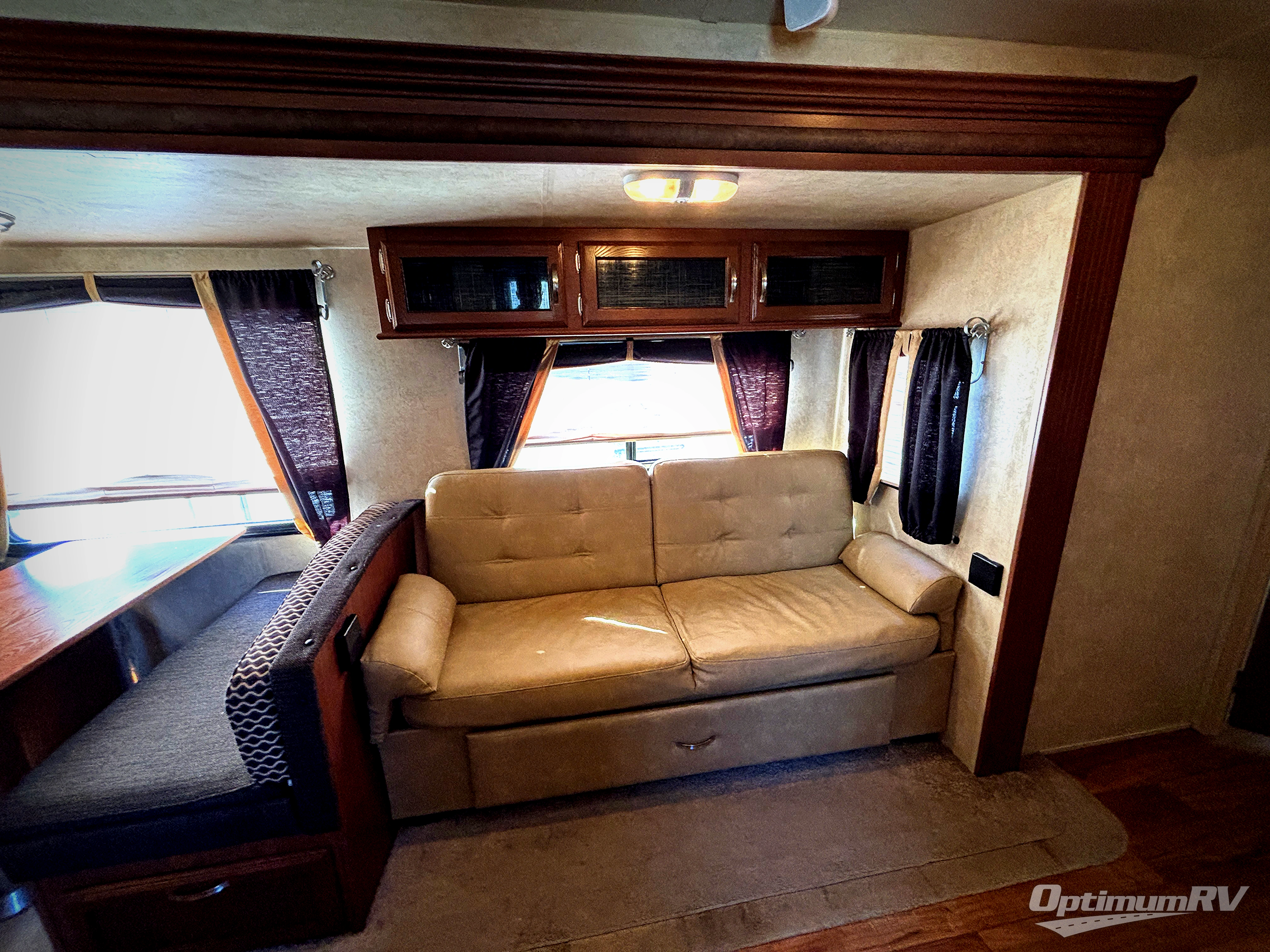 There are plenty of overhead cabinets throughout the travel trailer as well as exterior storage.