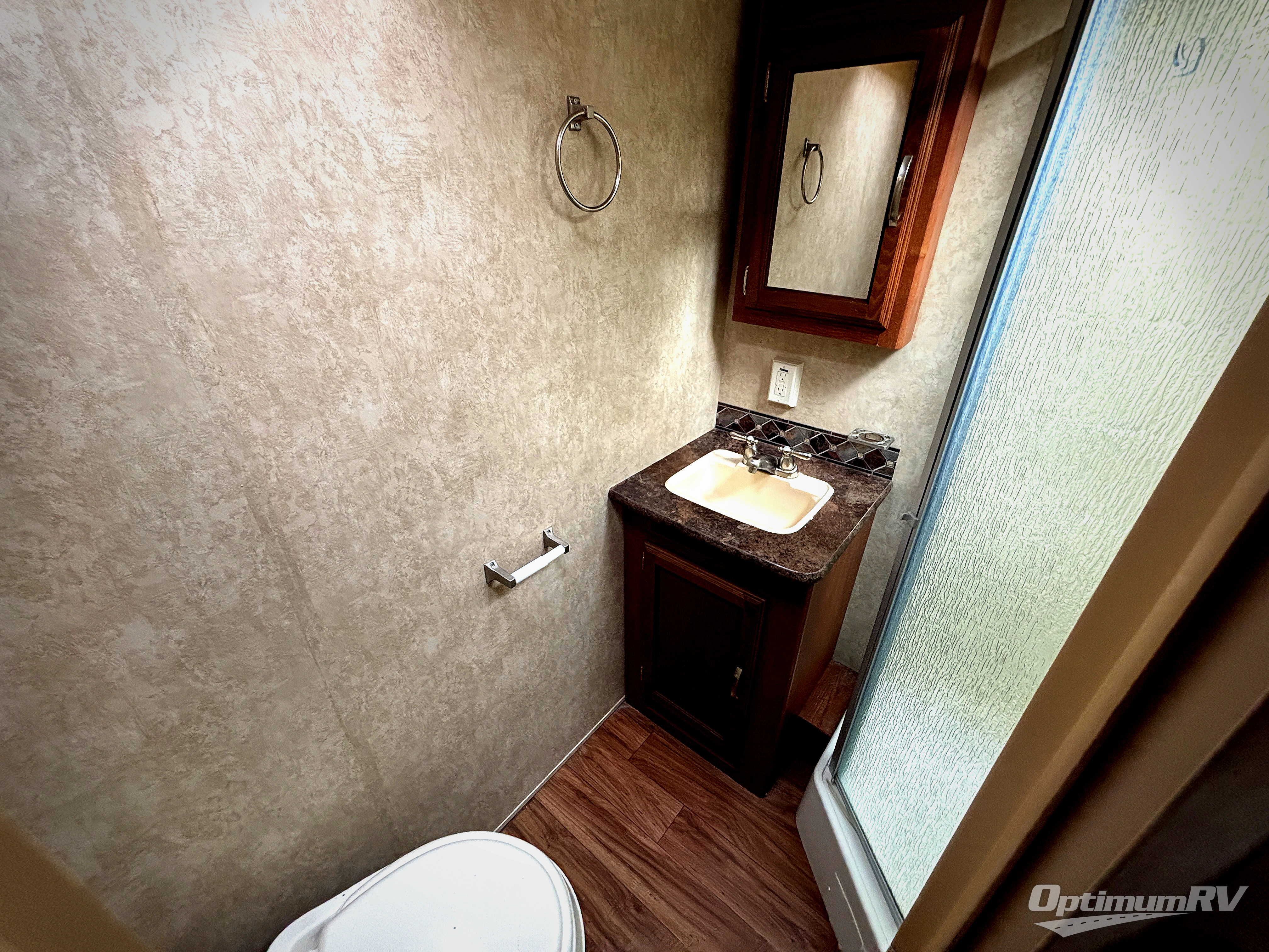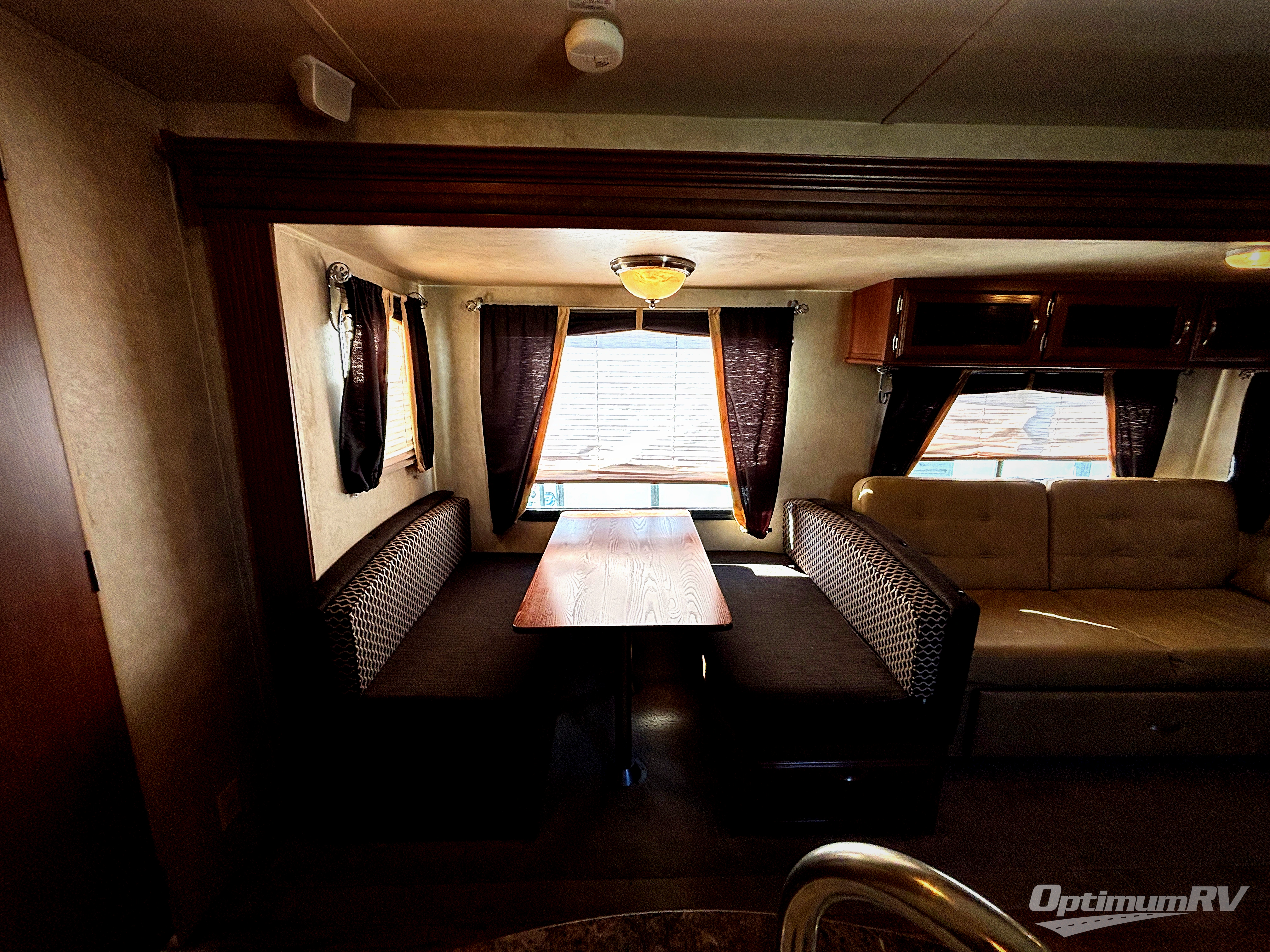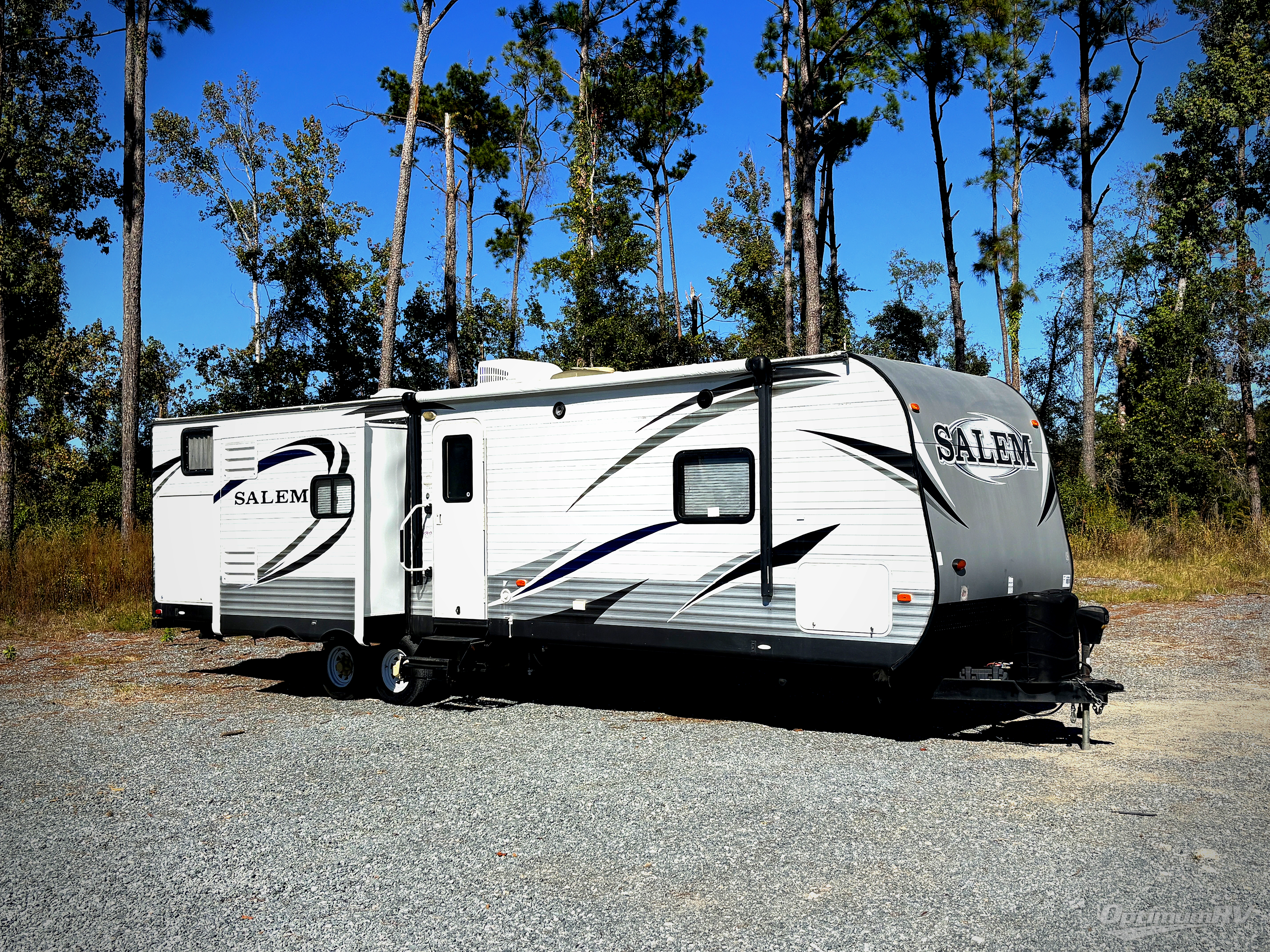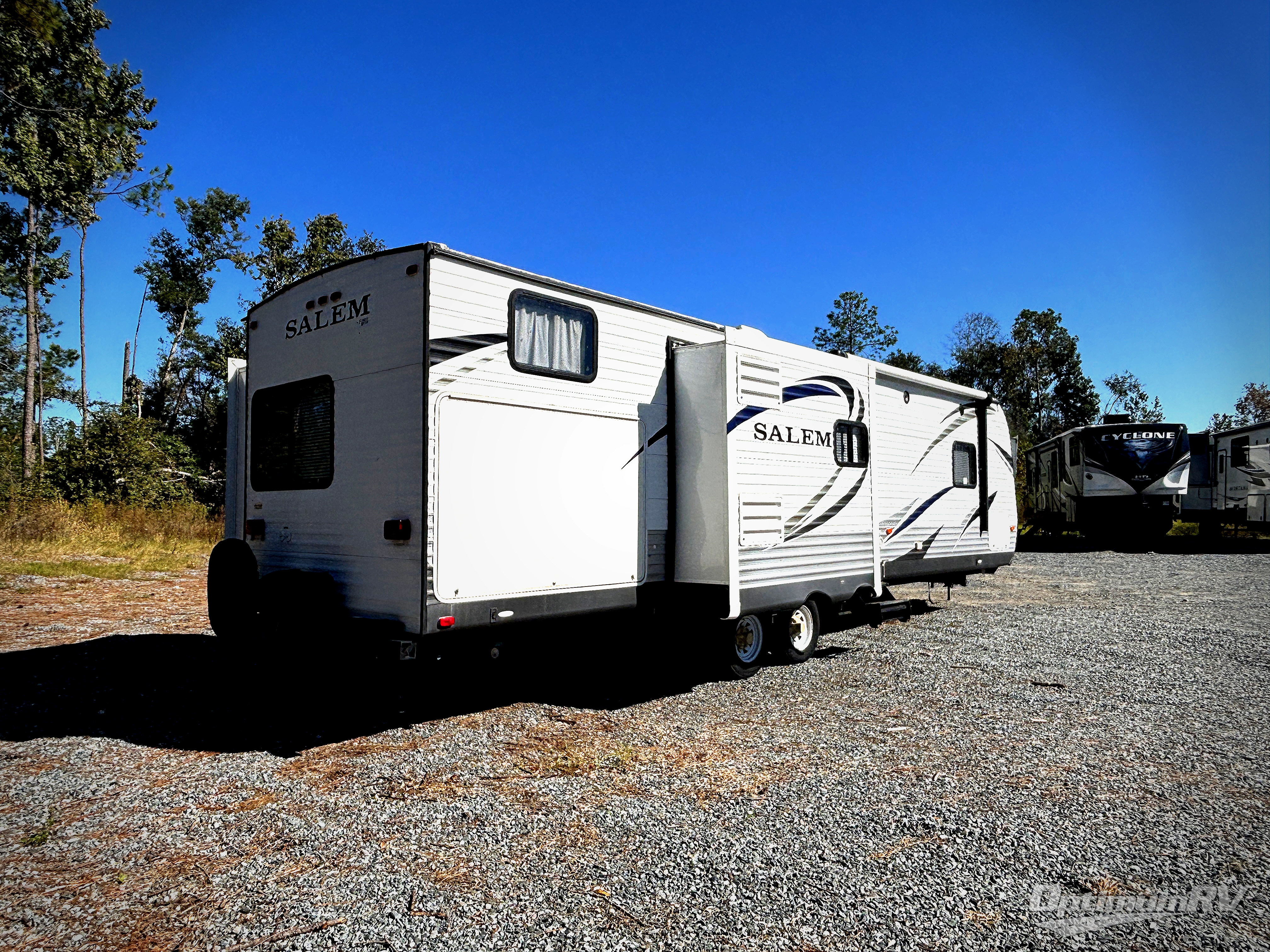 The Salem 31BKIS travel trailer by Forest River offers triple slides and a rear bunk house as well as a kitchen island.