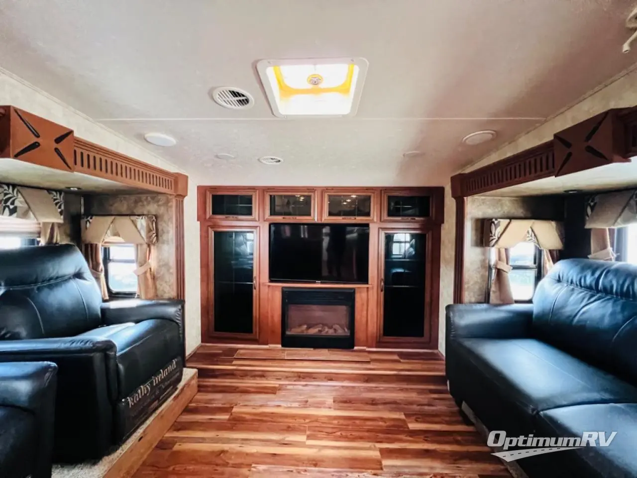 There are plenty of overhead cabinets throughout the fifth wheel as well as a large pass thru storage.