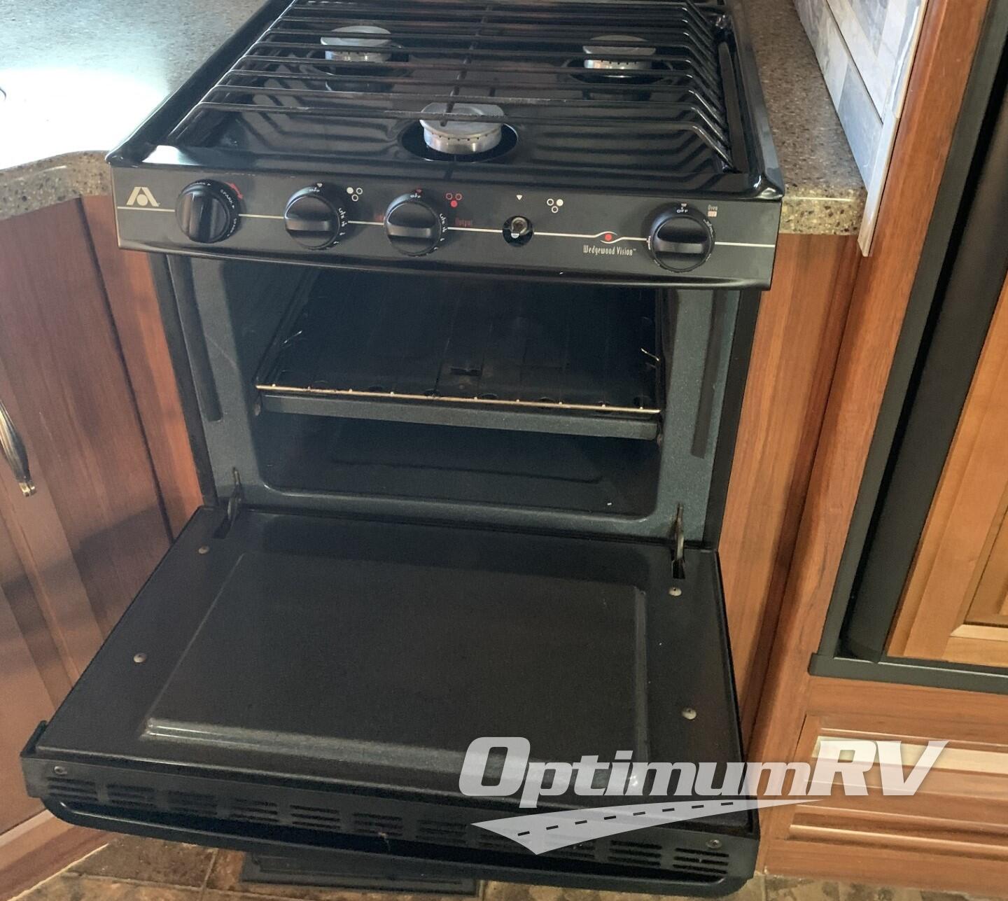 On the opposite side of the slide there is a kitchen where you can easily whip up a meal or snacks for your hungry crew. There is a refrigerator, three burner range, microwave oven, double kitchen sink, and counter top extension too. Plus a pantry located just off the dinette slide for storing all of your dry and canned goods.