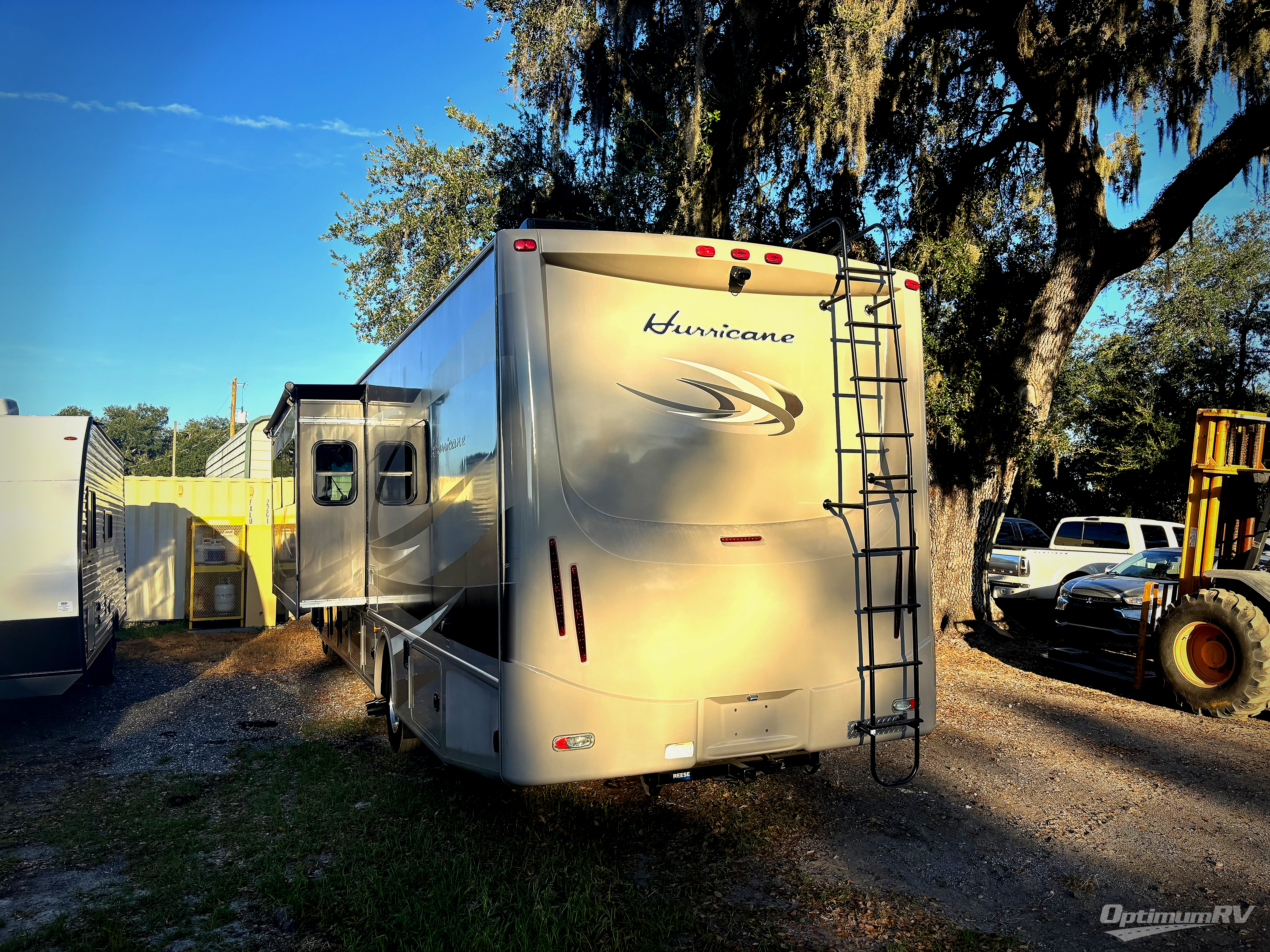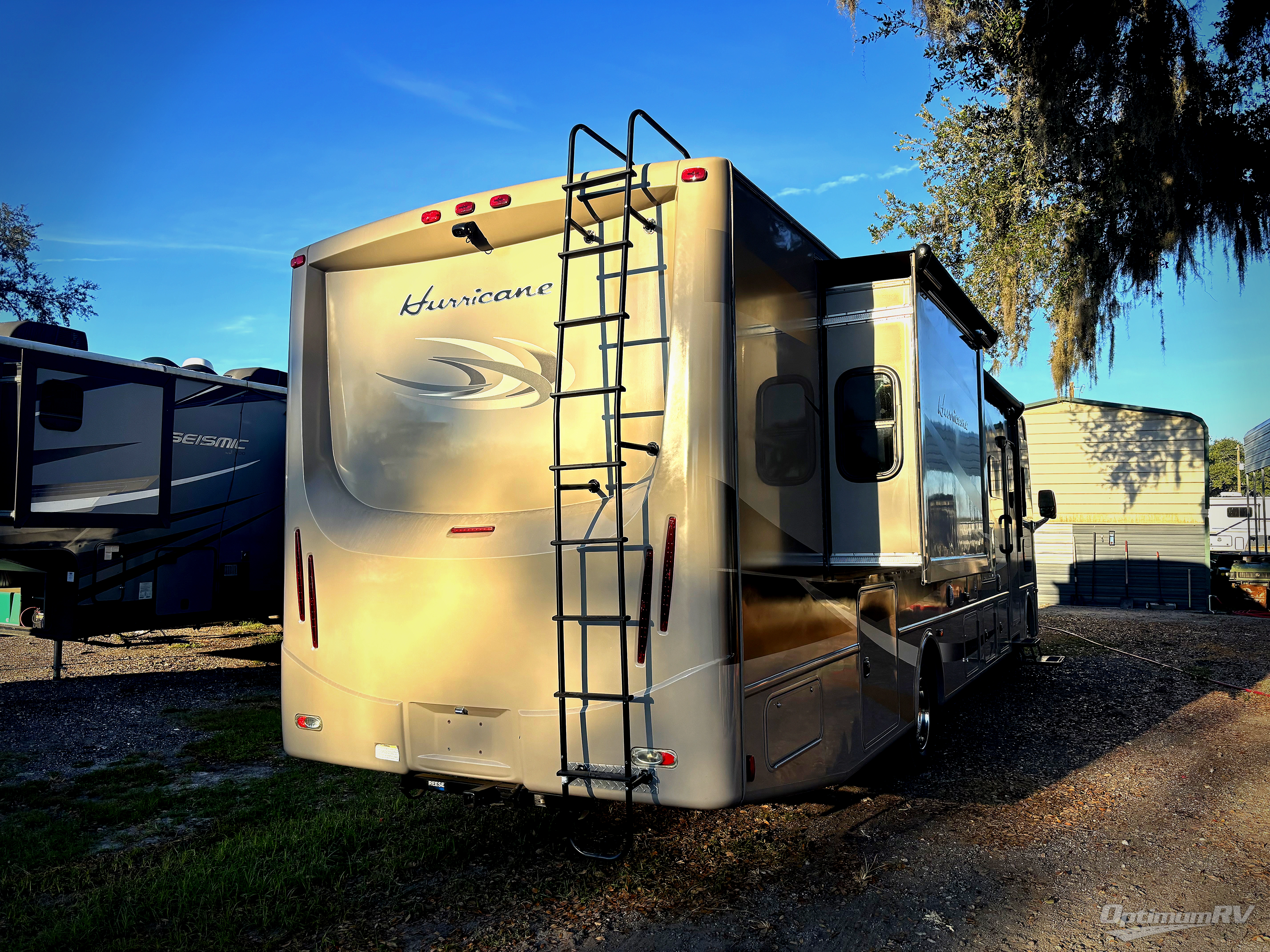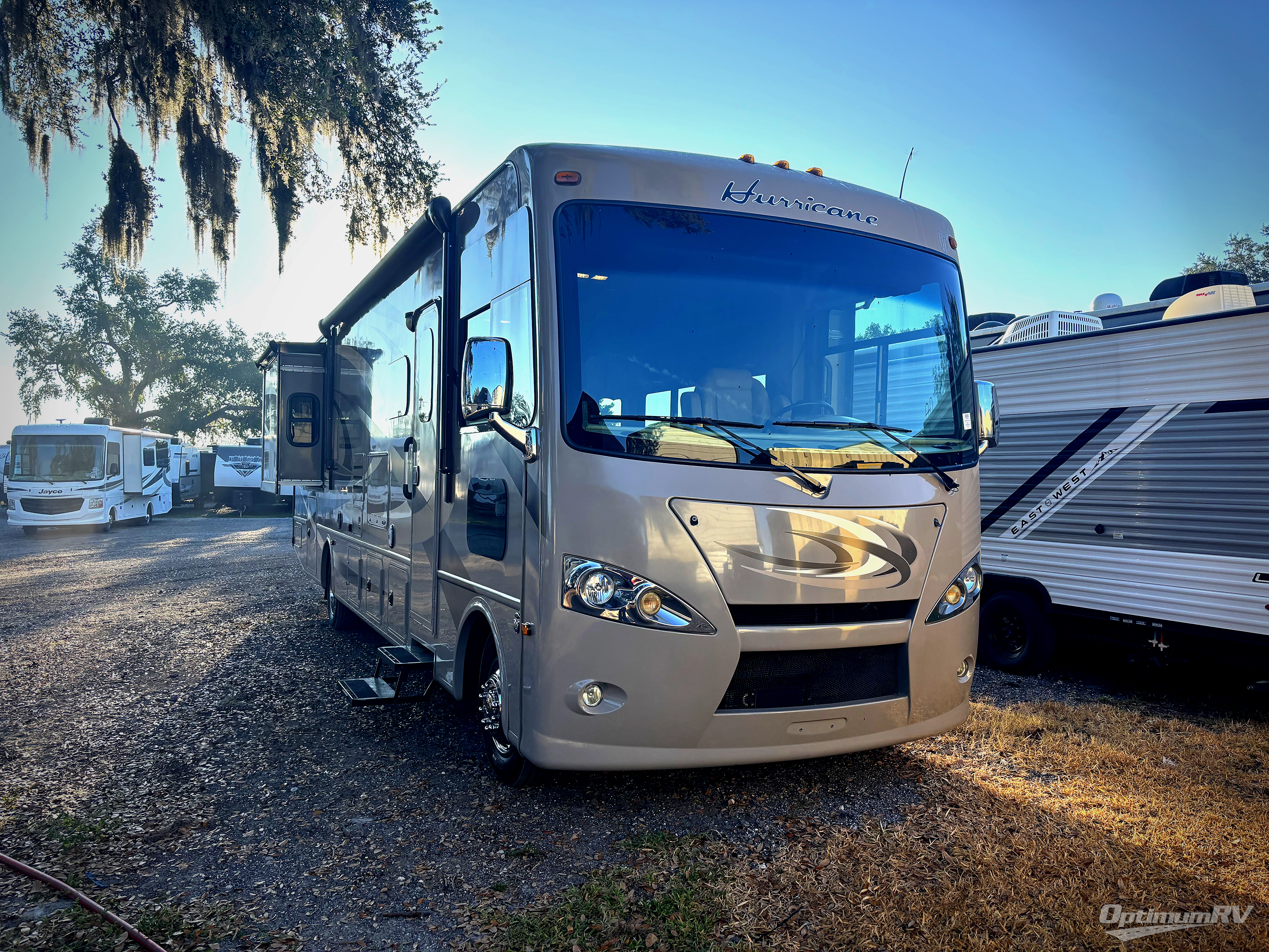 Thor Motor Coach offers the Hurricane 34E class A featuring two slides, a bath and a half and a u-shaped dinette.