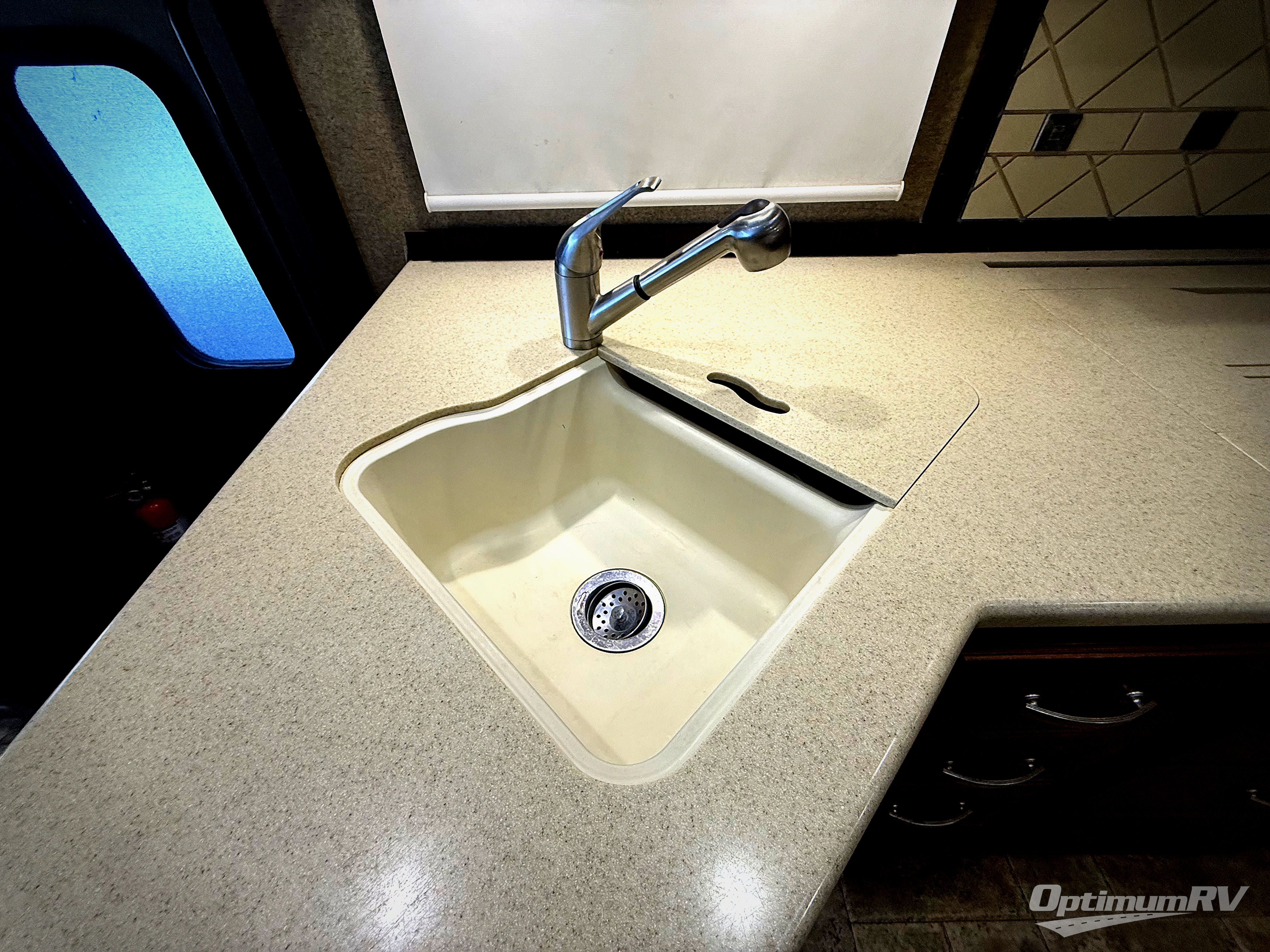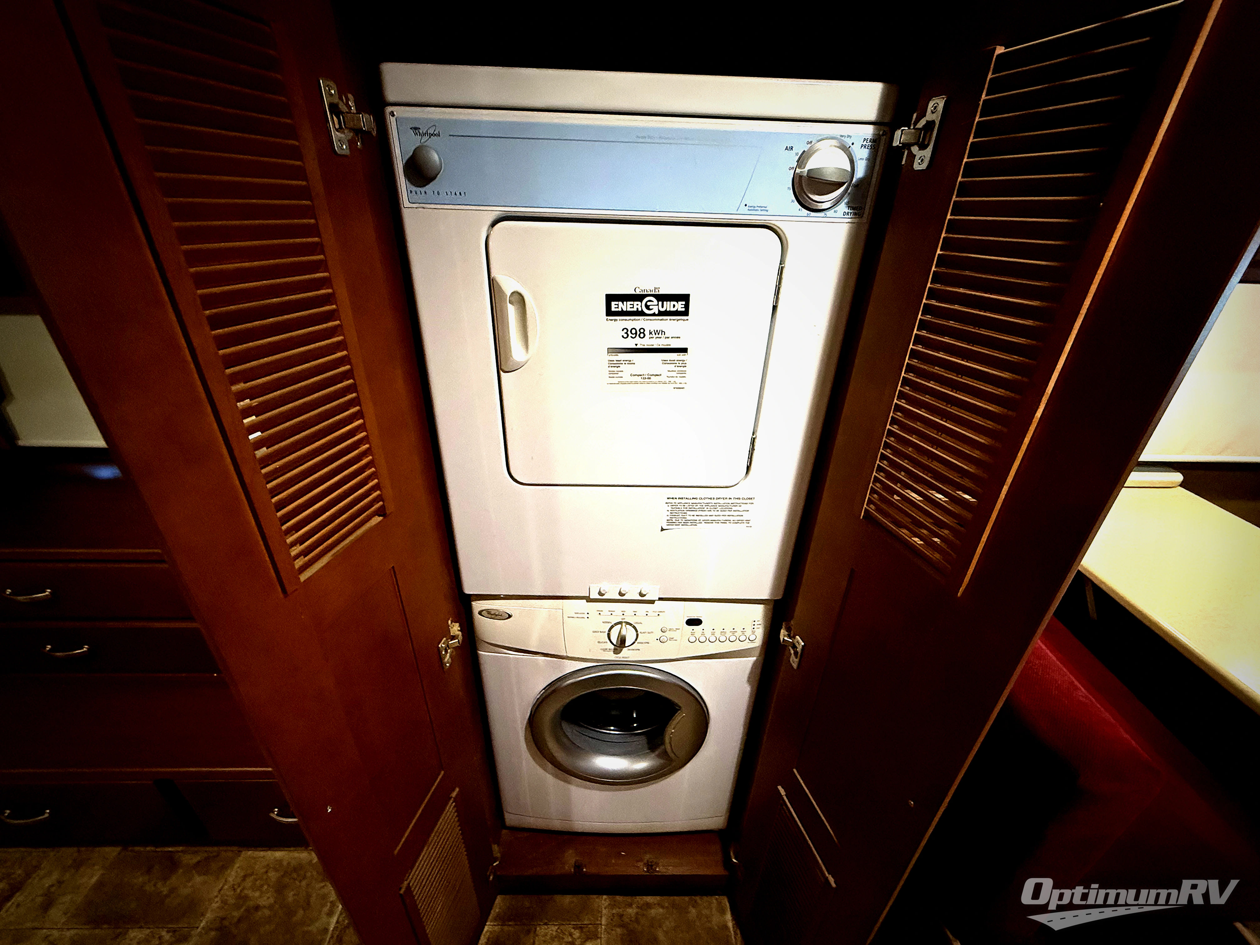 The massive slide out along the road side houses an 84" hide-a-bed sofa, overhead cabinets, a dream dinette booth, a pantry, space for an optional washer/dryer, and within the bedroom two closets and a dresser.