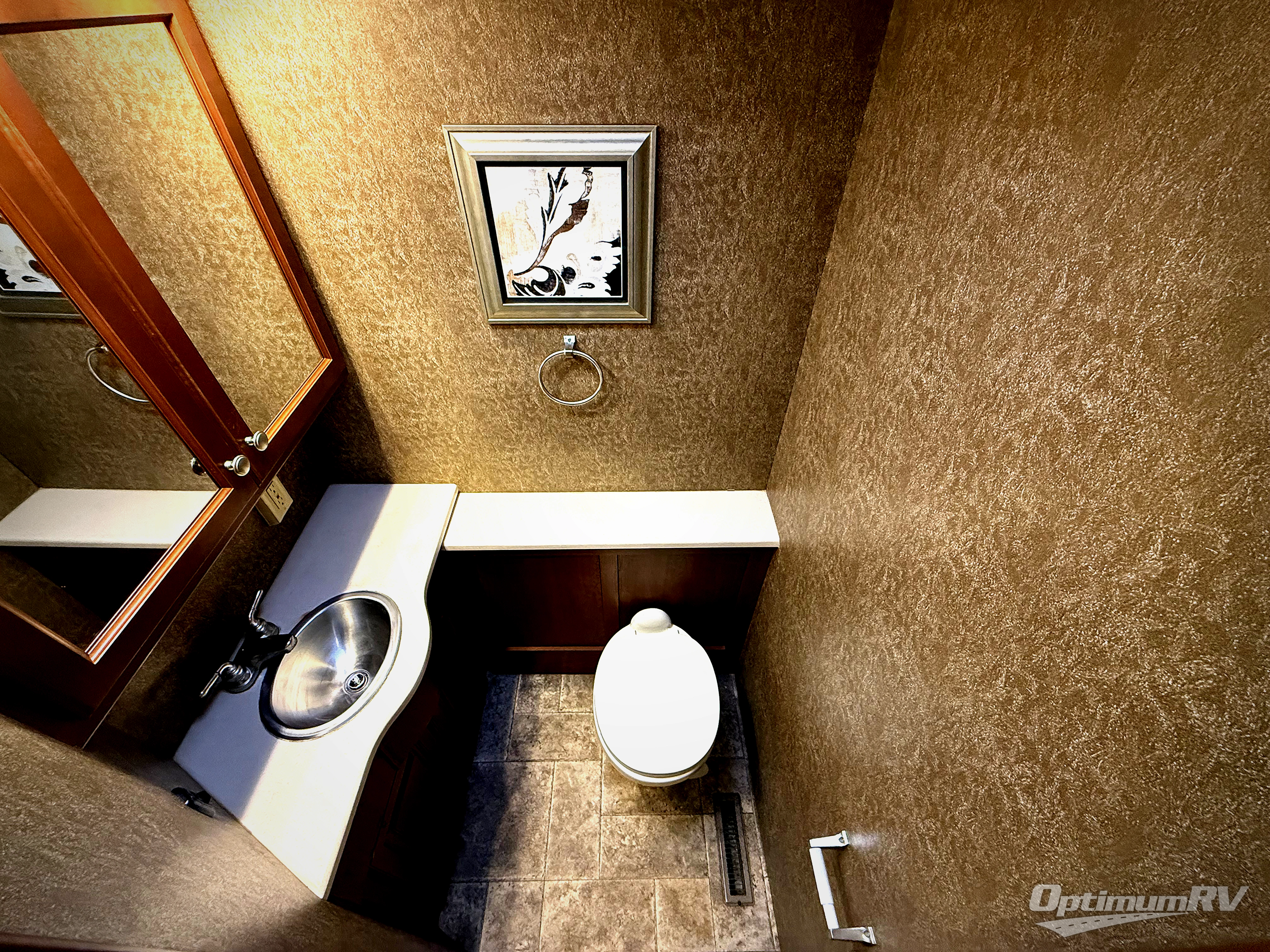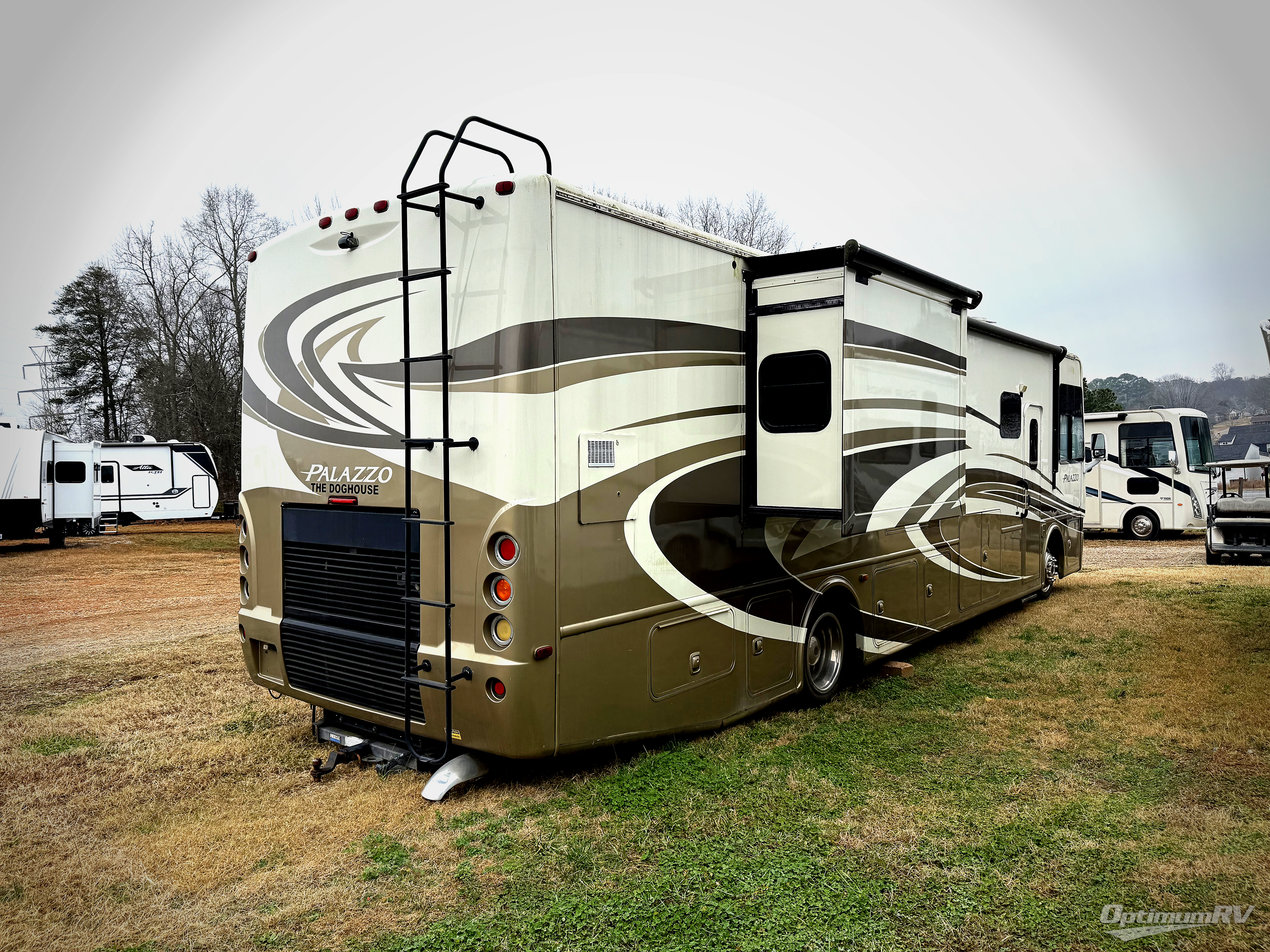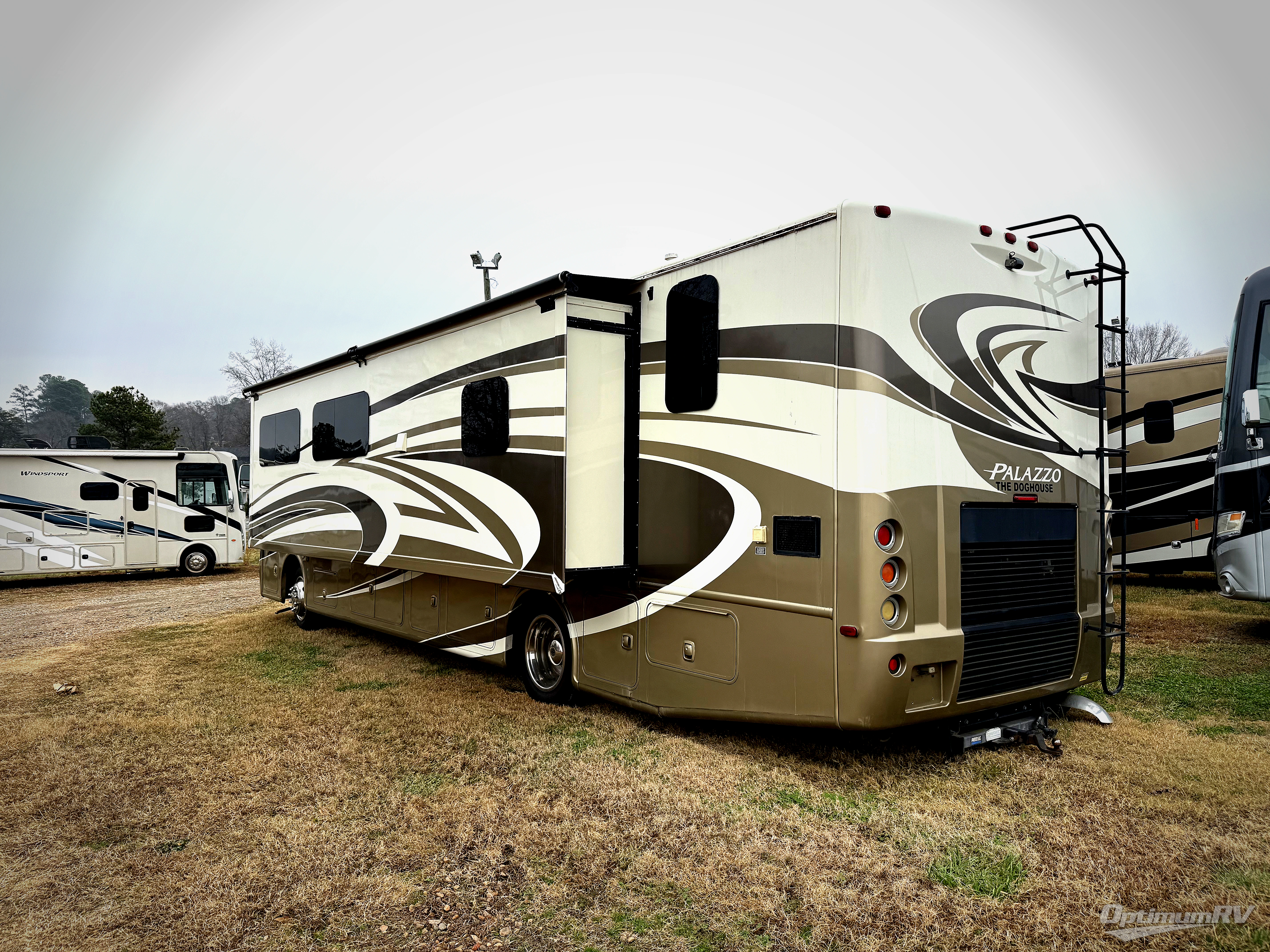 Step into the Palazzo 36.1 class A diesel motorhome from Thor Motor Coach to find a massive road side slide out and a bath and a half.