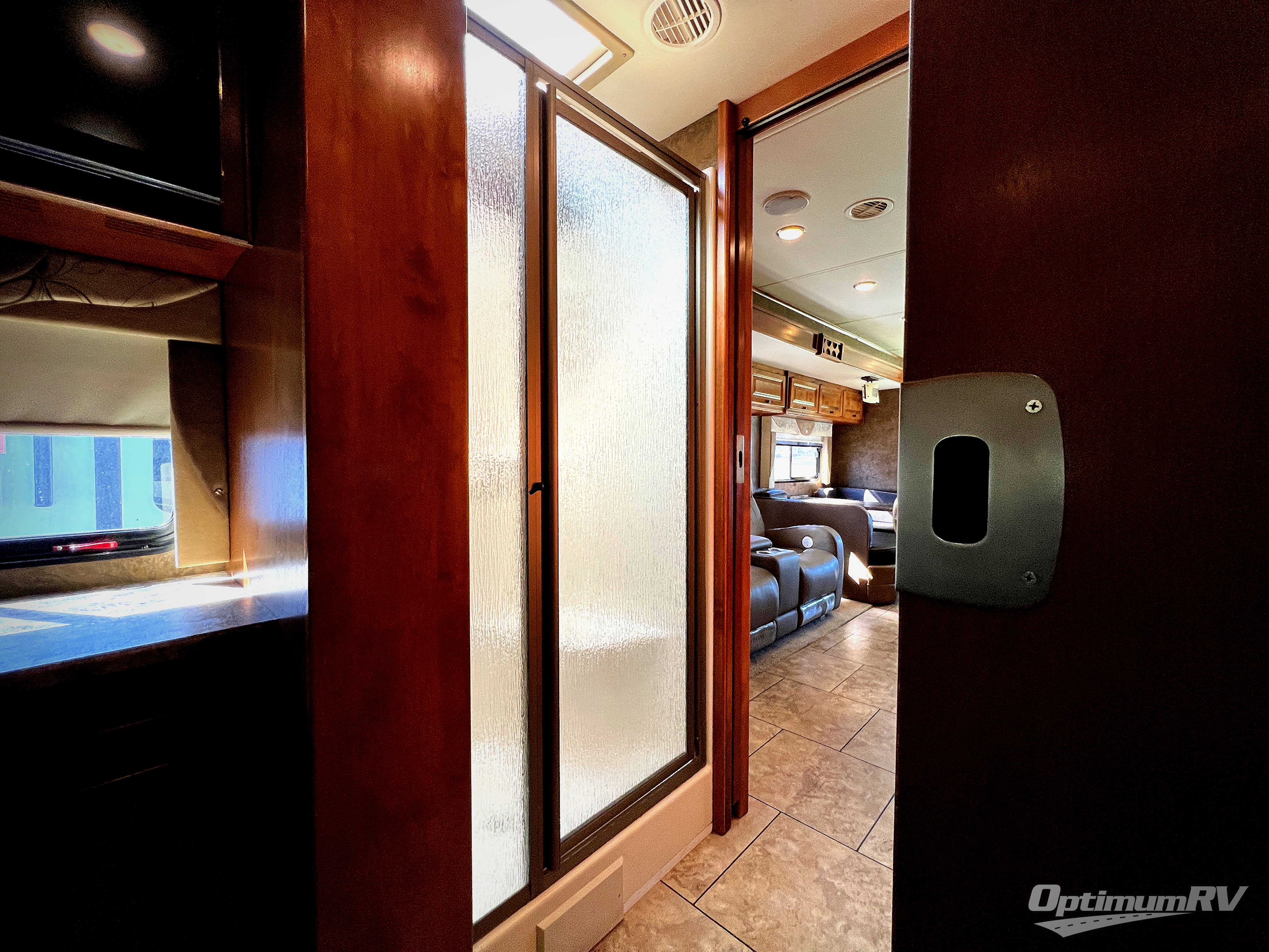As you enter the coach, the front includes two captain's chairs, overhead cabinets at each side, an optional TV at the center front and an optional driver side door.