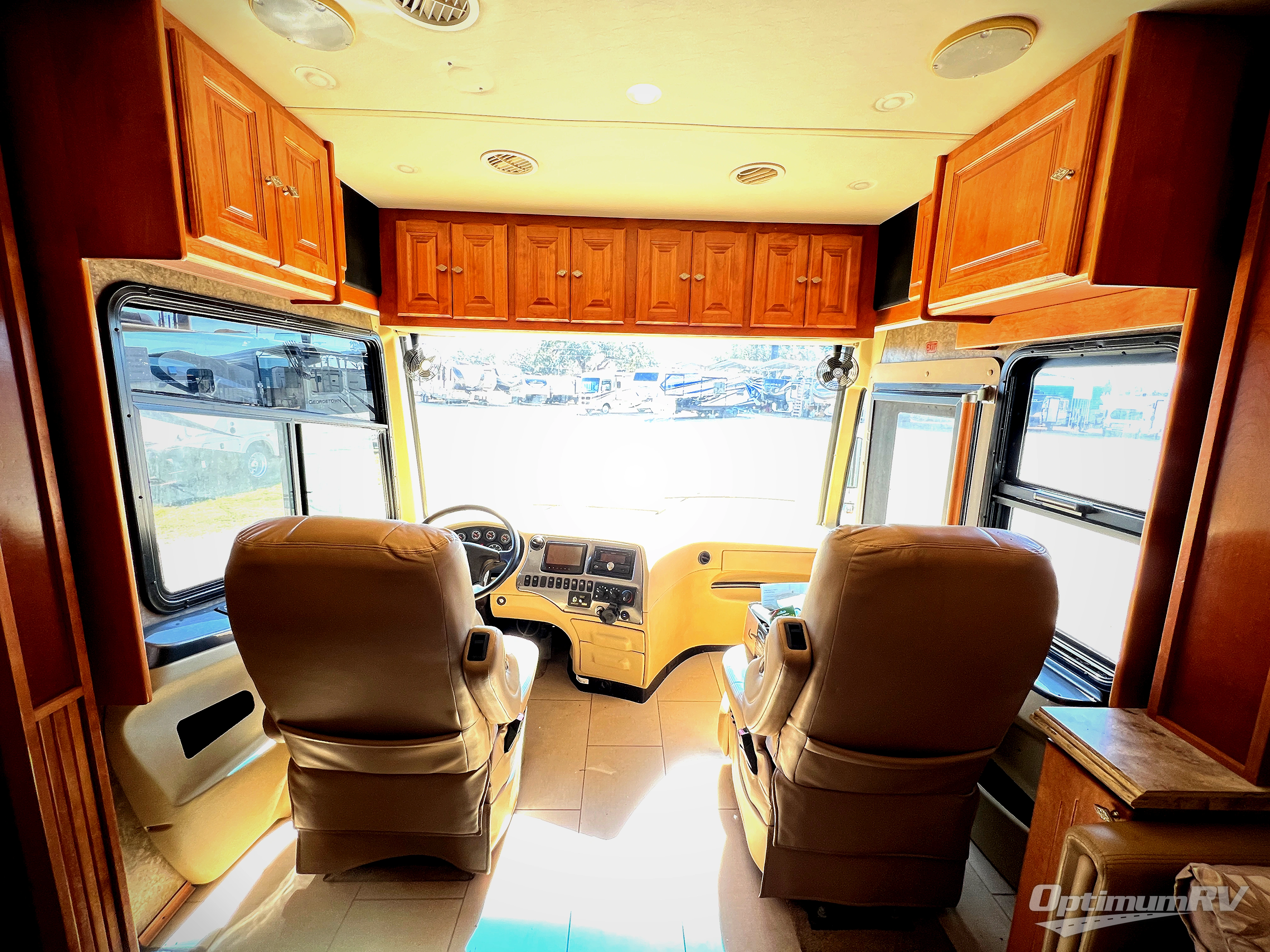 The front of the cab area includes lots of overhead storage as well as space for an optional overhead center mount TV.