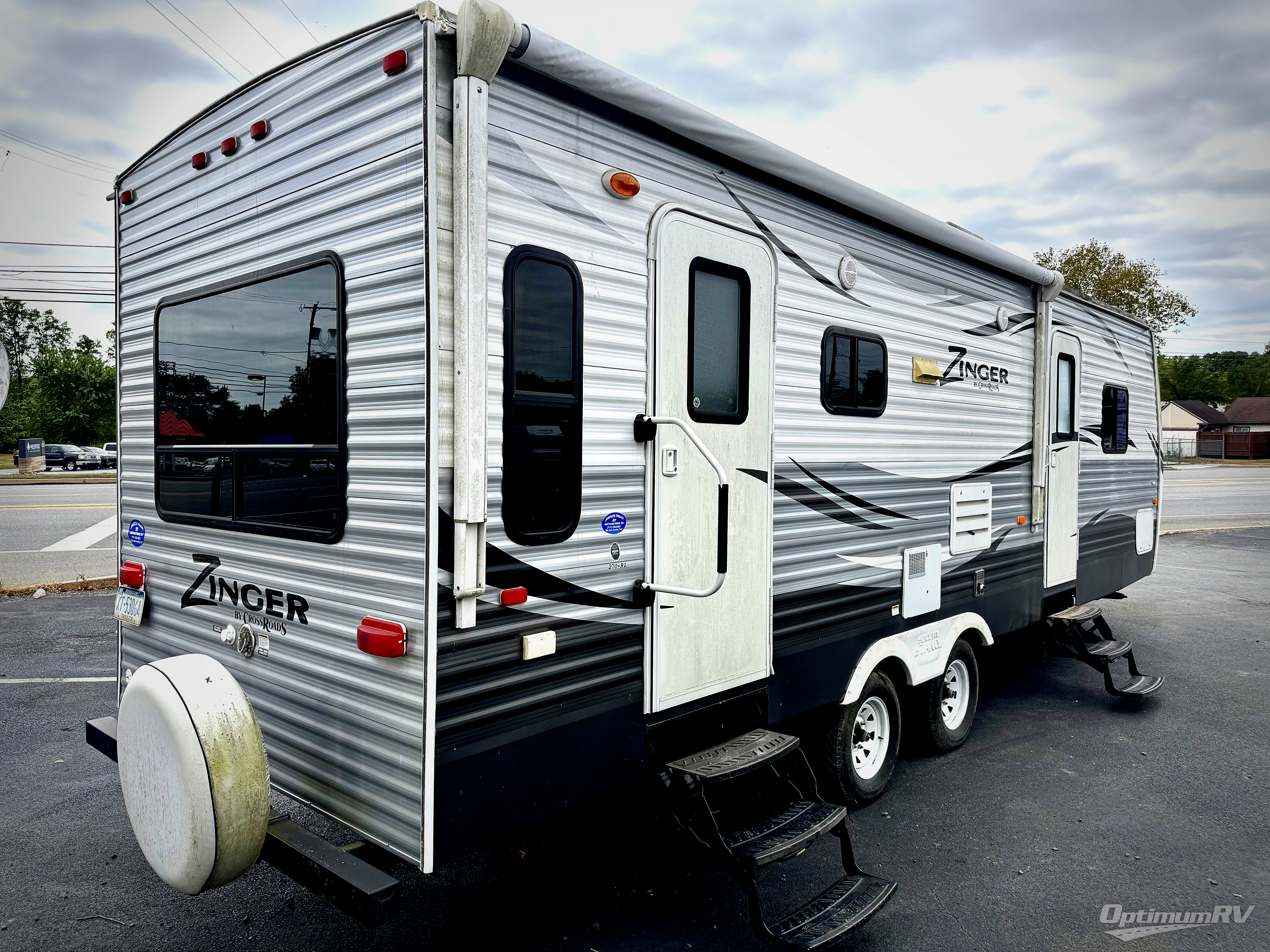 The Zinger ZT27RL travel trailer by CrossRoads RV has a single slide and a rear living area.