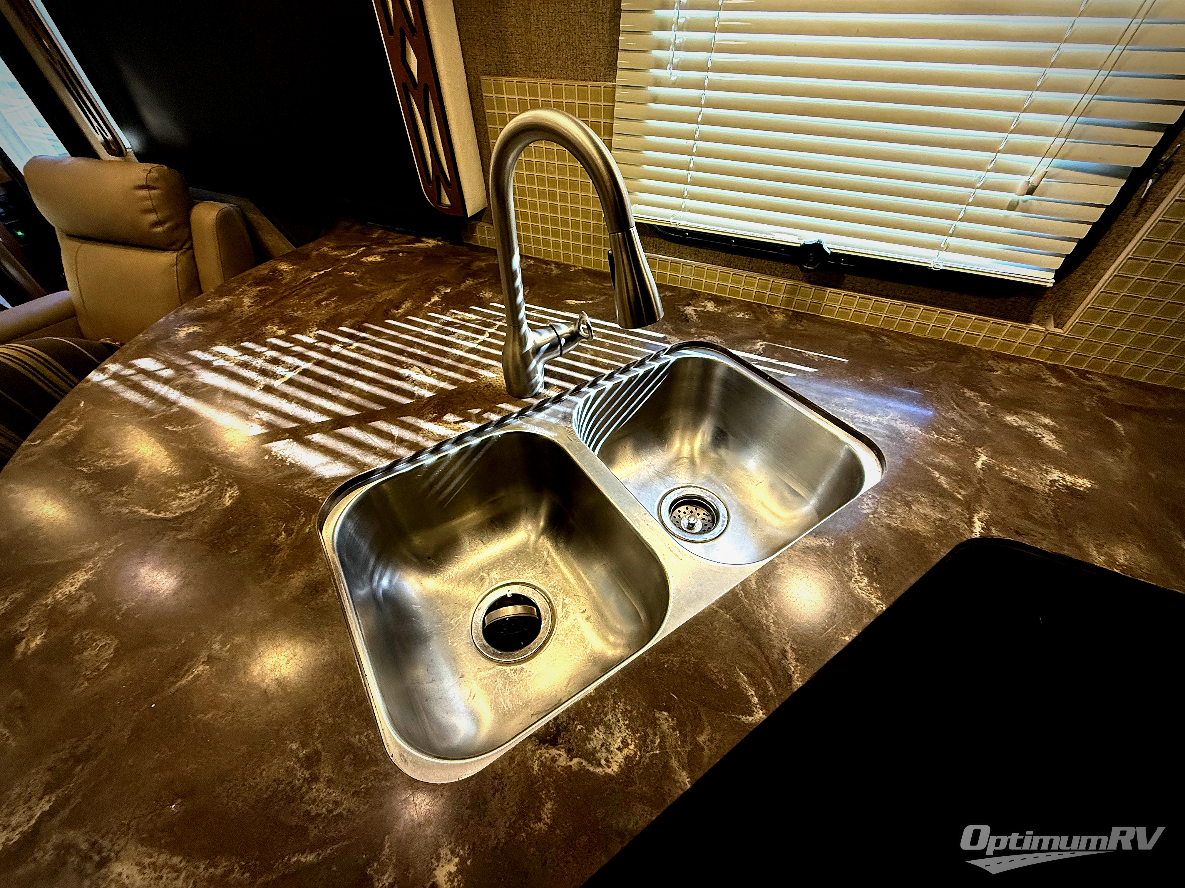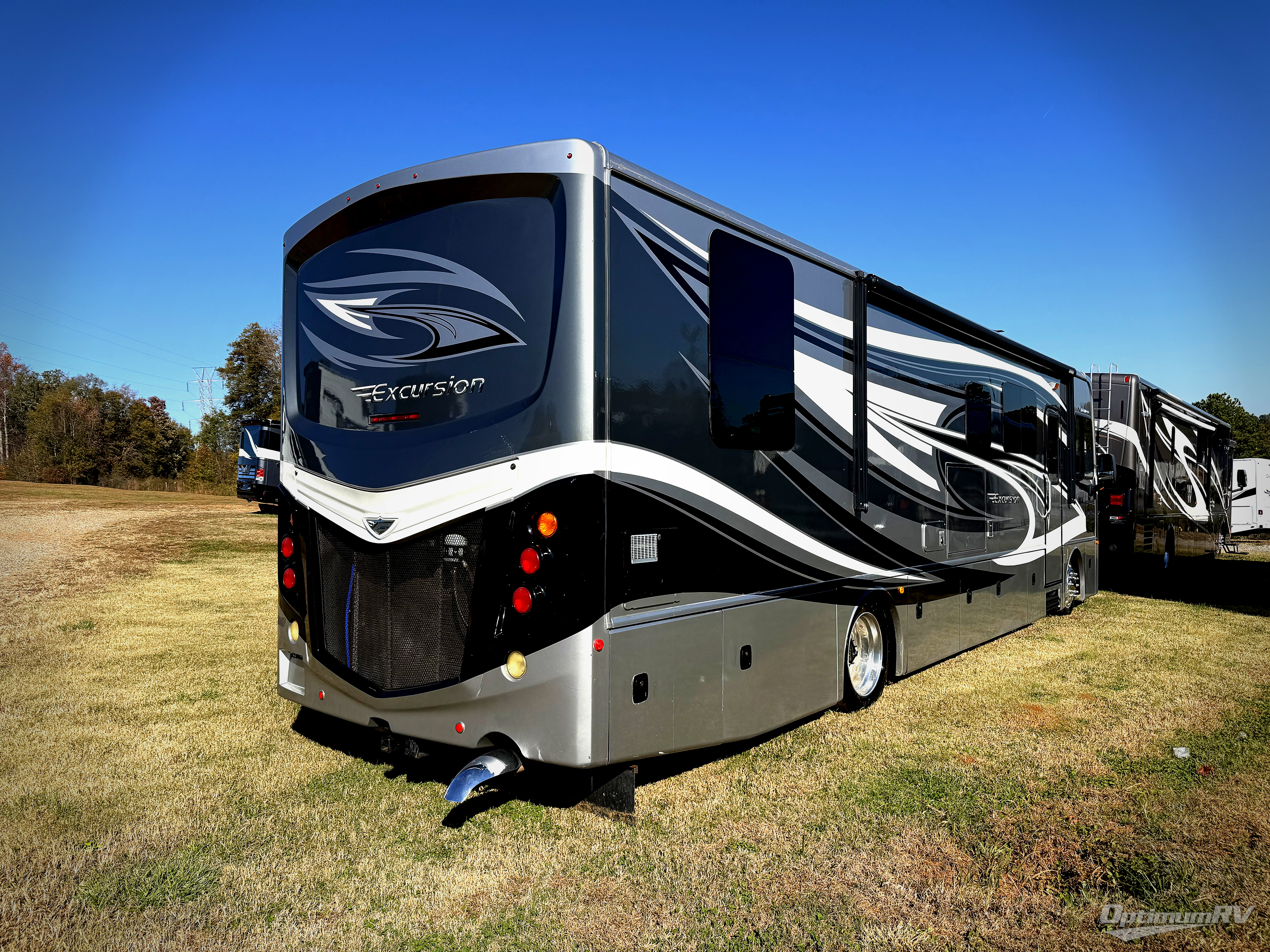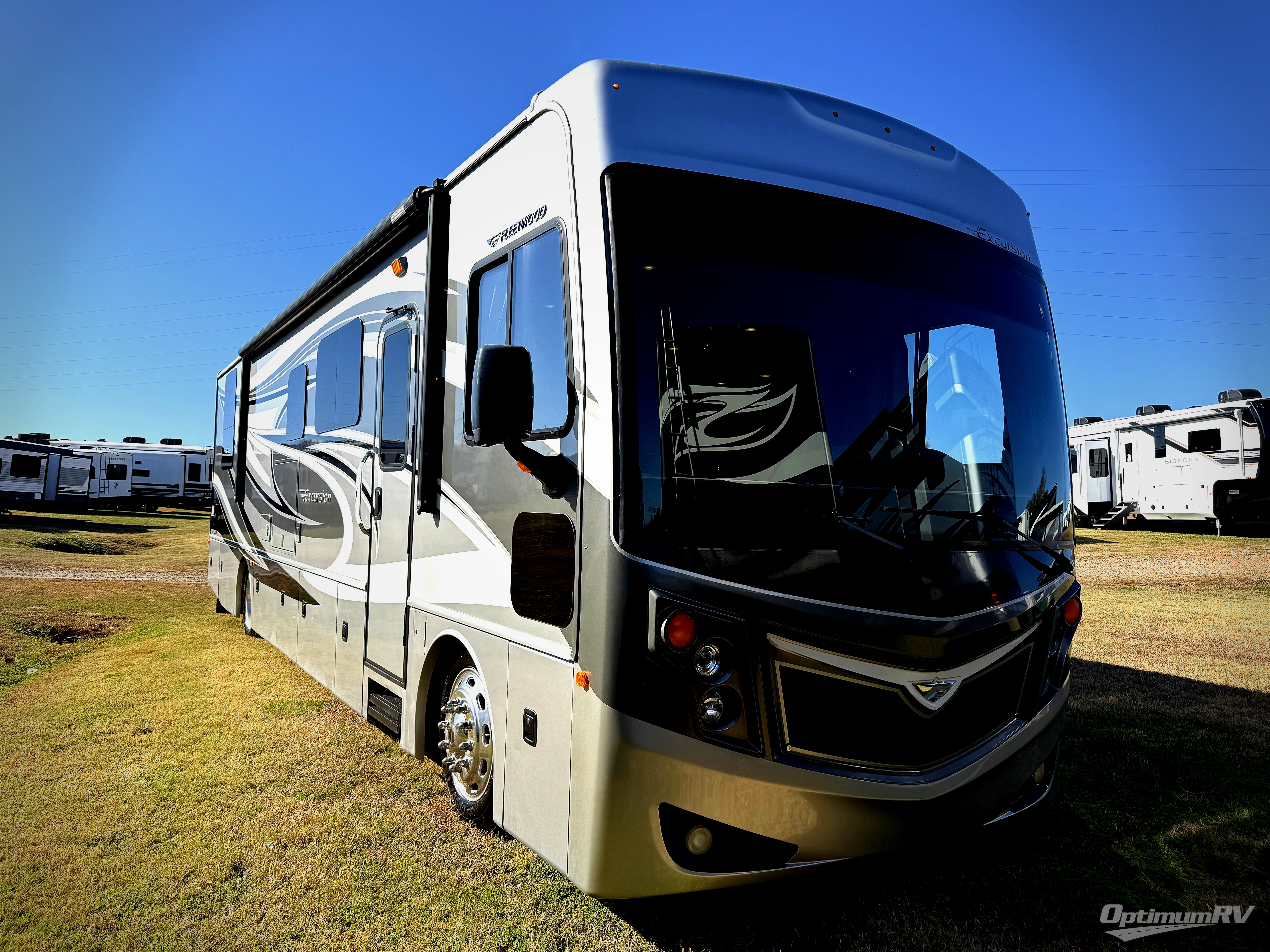 Stepping inside the 35B Excursion motor home by Fleetwood, you will see that they have used every bit of space to make this model ideal for you. To the left of the entrance is an Euro recliner, a curved counter with bar stools, a double kitchen sink, three burner range, microwave, and refrigerator. Behind the drivers seat is a l-sofa, pull out table and chairs, 40" LED TV, and pantry slide.