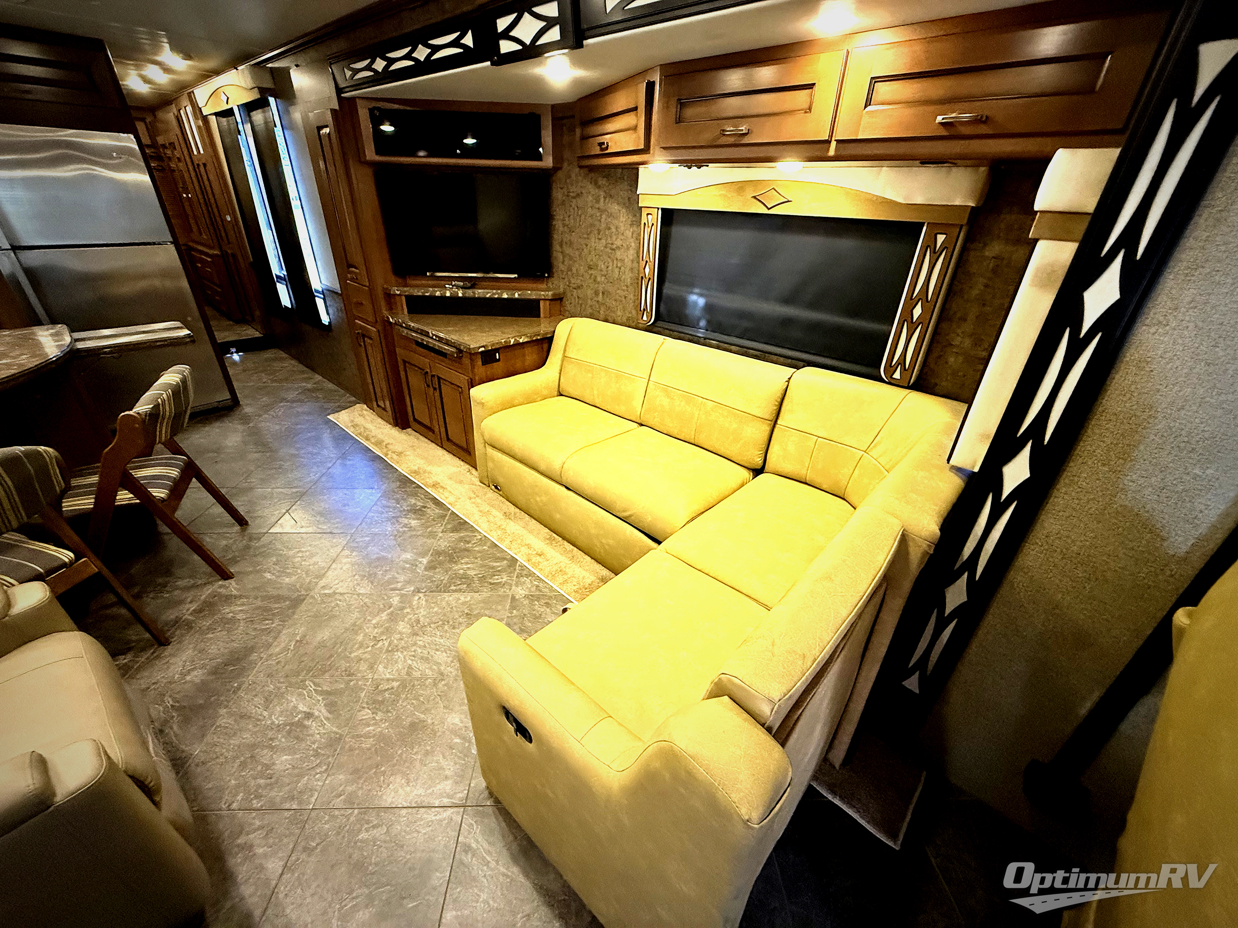 There is much storage space with the overhead cabinets. You can even choose many options such as, a bedroom 32" LCD TV, washer and dryer, driver/passenger pedestal table, hide-a-loft drop down queen bed, and a queen bed with memory foam.
