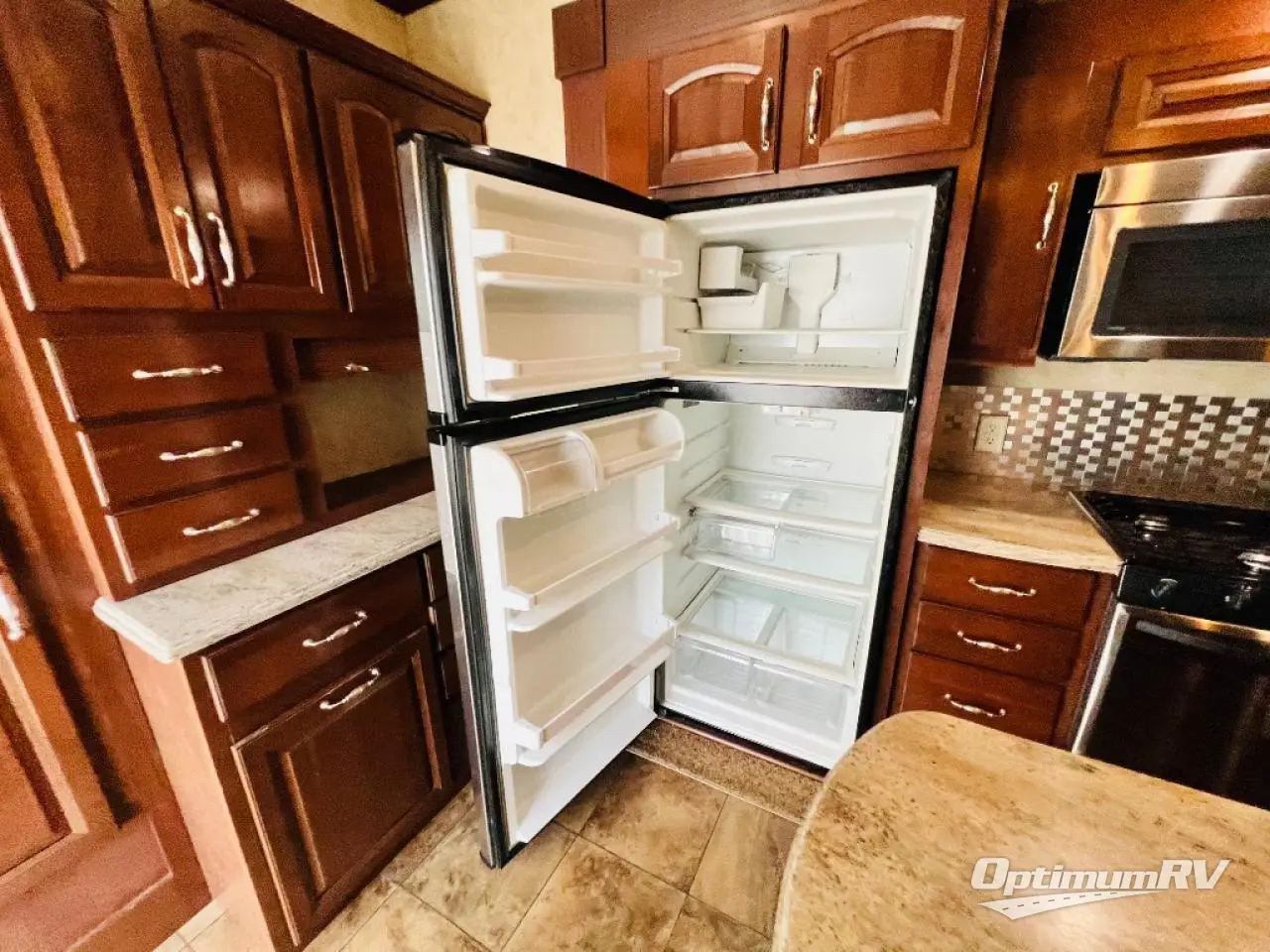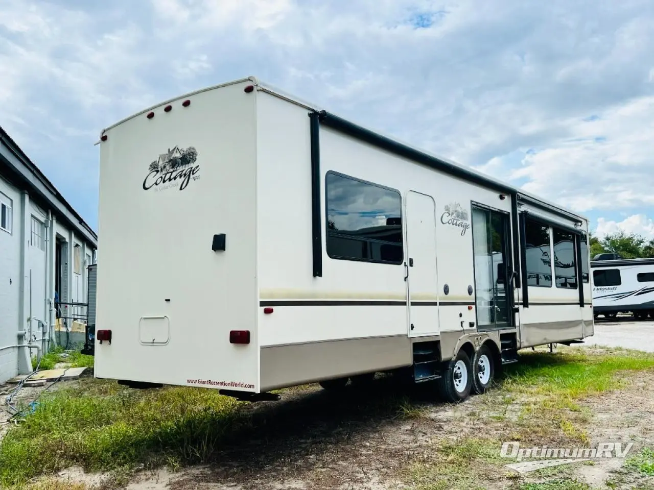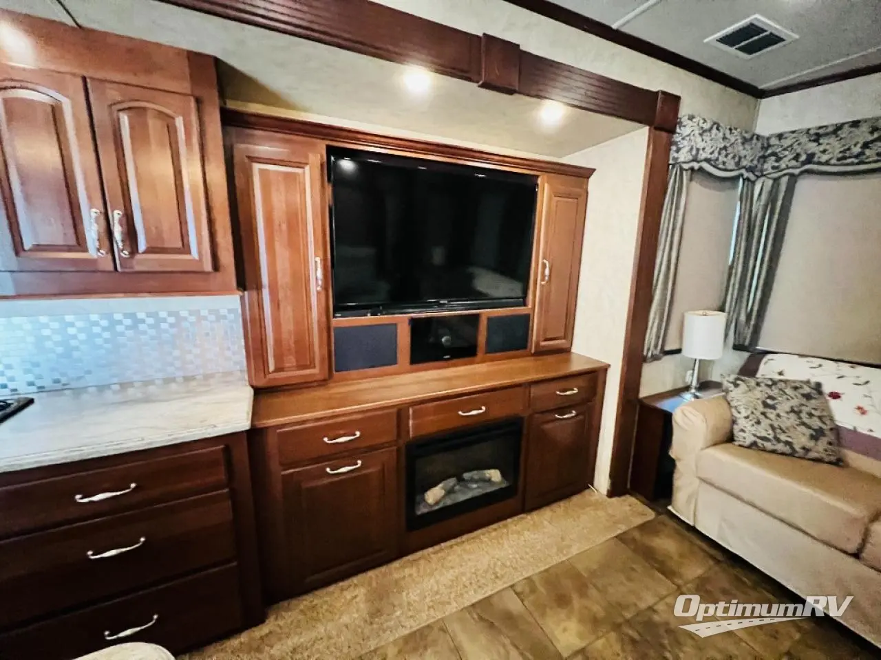As you enter the 40CCK Cedar Creek Cottage destination trailer by Forest River you will be wowed by the space that the triple slide outs provide this destination trailer.