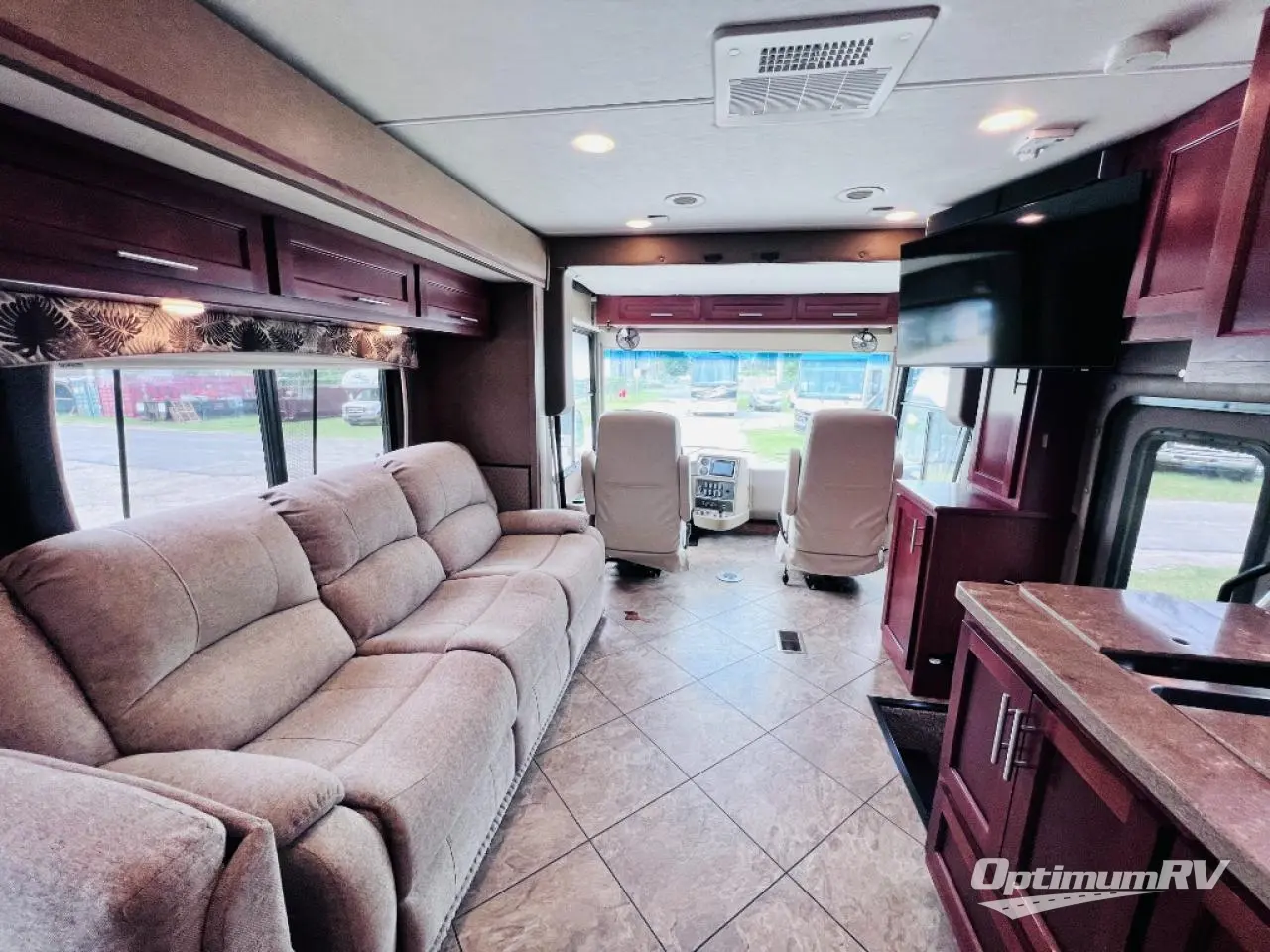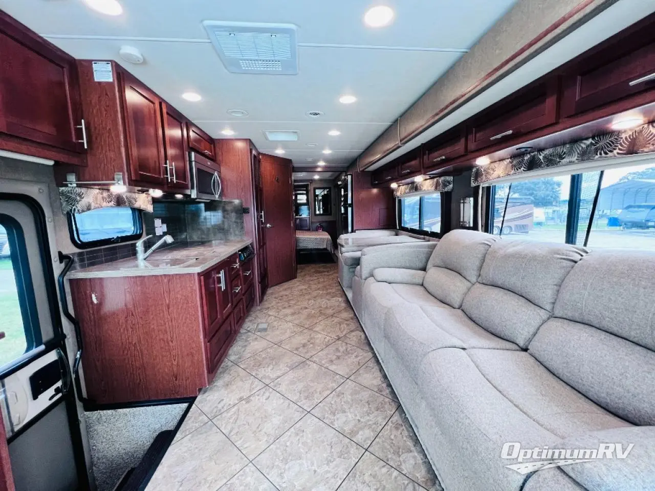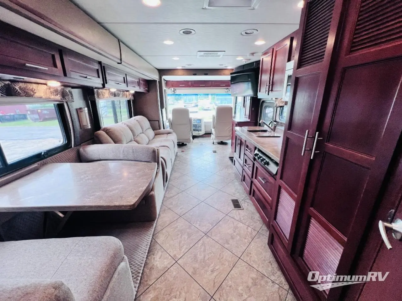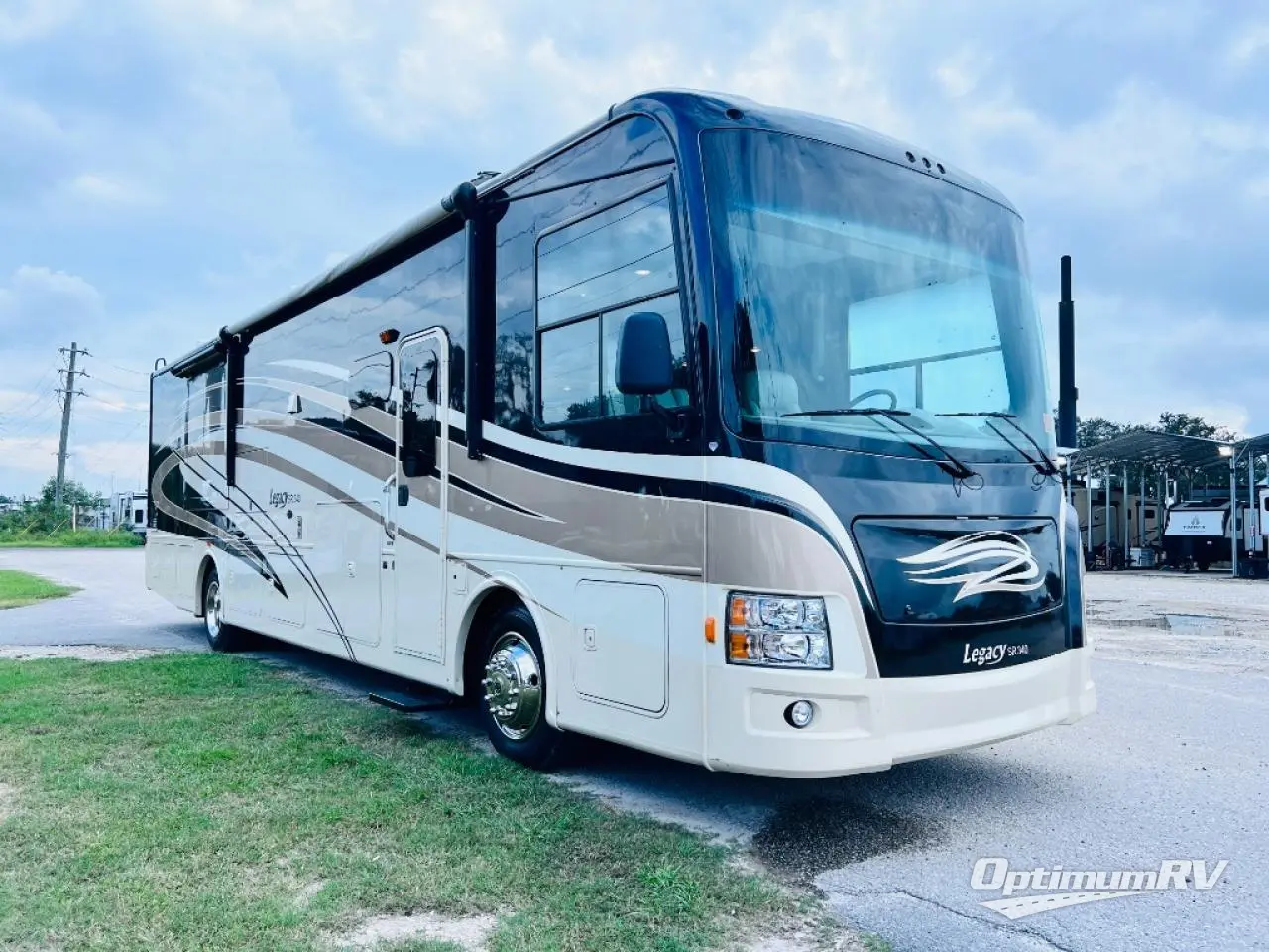 The Legacy 360RB motor home by Forest River offers a rear bath and a full wall slide.