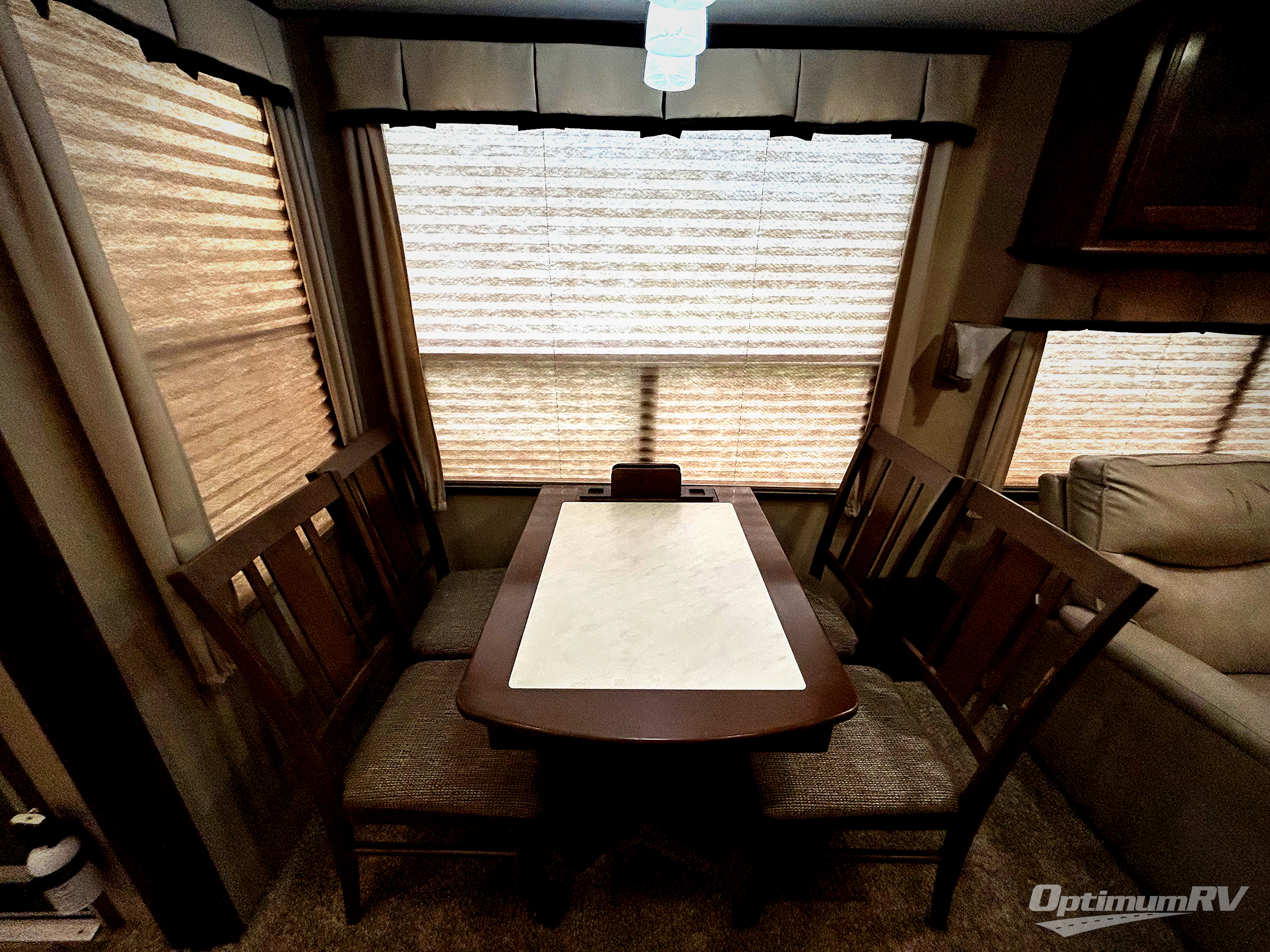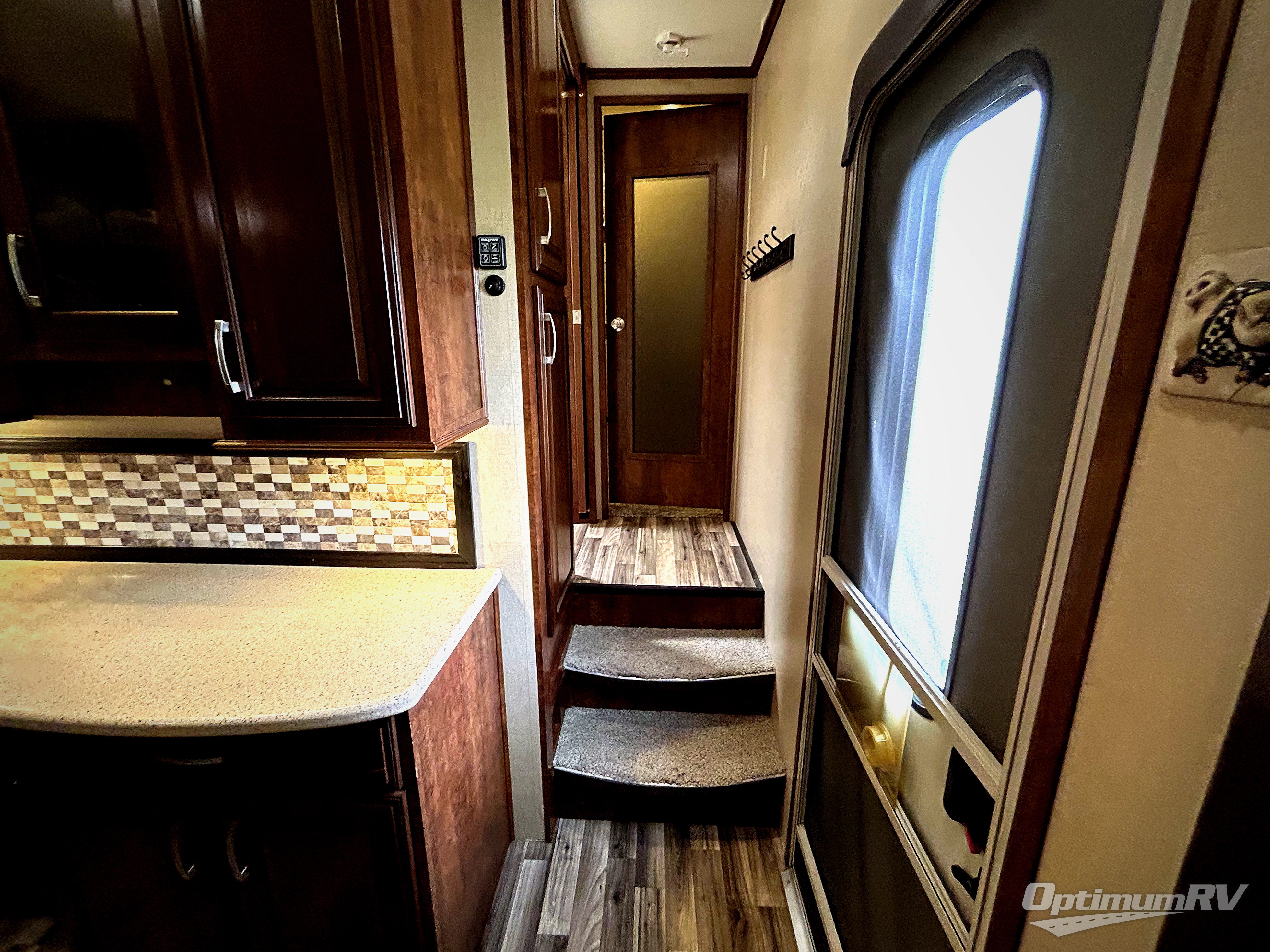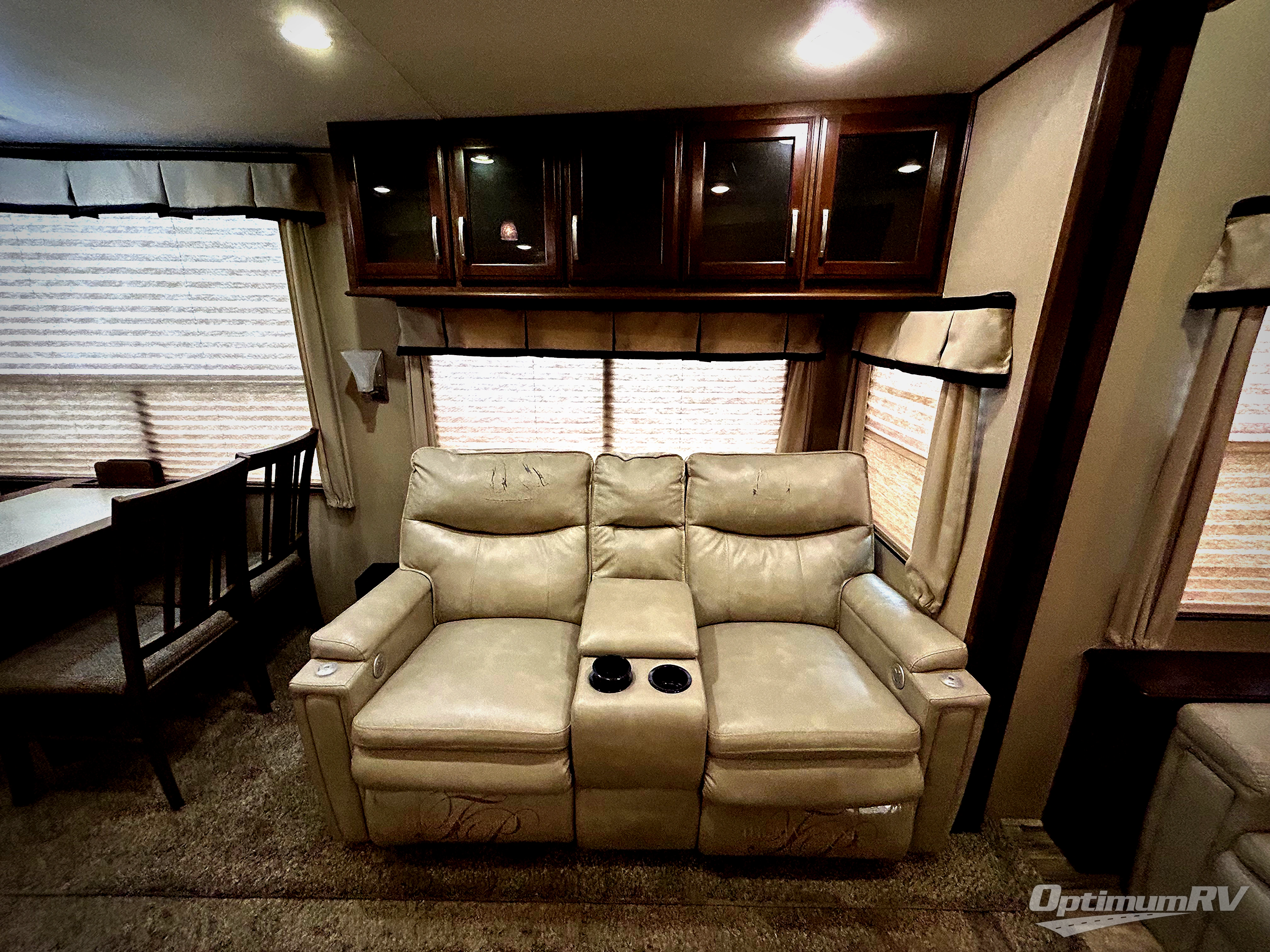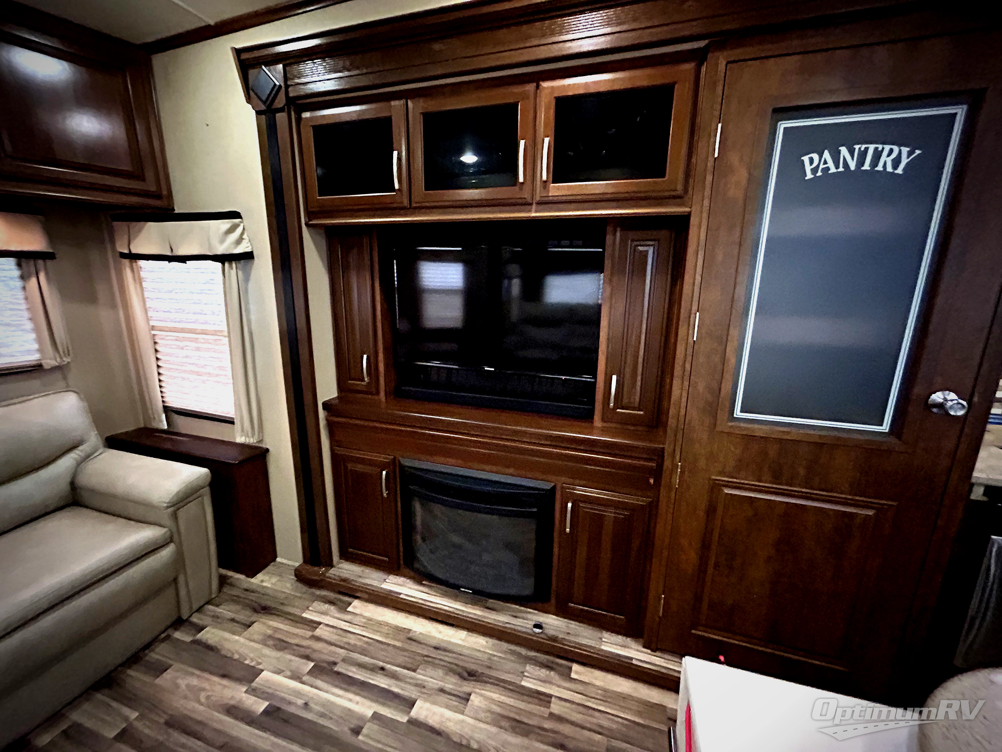Enter this Solitude fifth wheel 369RL by Grand Design and be amazed at the wide open space you see with dual opposing slides in the combined kitchen and living area.