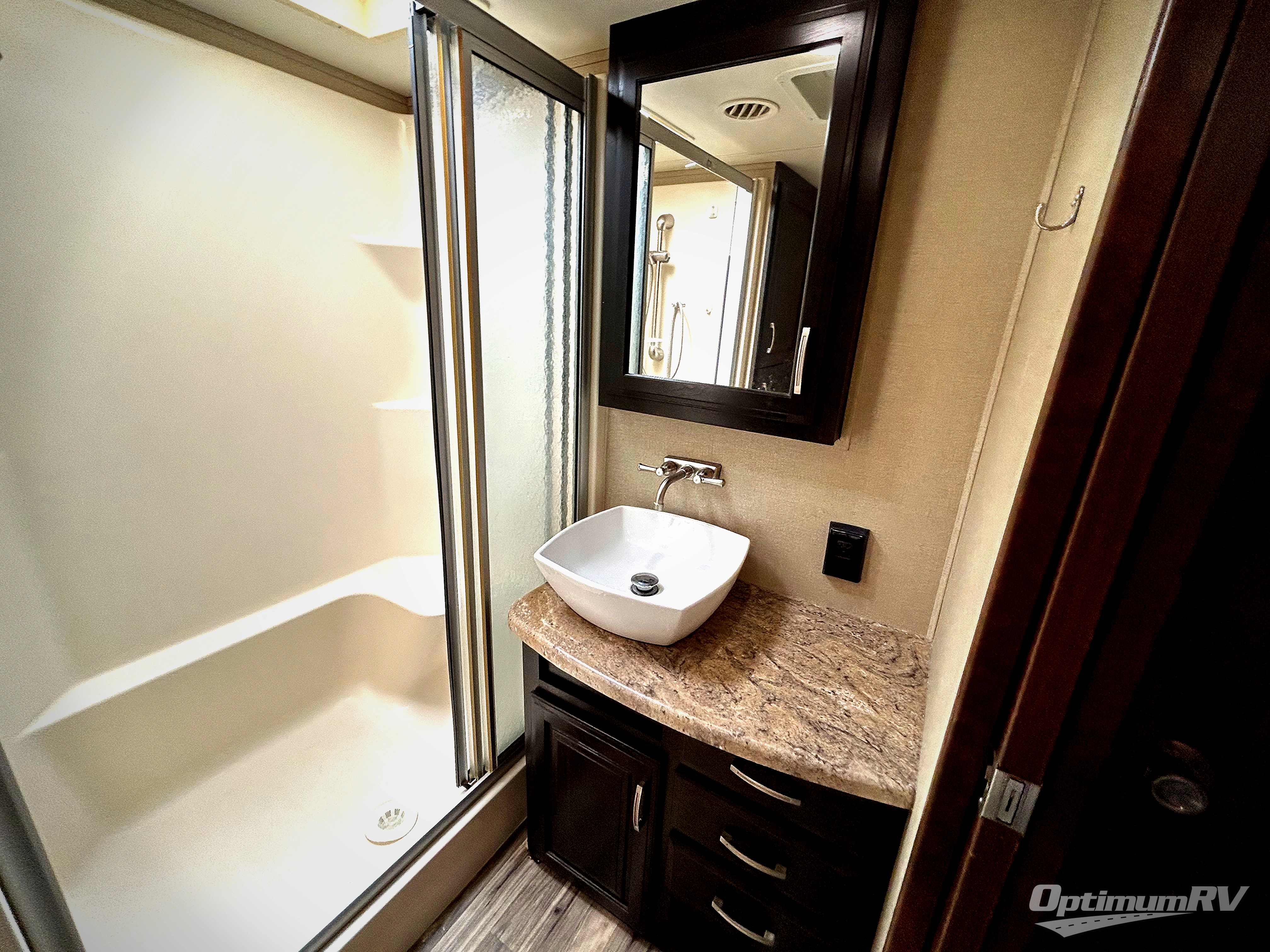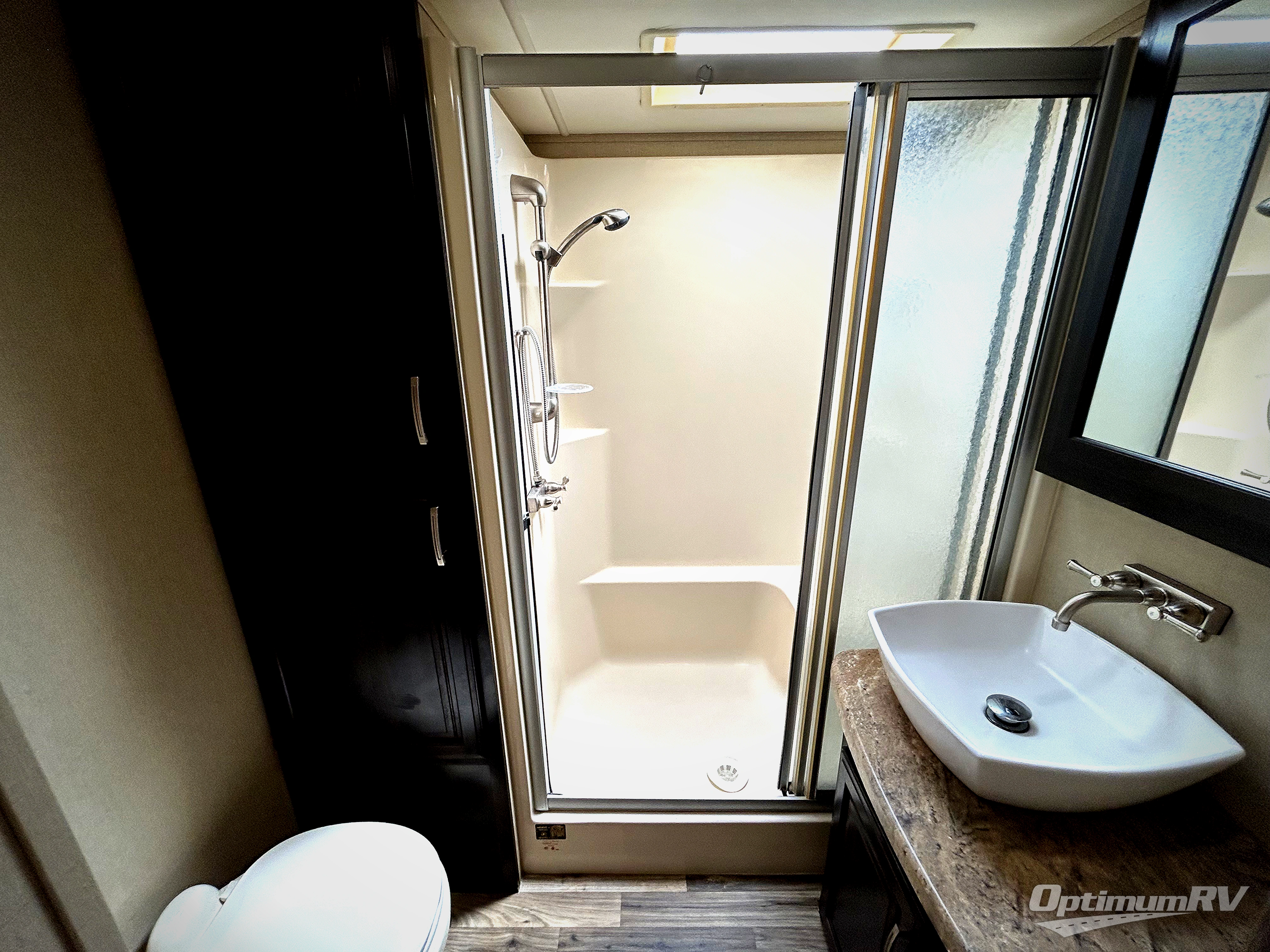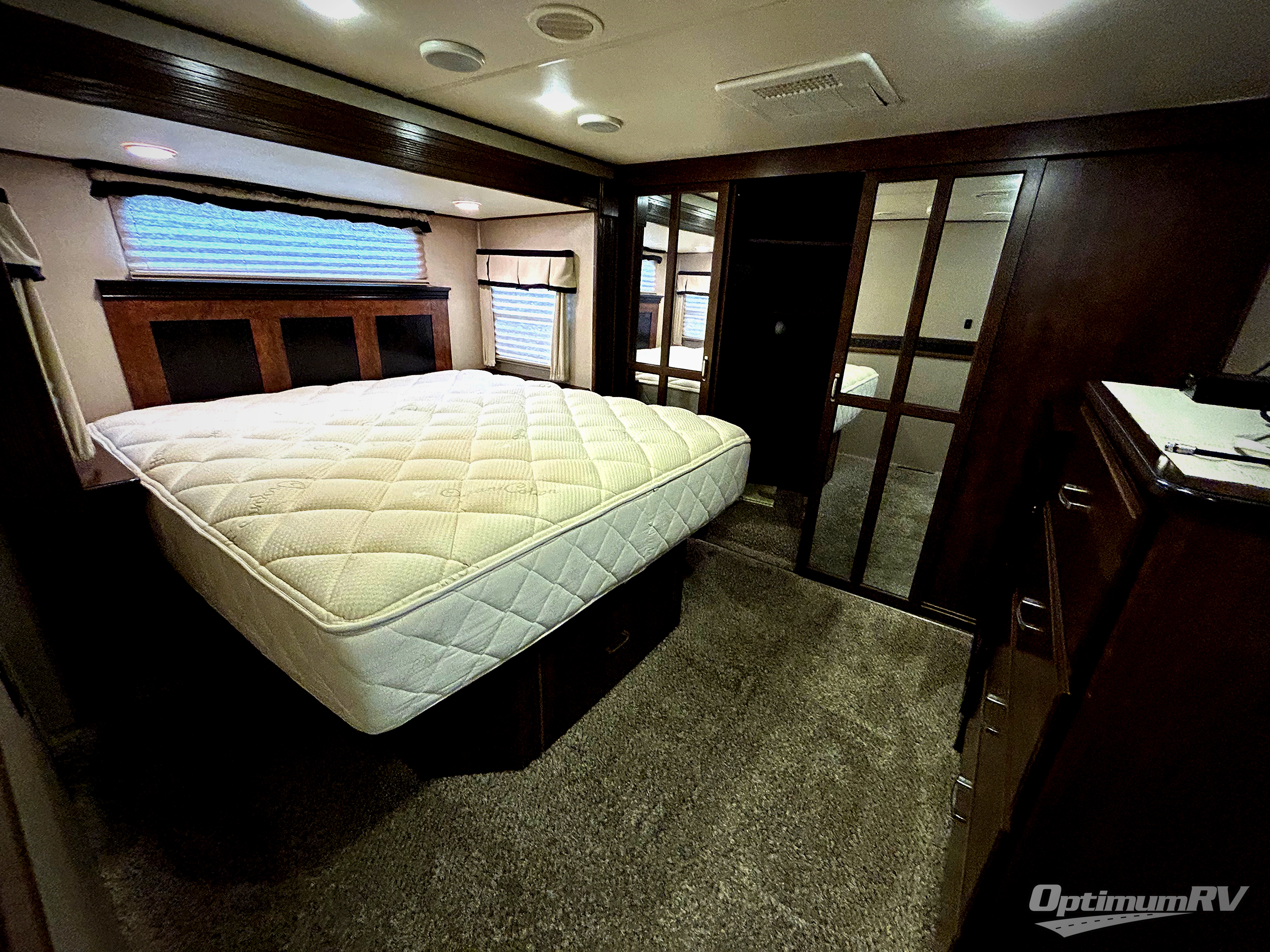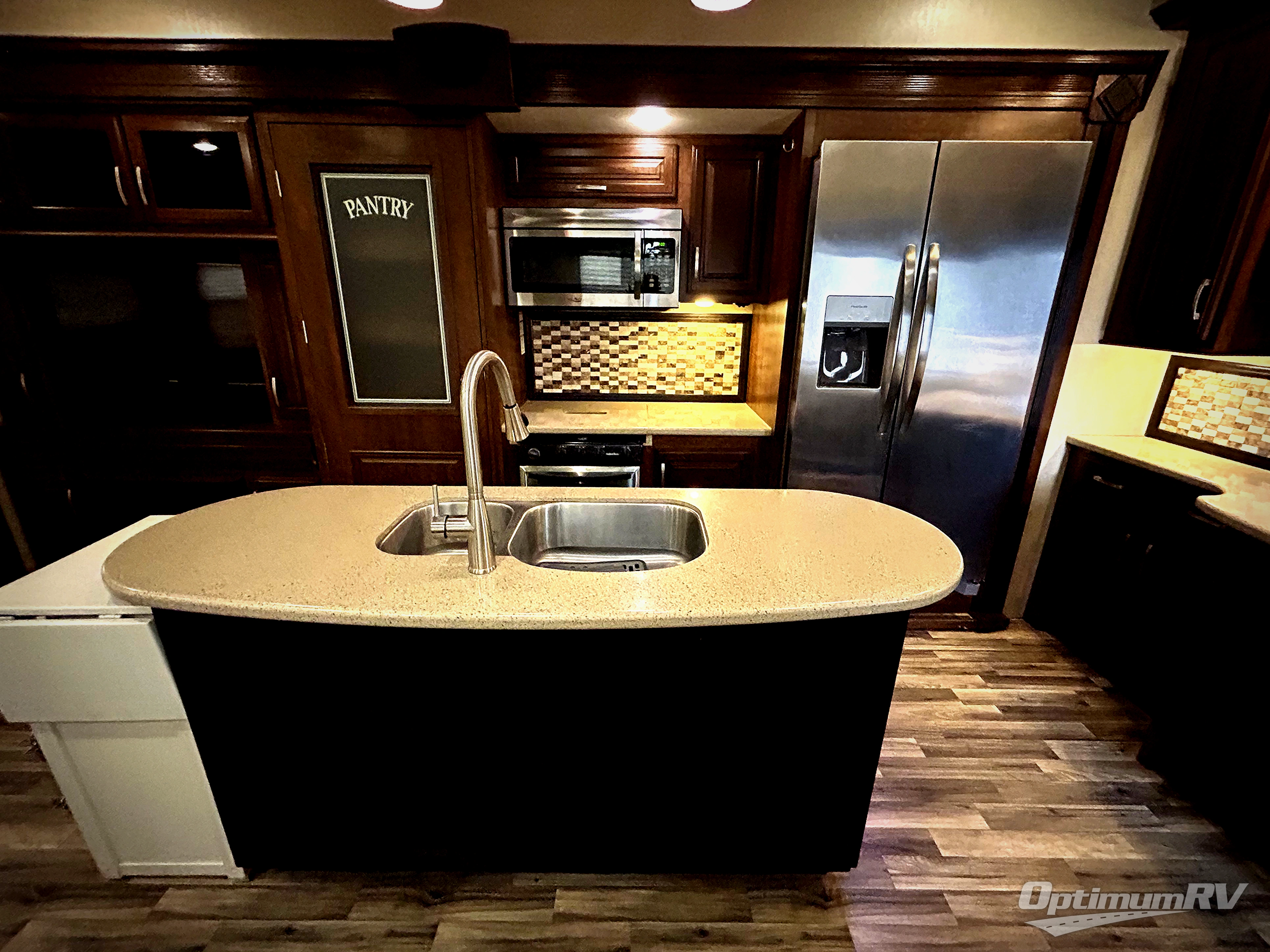 Enter this Solitude fifth wheel 369RL by Grand Design and be amazed at the wide open space you see with dual opposing slides in the combined kitchen and living area.