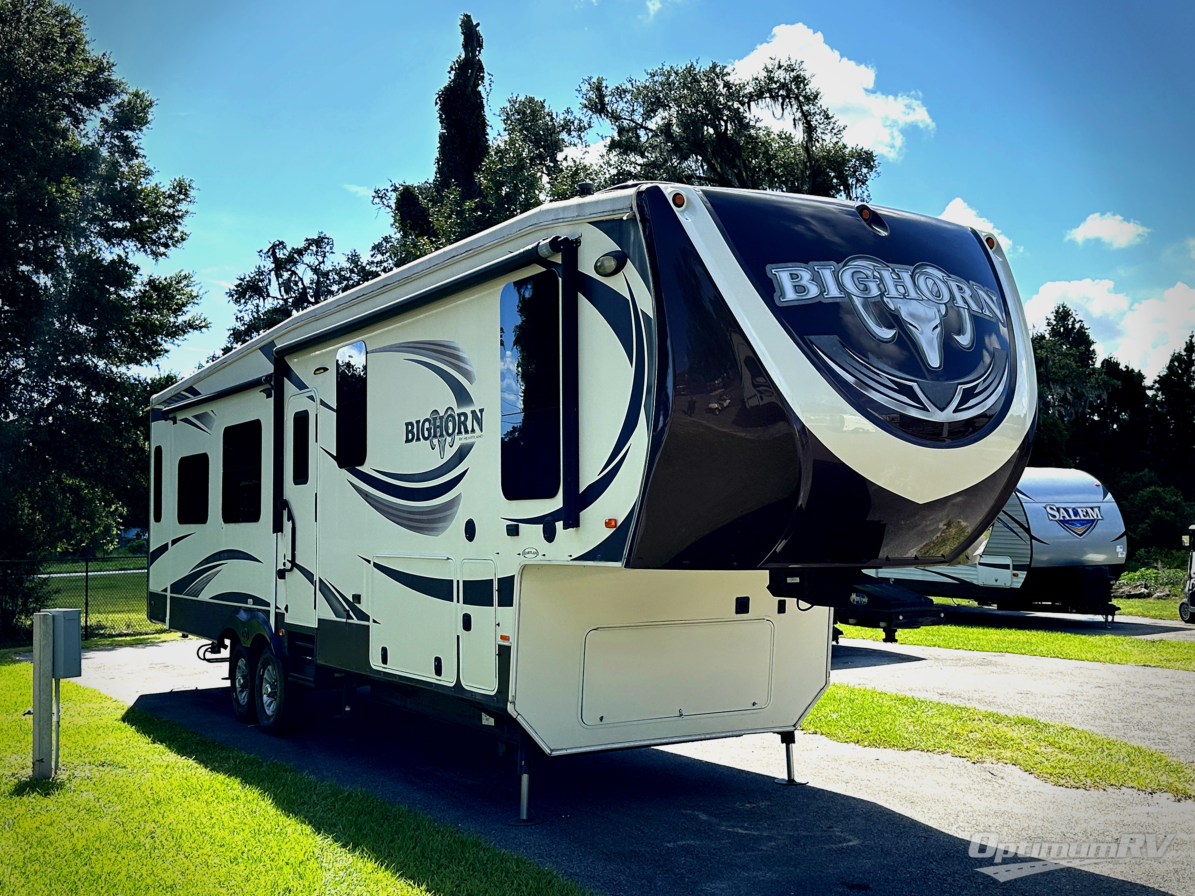 With triple slides and a rear living layout you will find camping simply awesome in this Heartland Bighorn 3570RS fifth wheel. This unit also features a convenient kitchen island, and king size bed!