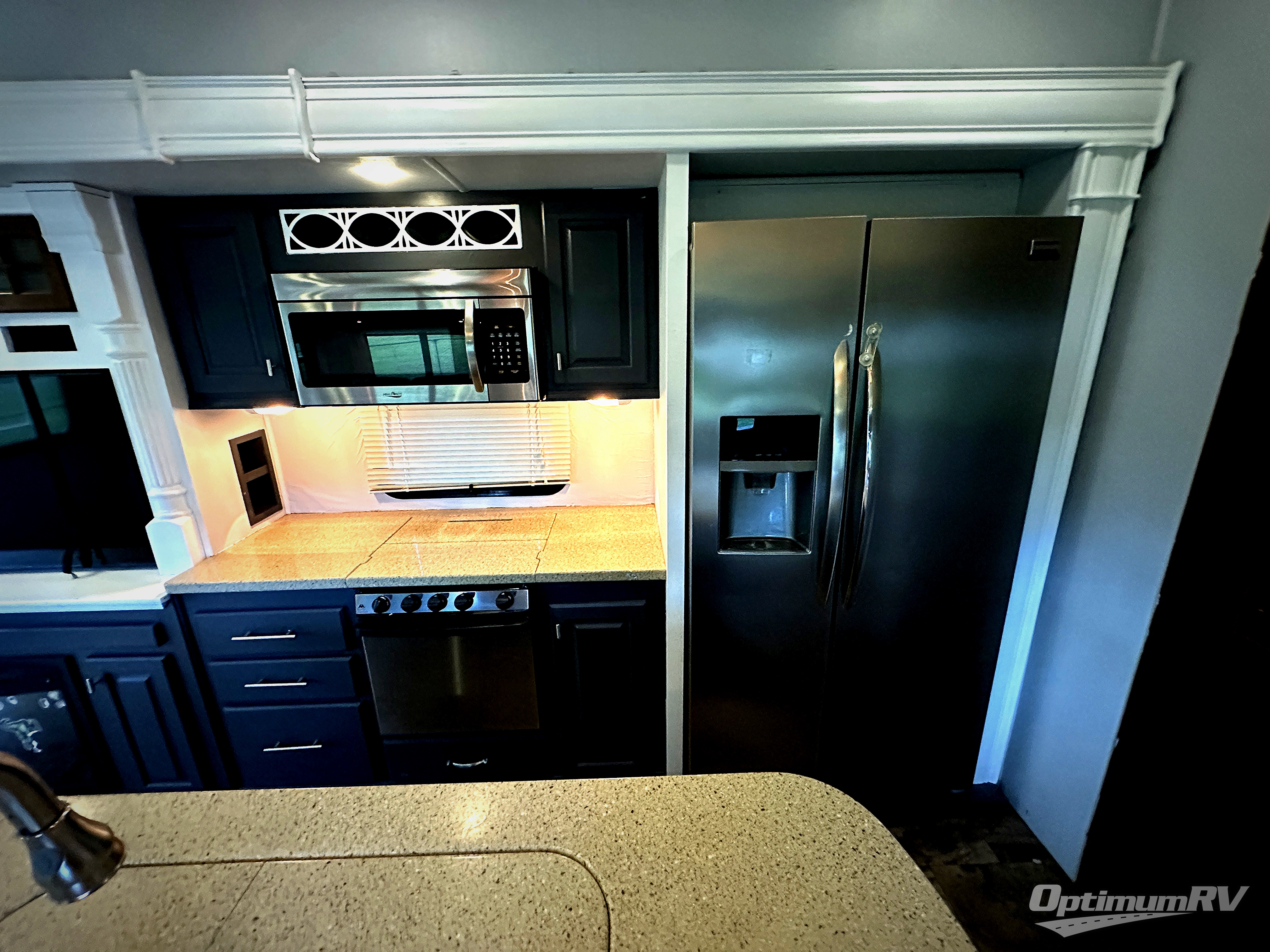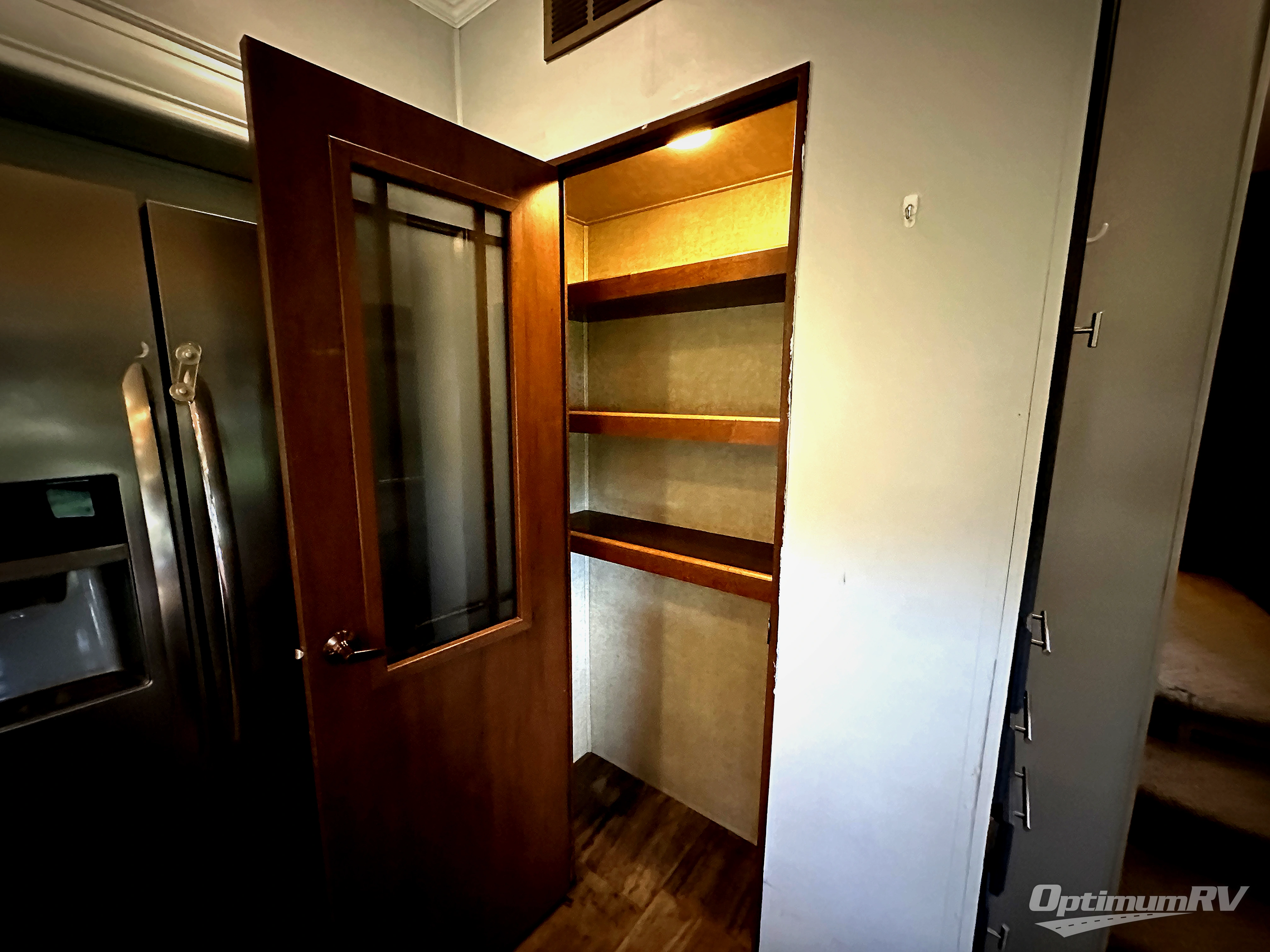 The master suite provides a relaxing retreat with a king size slide out featuring a massive storage space beneath. Enjoy a dresser and storage cabinet opposite the bed, plus a front wardrobe with sliding doors, including drawer space inside as well. There is also a corner closet that has been prepped for a washer and dryer, plus so much more!