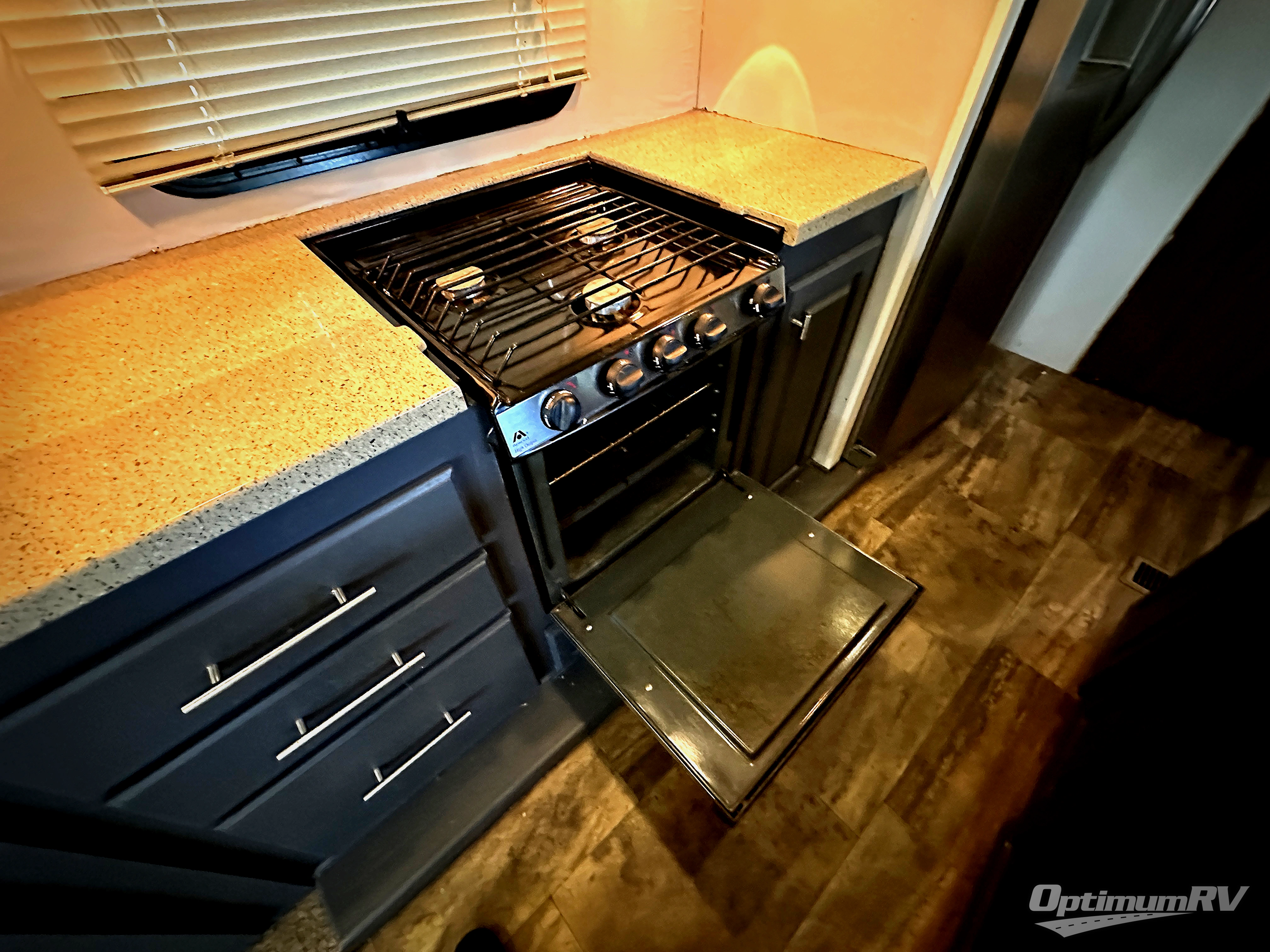 Enter the spacious kitchen and living area to find a slide out dinette for two, and two swivel glider recliners both with overhead storage. Along the rear wall there is a flip and fold sofa with end tables and overhead cabinets the entire width of the unit which can also be made into more sleeping space when needed at night.