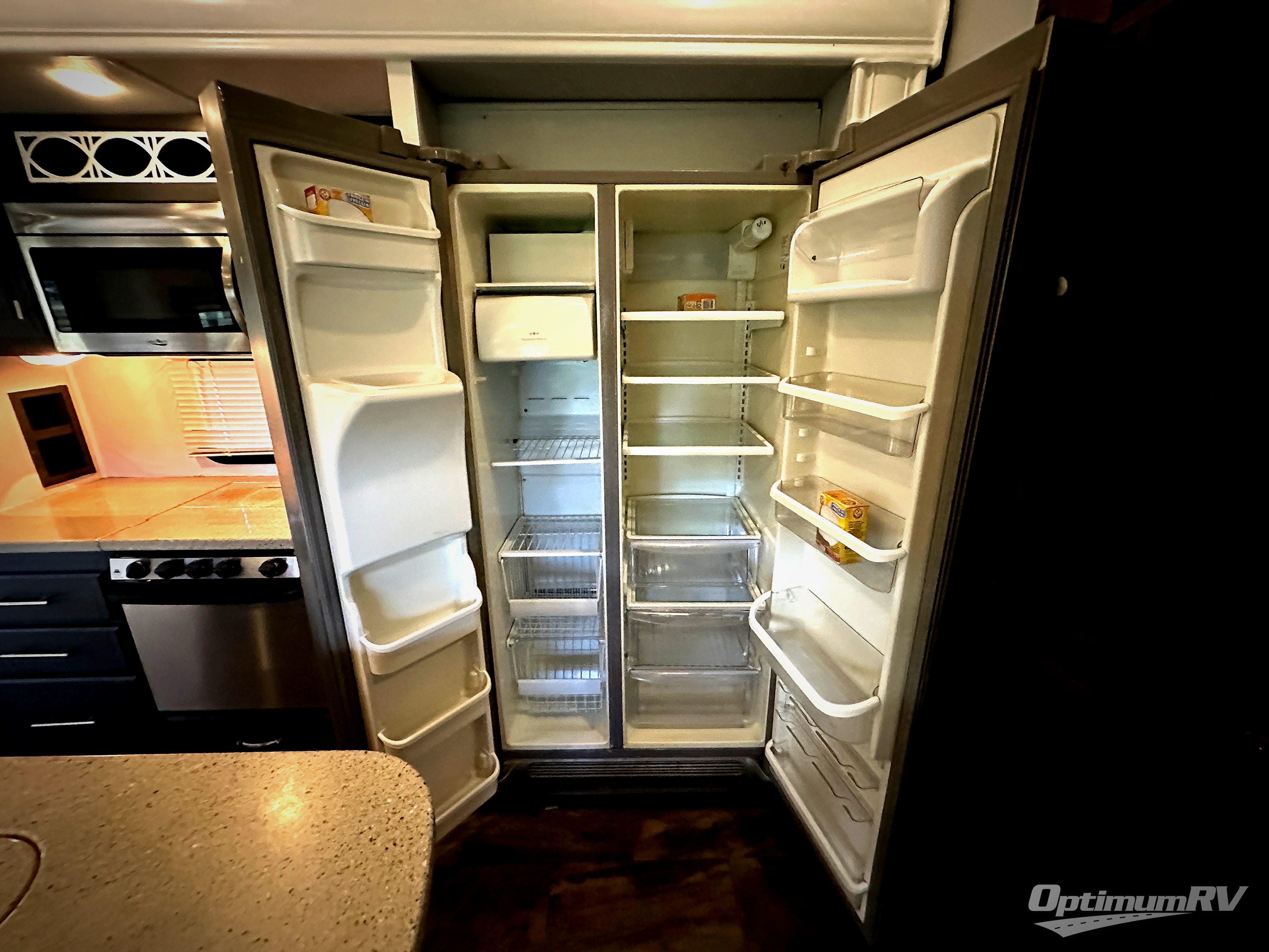 The slide opposite the door side rounds out the living area with an entertainment center including an LCD TV on an adjustable wall bracket for viewing at different angles, plus a pull-out desk area. The slide also features the kitchen appliances which includes counter space, a three burner range, pantry and refrigerator. Besides the appliances this kitchen also features plenty of storage both above and below with lower cupboards and drawer space too. A convenient island in the center offers added work space, plus a double kitchen sink.