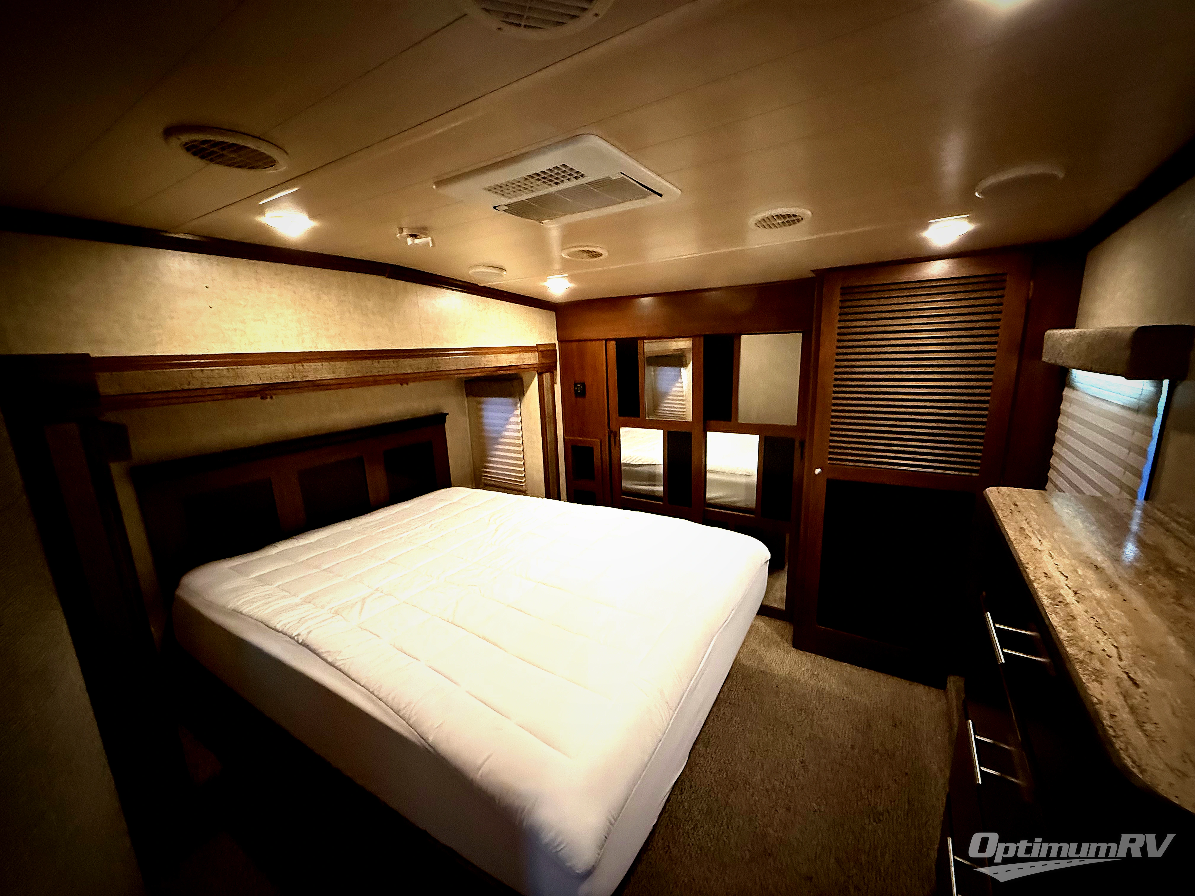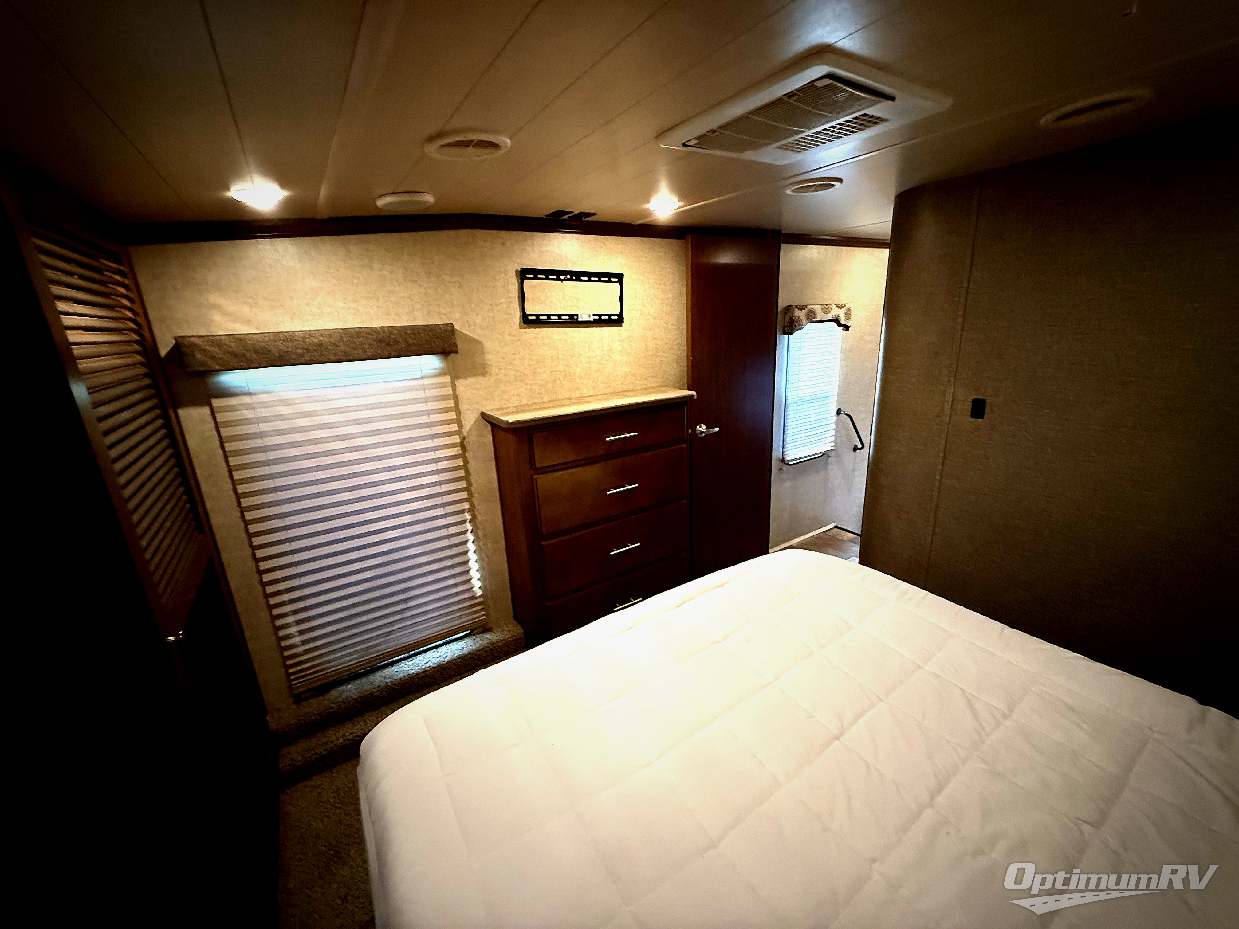 Continue to the last door in the hall straight ahead and enter the master bedroom which offers a relaxing space with slide out king size bed, dresser, full wall wardrobe with sliding doors, and a closet that has been prepped for a washer and dryer if you choose to add, plus so much more!