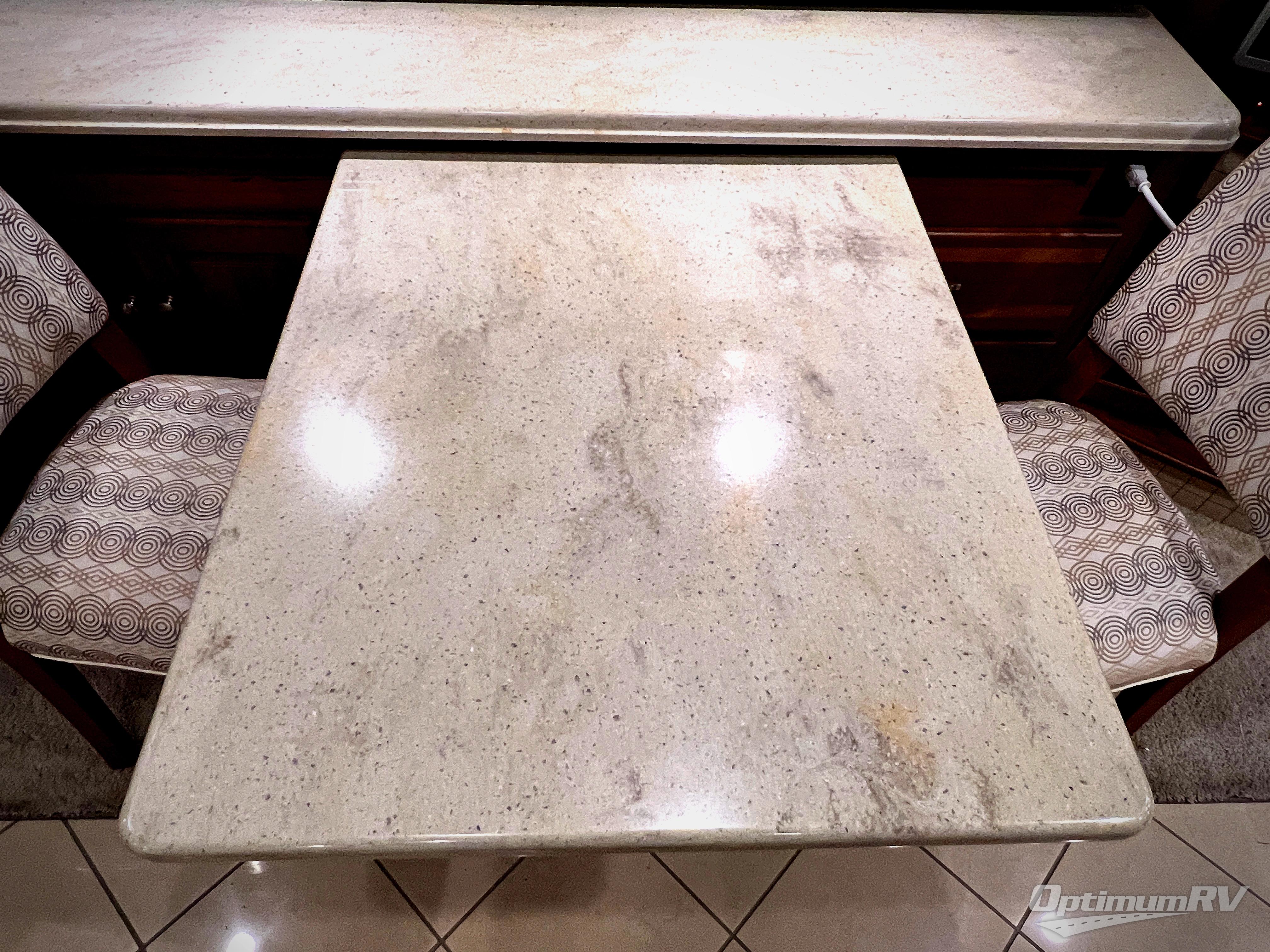As you enter notice the kitchen area up front. There is a slide out three burner range, microwave oven, and residential refrigerator, along with Glide and Dine table and chairs, and 55" HDTV with fireplace behind the passenger seat. On the opposite side find a large counter area with overhead storage and a double kitchen sink in the slide out behind the driver's seat along with a Rest Easy extendable sectional sofa.