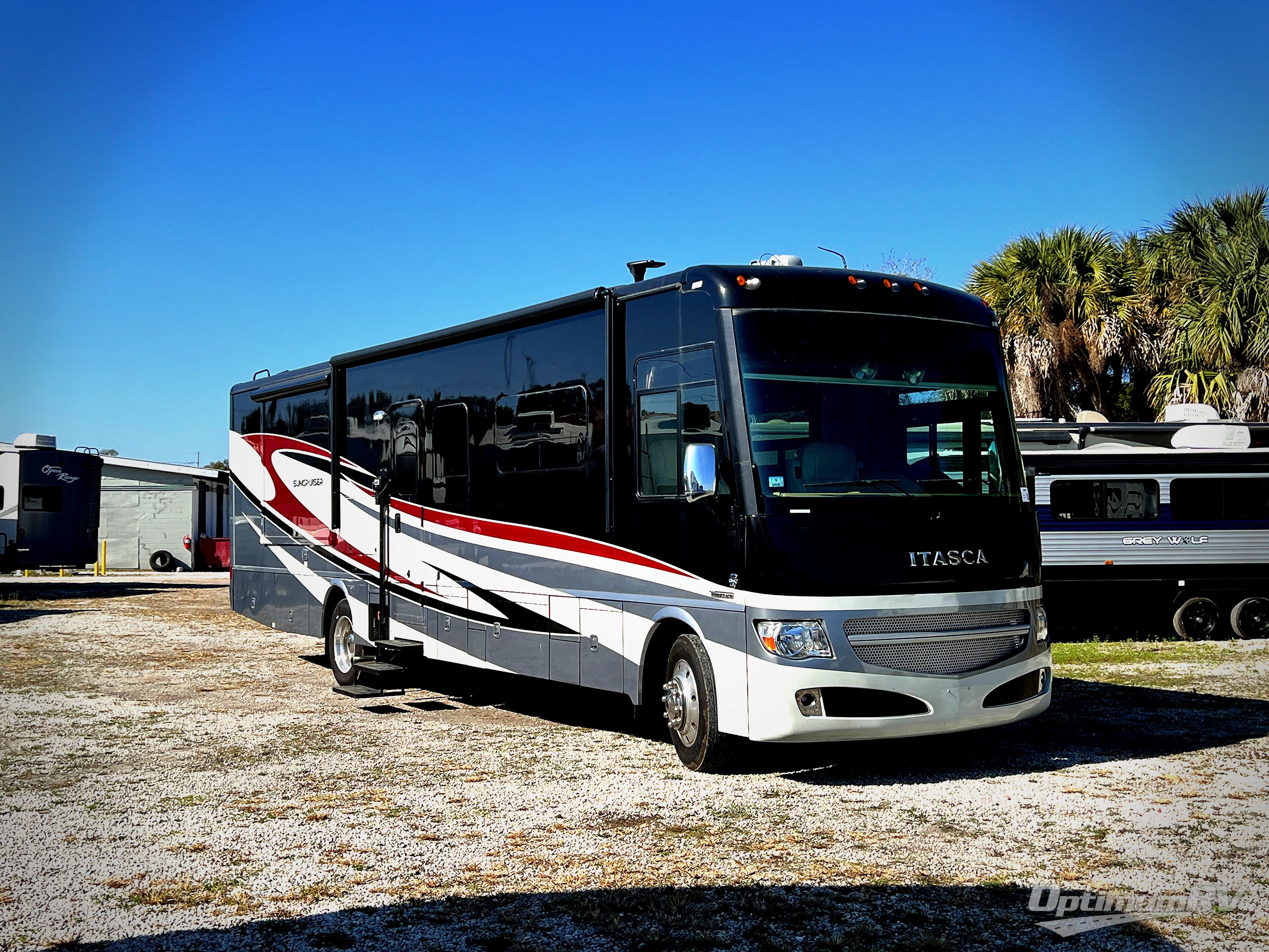 This Itasca Suncruiser 37F features triple slides with one full wall slide, a bath and a half, plus king bed, and so much more!