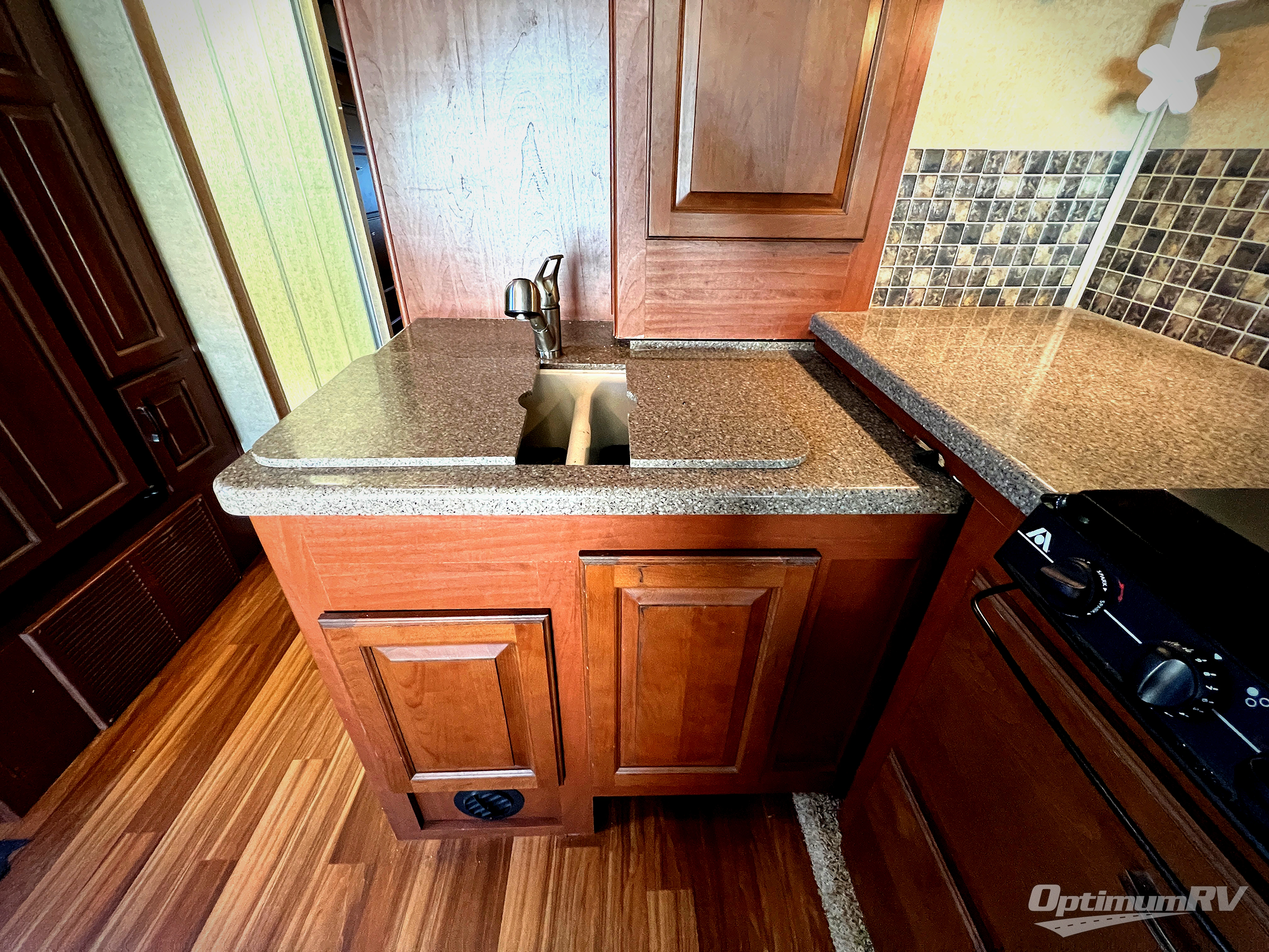 As you enter the 31UL, to the left is a refrigerator and pantry. On the right of the entrance is a dinette slide. On the opposite side you will find a slide with a hide-a-bed, three burner range, lots of counter space and a double kitchen sink.