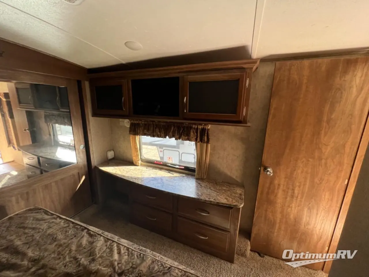 In the front bedroom you will find a queen bed slide or optional king, dresser and HDTV opposite the bed, along with seating, and a front master closet with sliding doors including washer dryer prep, plus so much more!