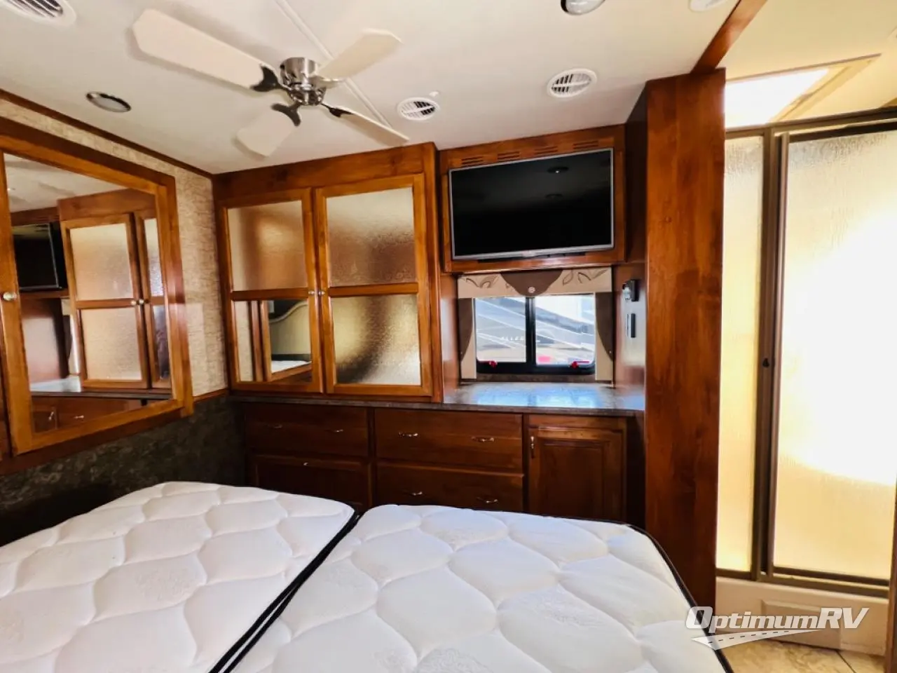 Continue on back to the master bedroom where you will enjoy a relaxing retreat with plenty of foot traffic space. There is a king bed slide out including nightstand on both sides of the bed. A rear wall storage space, and opposite the bed is a wardrobe with drawers, and vanity with TV, plus so much more!