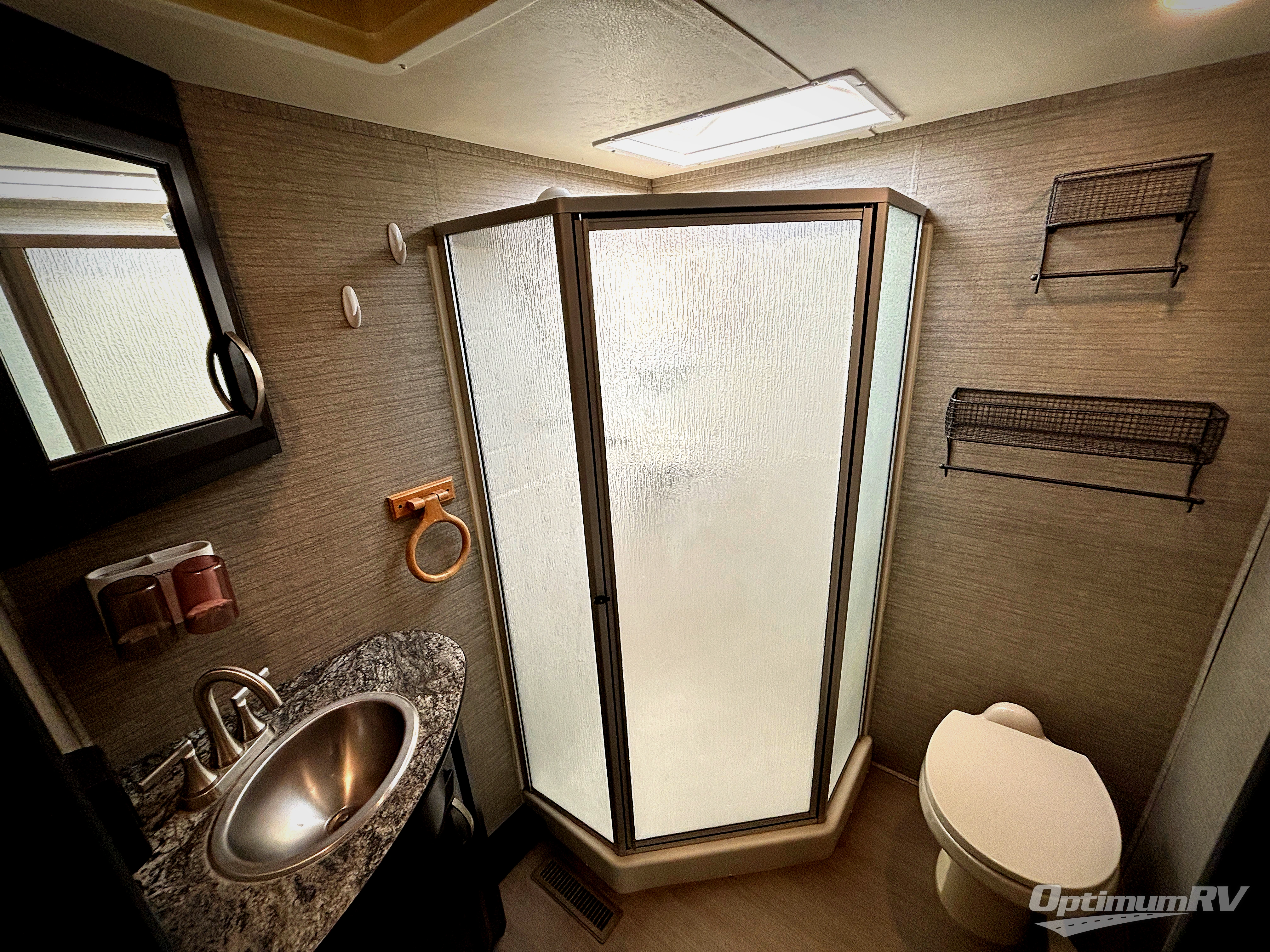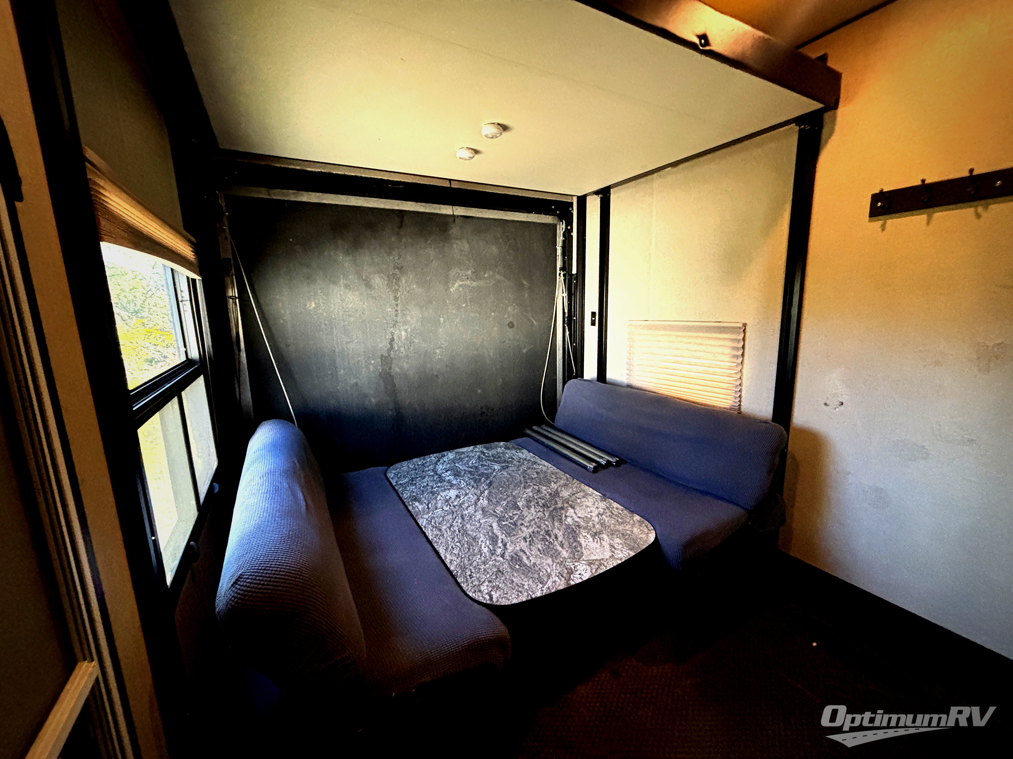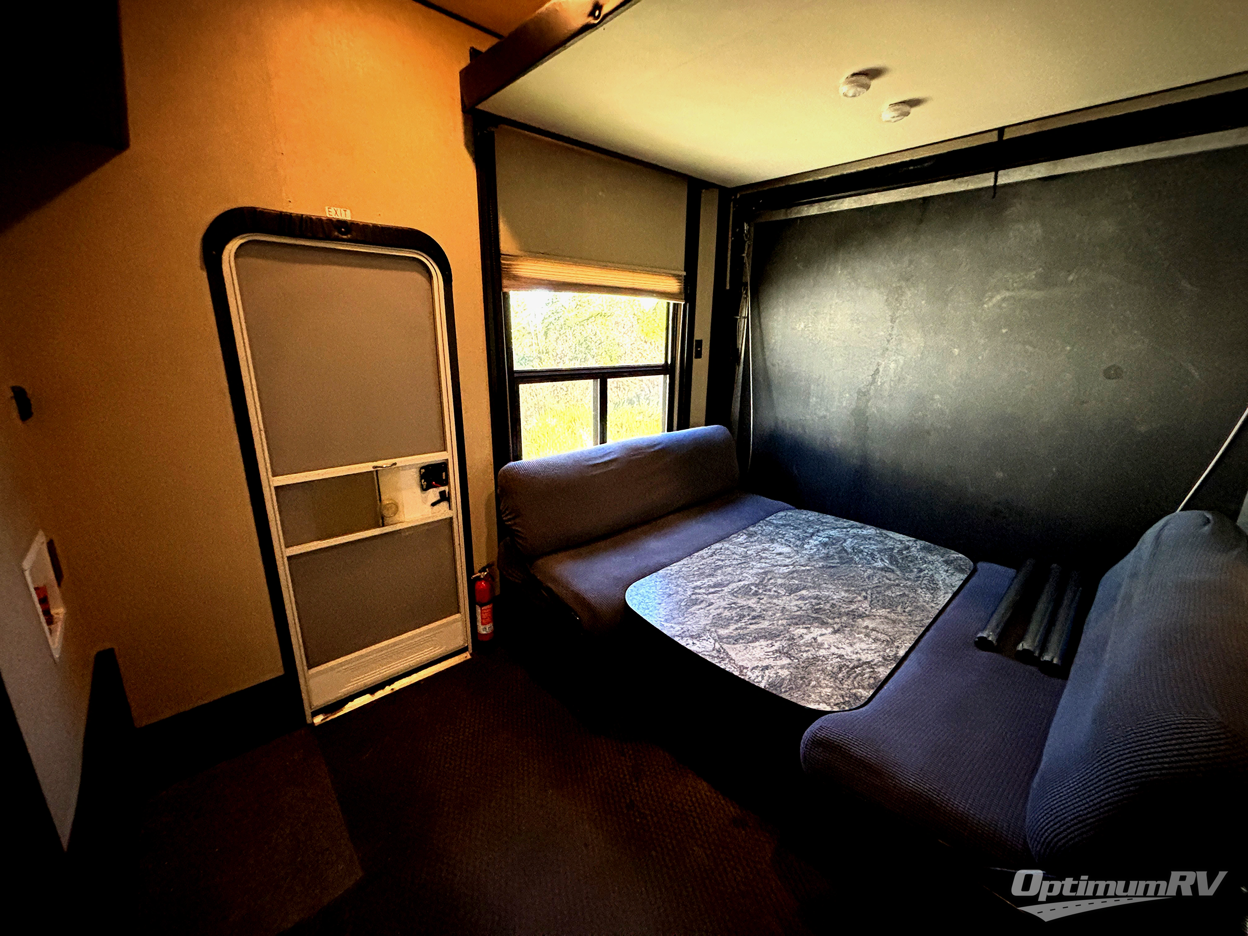 Continue on to the front private bedroom with a queen hinged top bed with nightstands on either side, plus overhead storage. There is also a his and her slide out wardrobe both featuring double door entry, plus so much more!