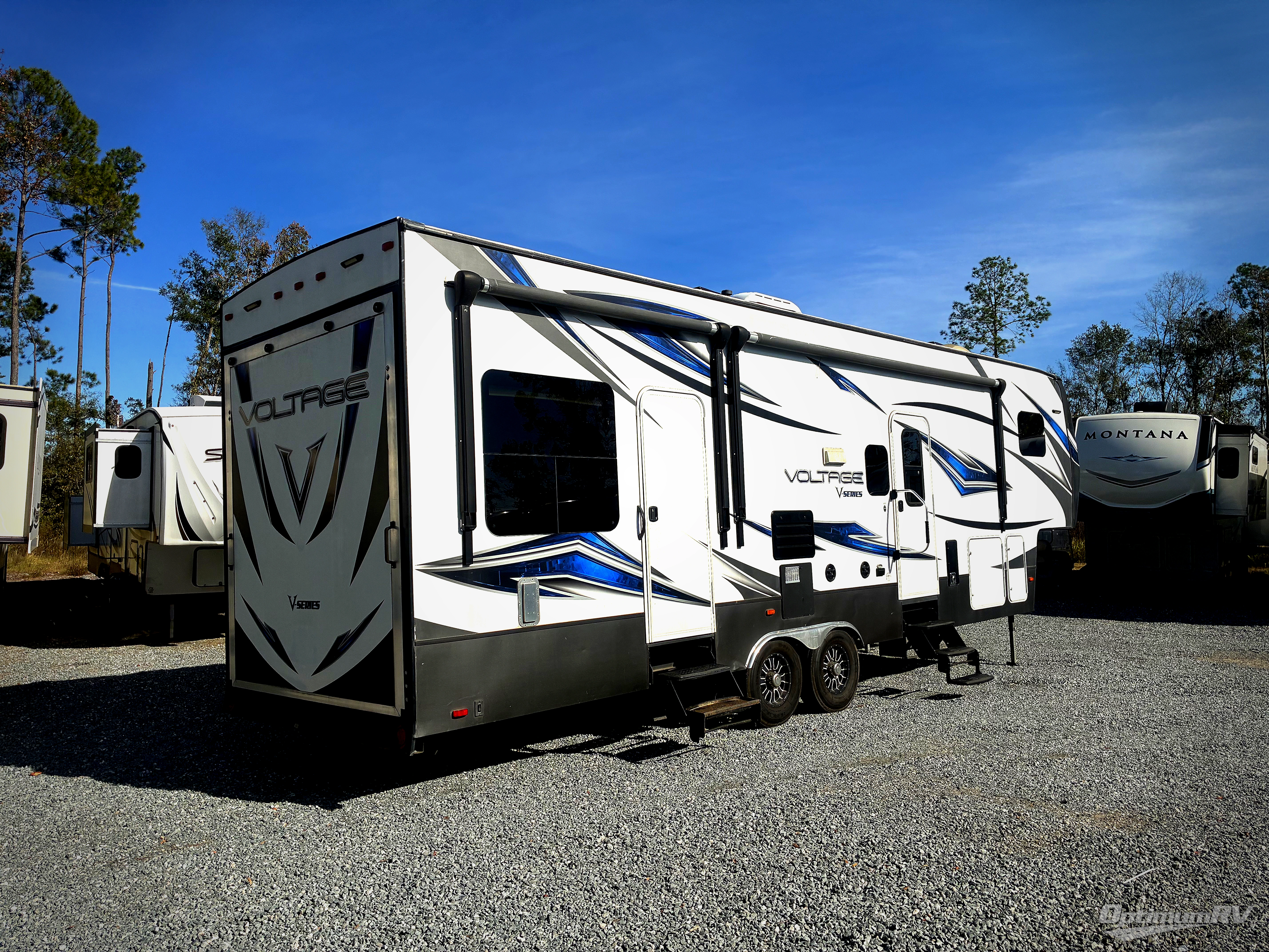 Enjoy this Voltage V-Series unit V3005 by Dutchmen when you head out for a weekend filled with fun! In this toy hauler fifth wheel you will enjoy a 10' garage area and dual slides in the front living space which features everything you need and more while traveling away from home.