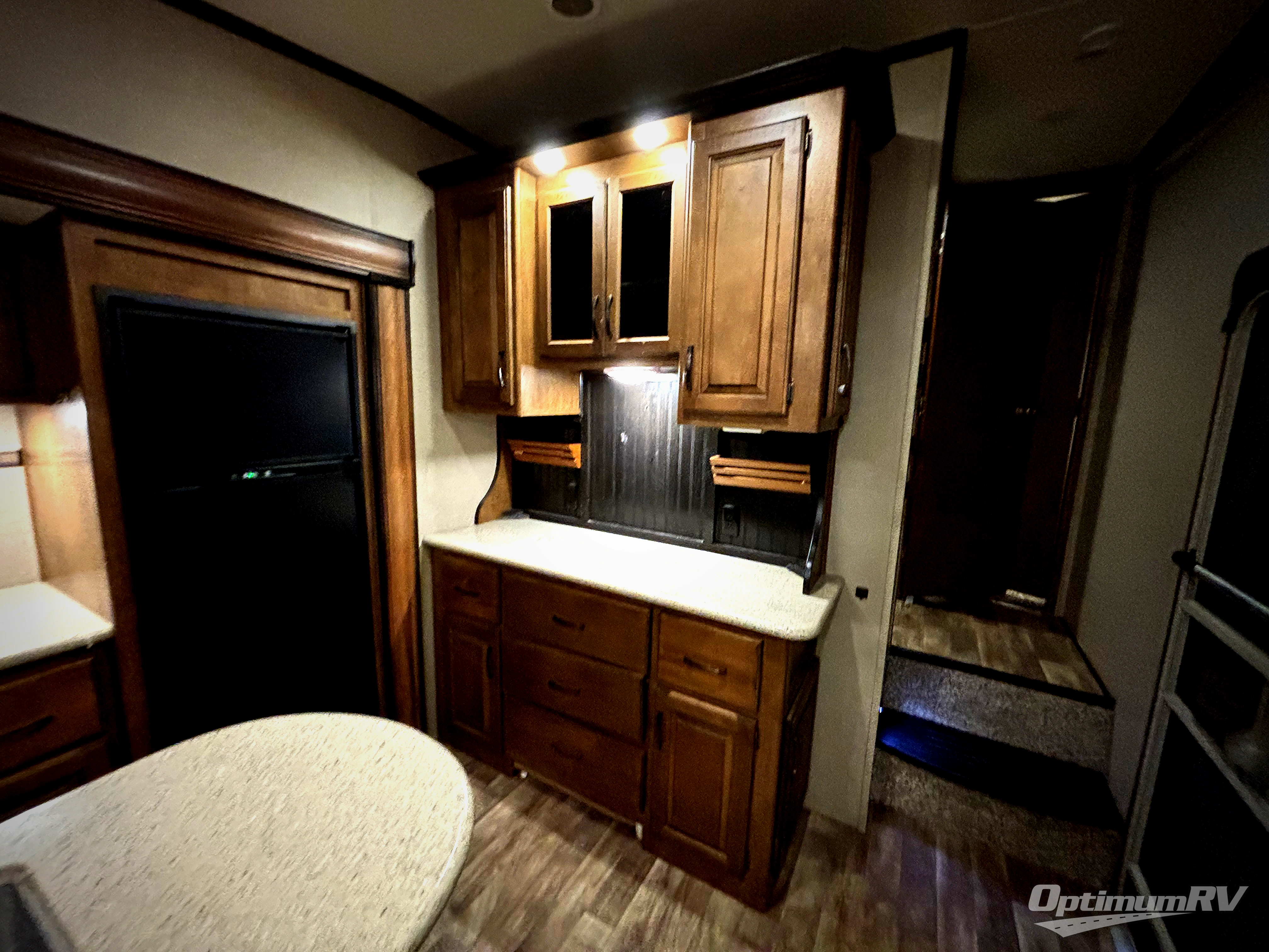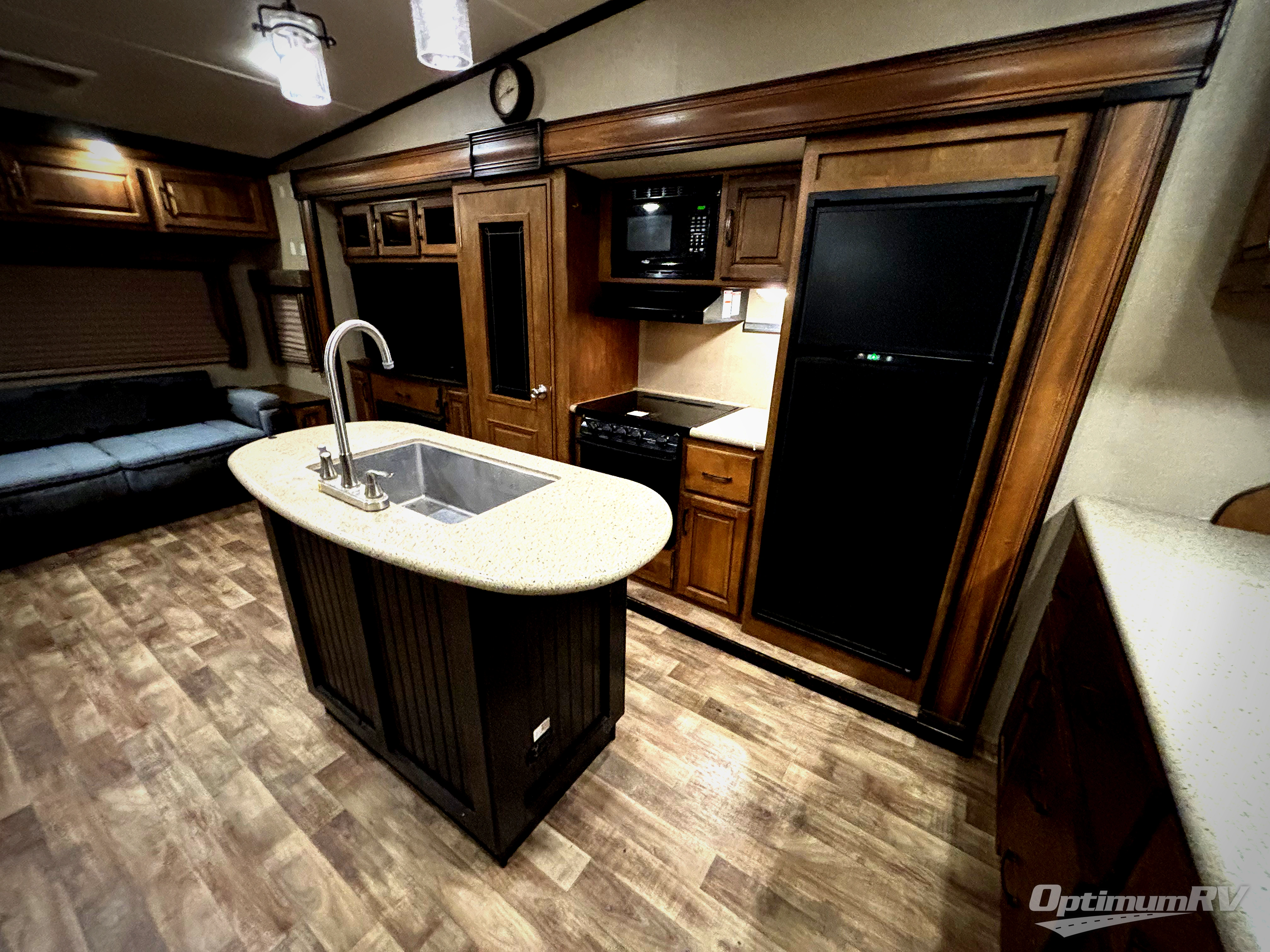 Tucked in the rear of the fifth wheel you will find a tri-fold hide-a-bed sofa that is perfect for relaxing and also provides additional sleeping when needed (queen sized bed).
