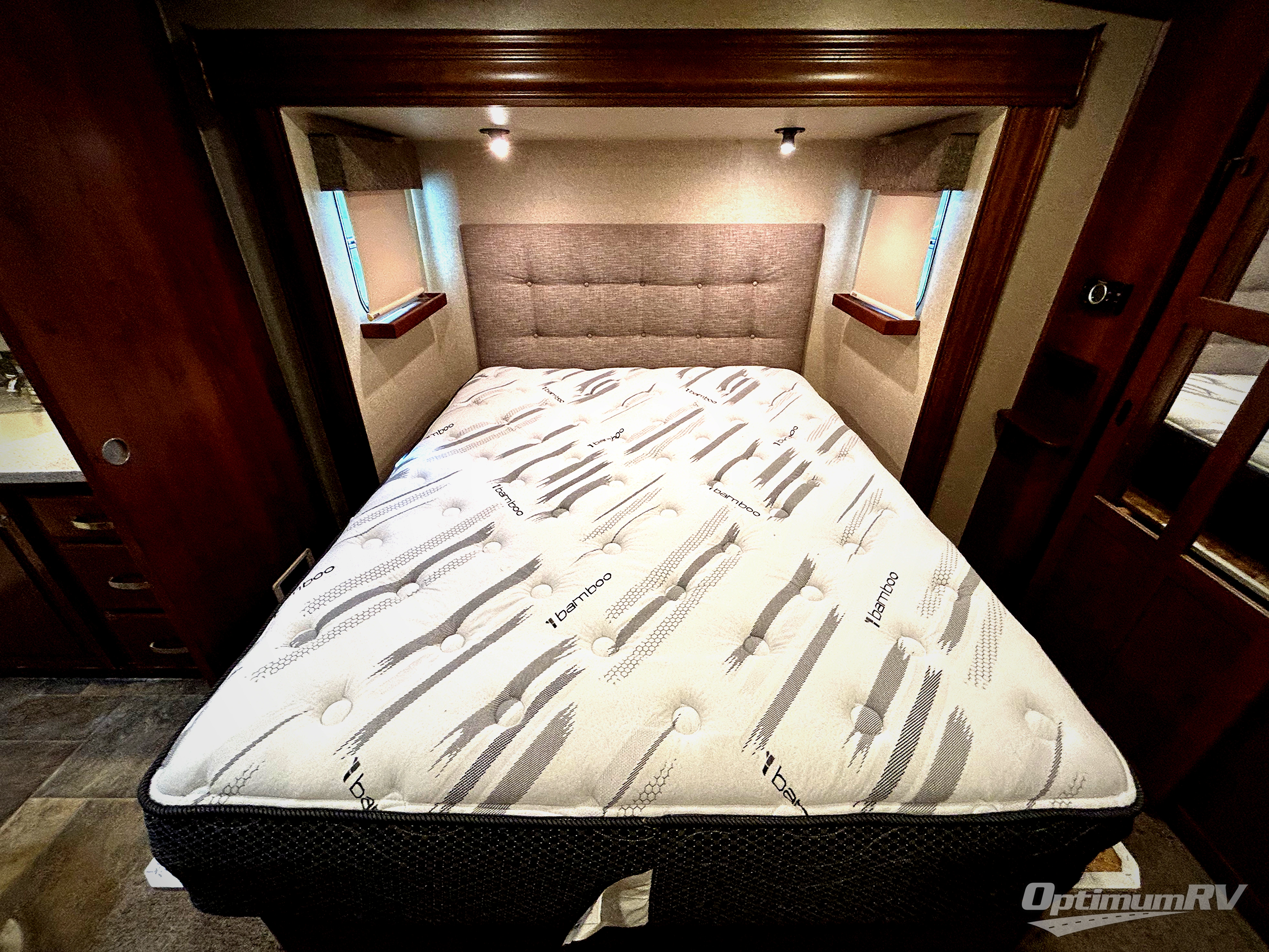 Head up the steps to the right of the main entry door and find a complete bath with shower including a seat, and a vanity with sink. There is also storage for linens and a toilet. There is a second sliding door in the bath that leads right into the front master bedroom where you will find a comfortable king size bed slide out, a dresser opposite along the curb side wall, and a front wall closet with sliding doors. For added convenience there is a washer/dryer prepped space so you can easily add the appliances, and so much more!