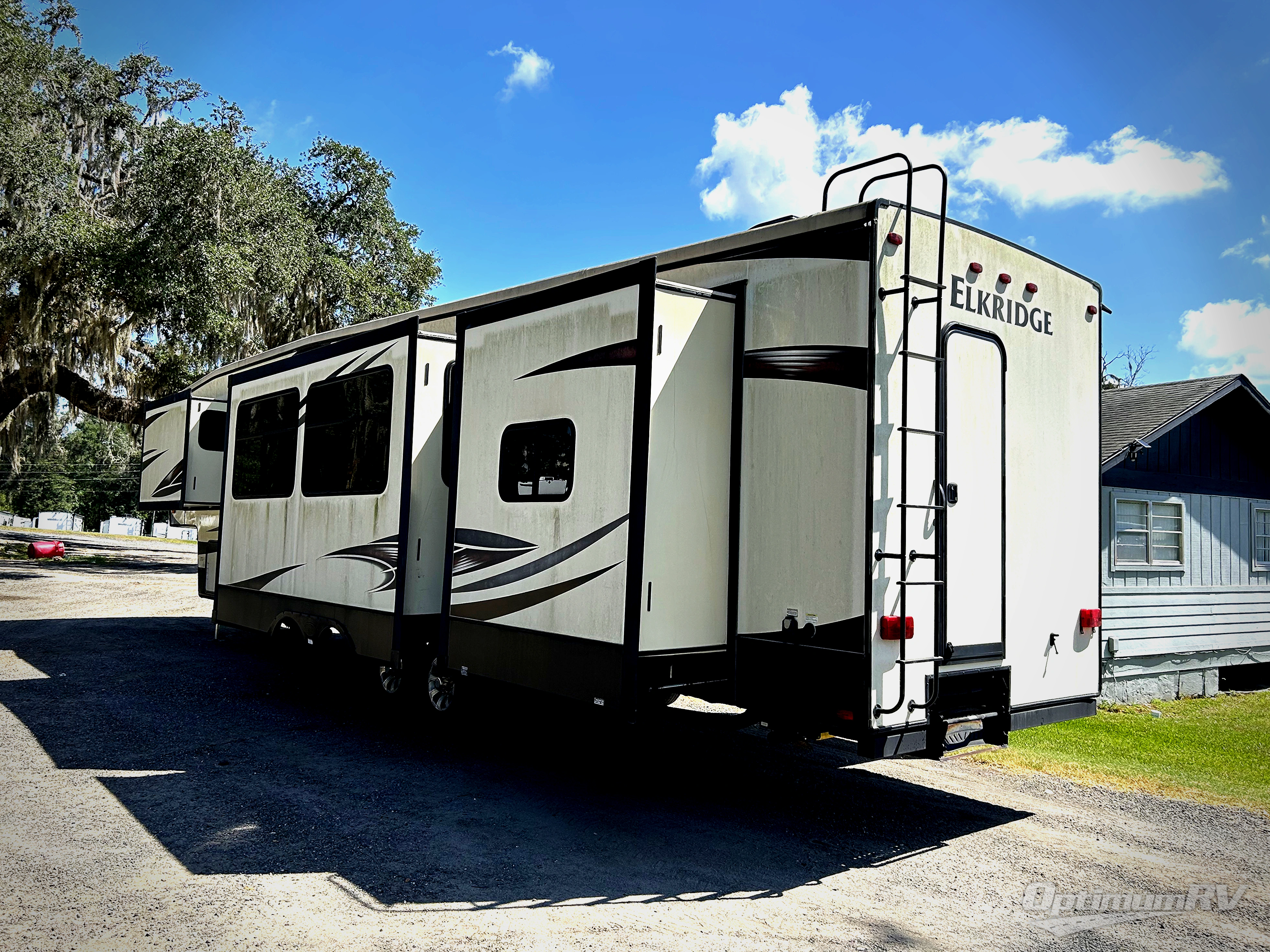 This ElkRidge fifth wheel by Heartland RV has it all! Model 38SRT features FIVE slide outs for added interior space, a bunk house that the kids will love, TWO FULL baths, outdoor camp kitchen, dual slides, and a king size bed!