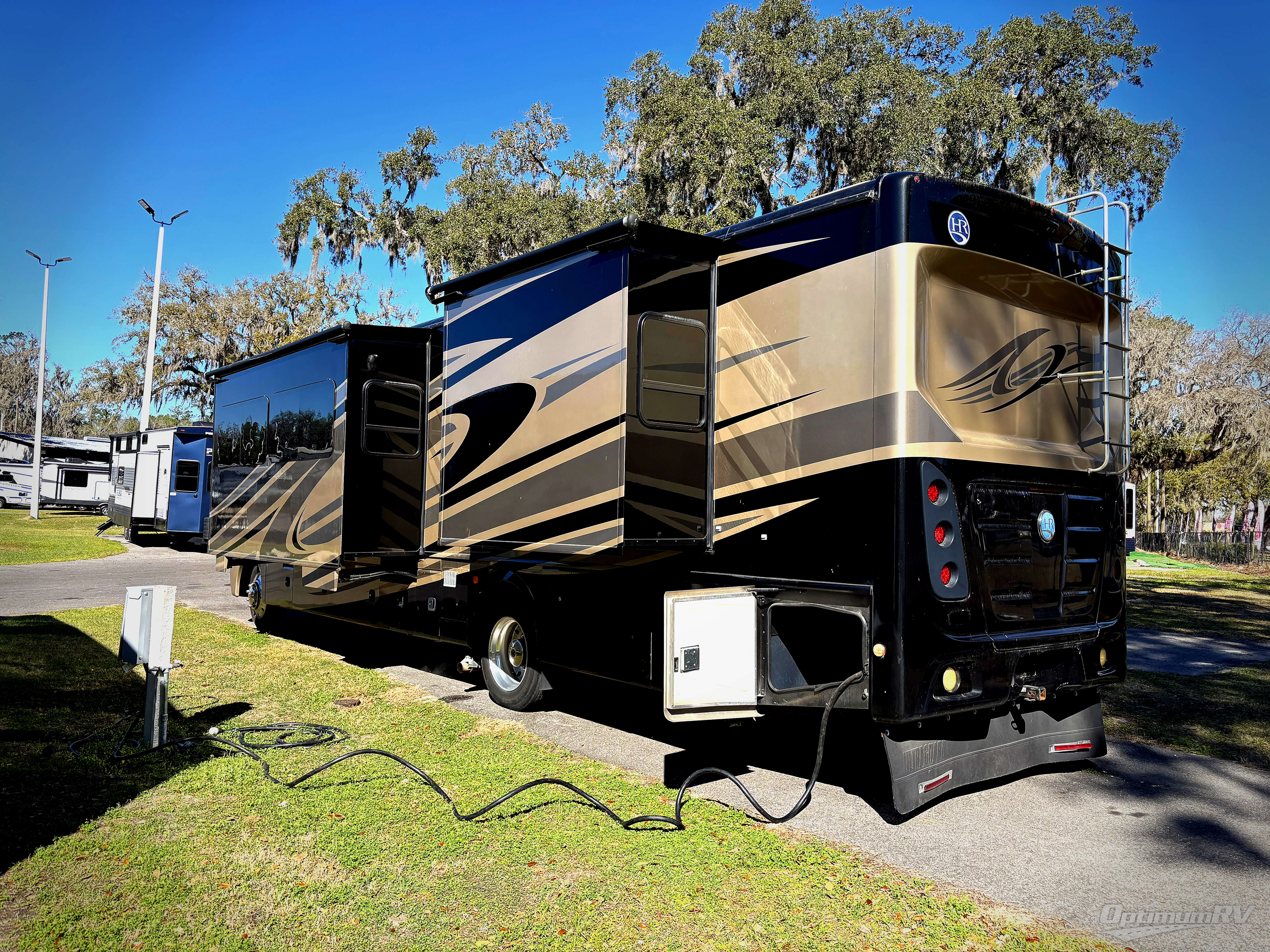 Plenty of room for the whole family can be found in this Vacationer class A gas coach by Holiday Rambler. Model 37BH features triple slides, bunks for the kiddos, and one and a half baths!