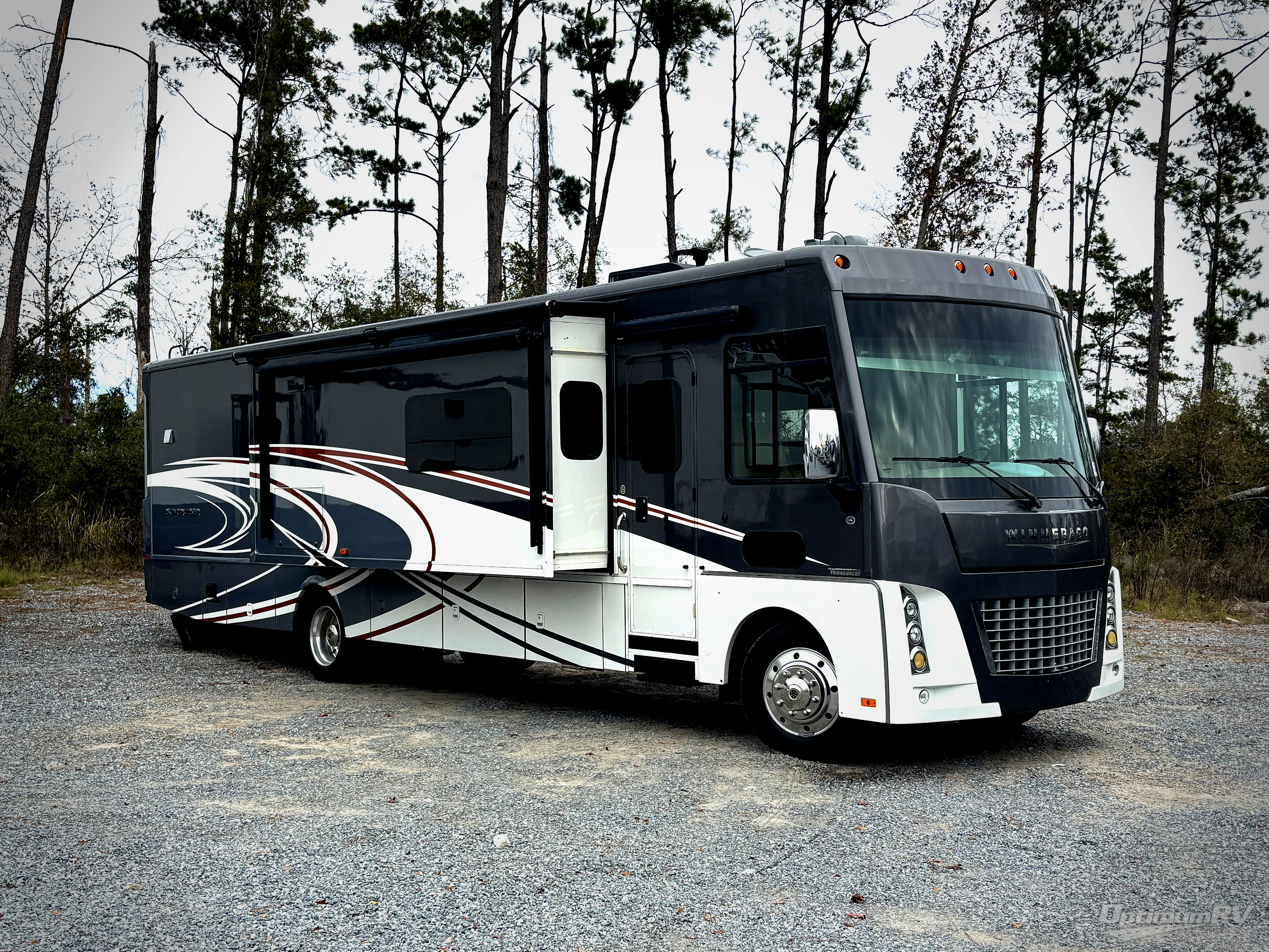Hit the road in this Suncruiser class A gas coach by Itasca. Model 38Q features triple slide outs for added interior space, a fireplace, a split bath, and recline/incline king size bed!