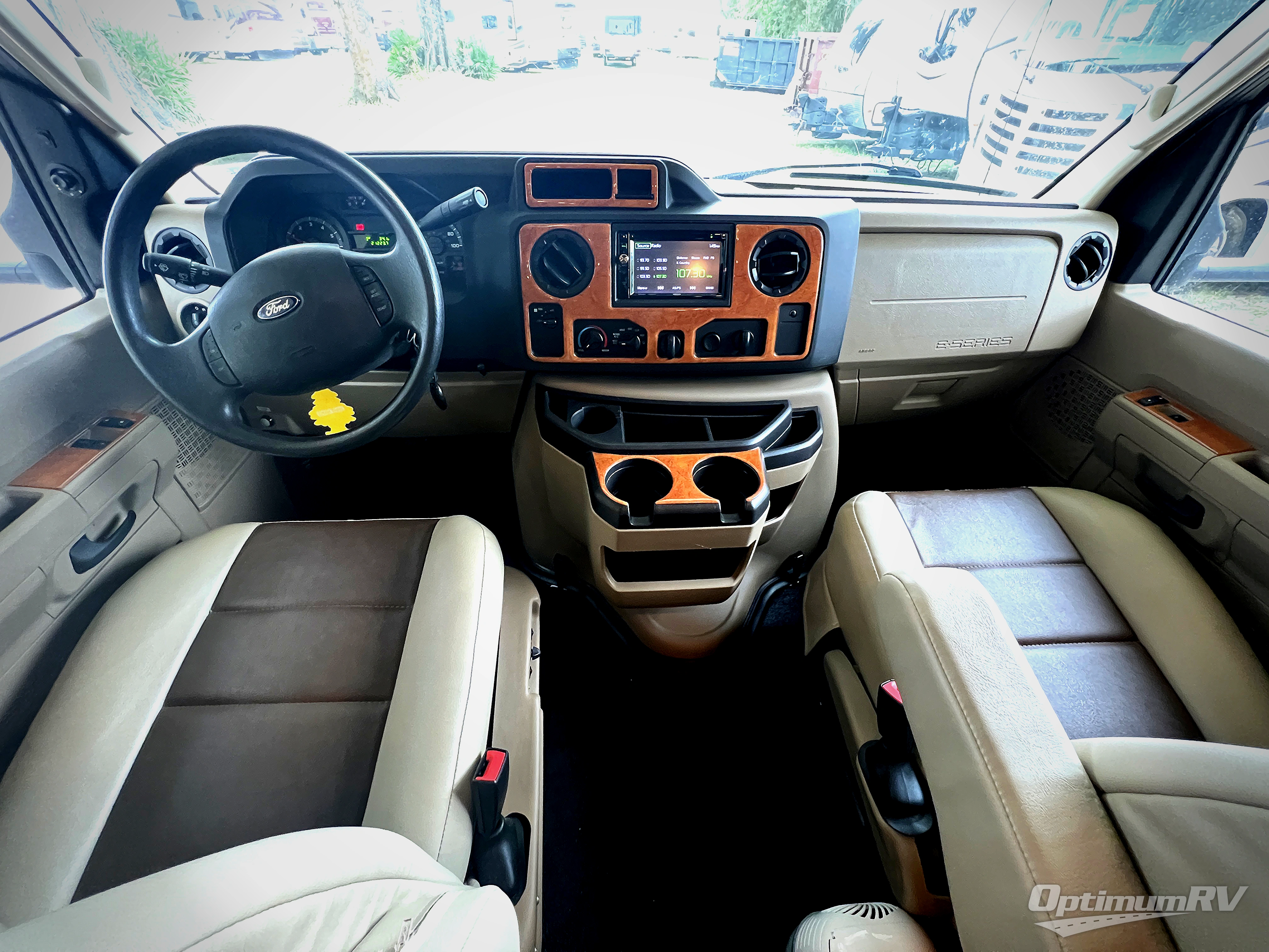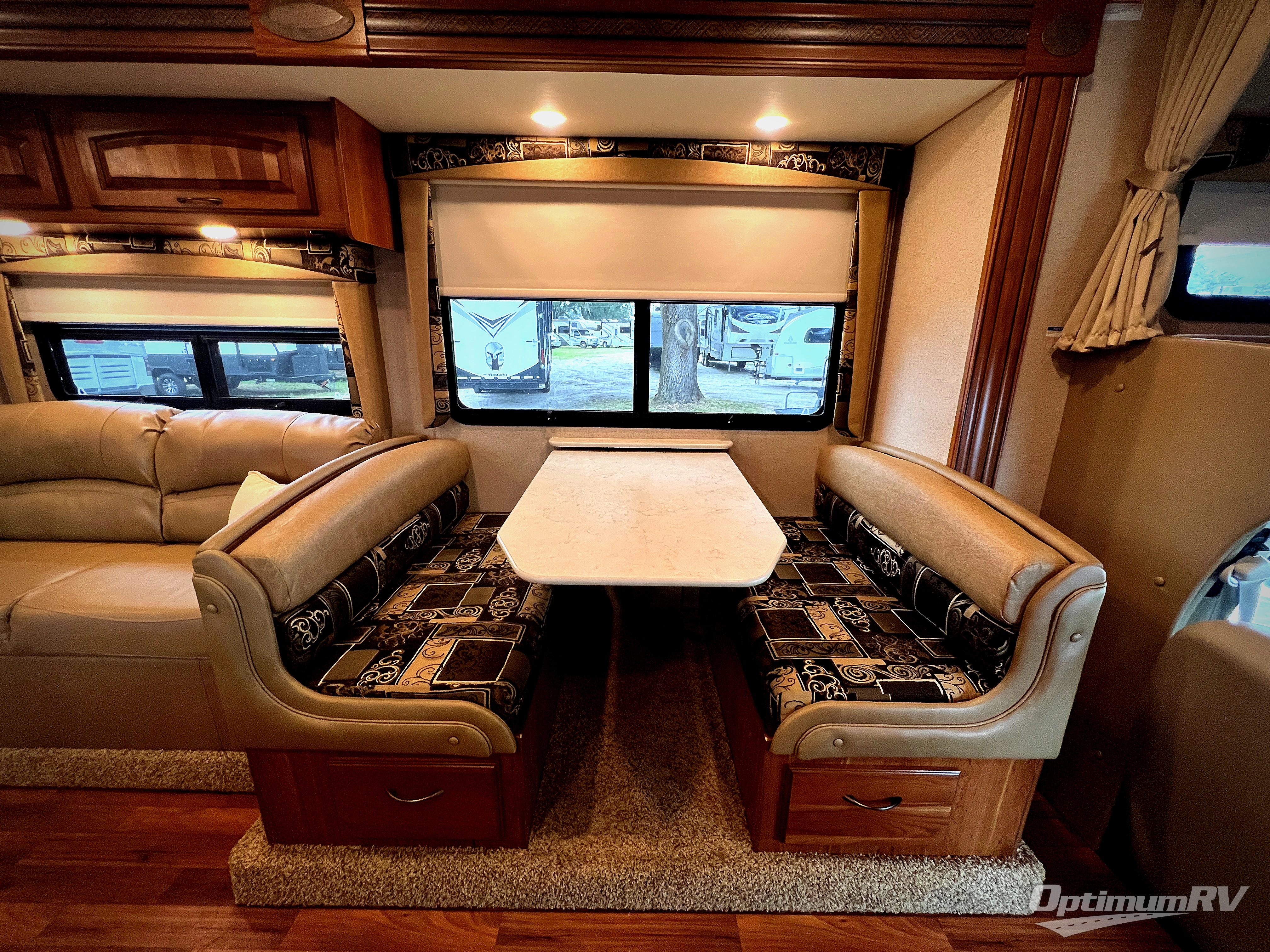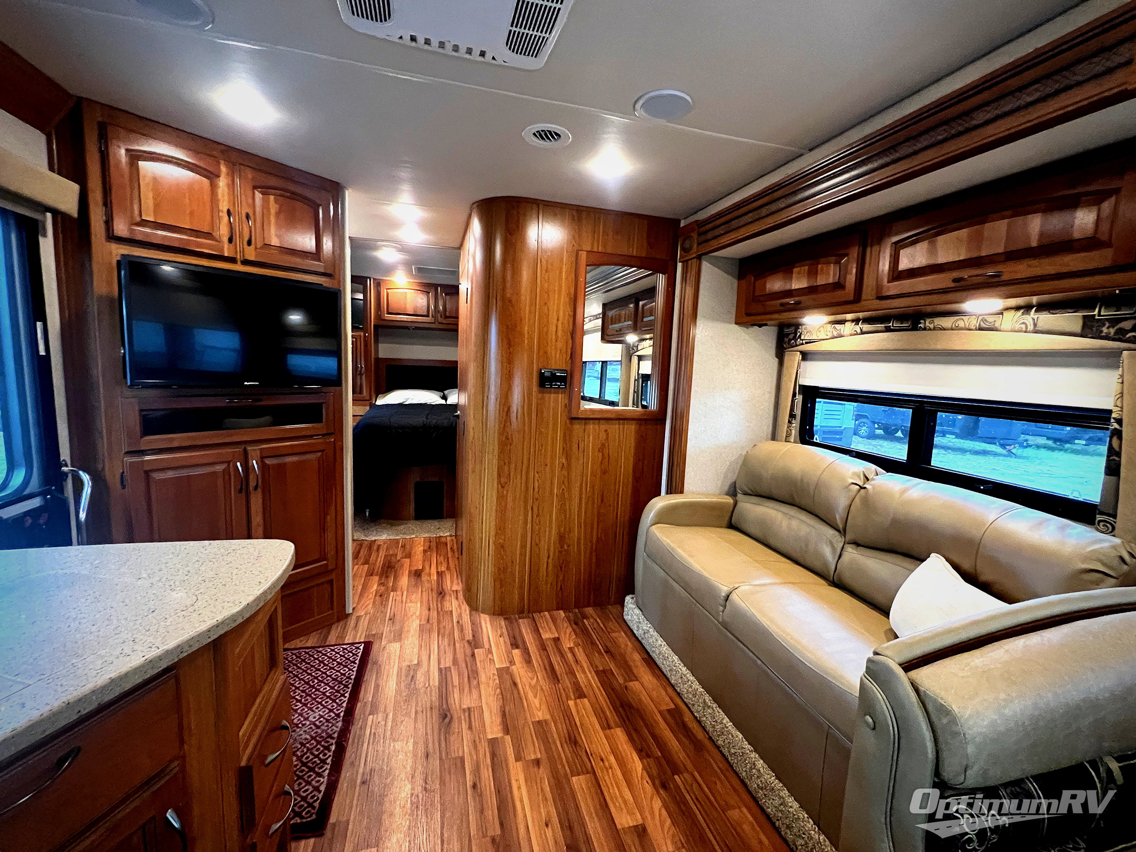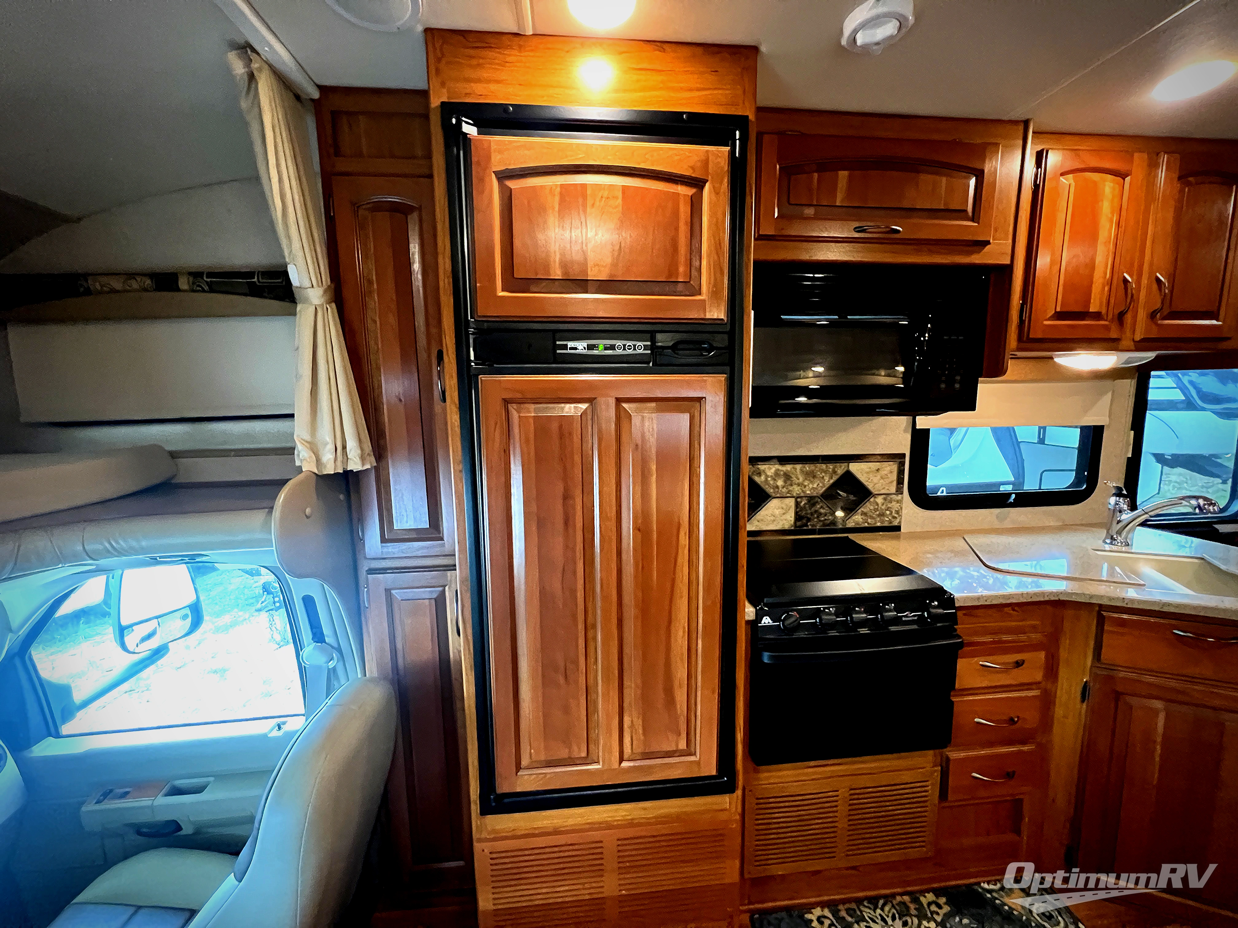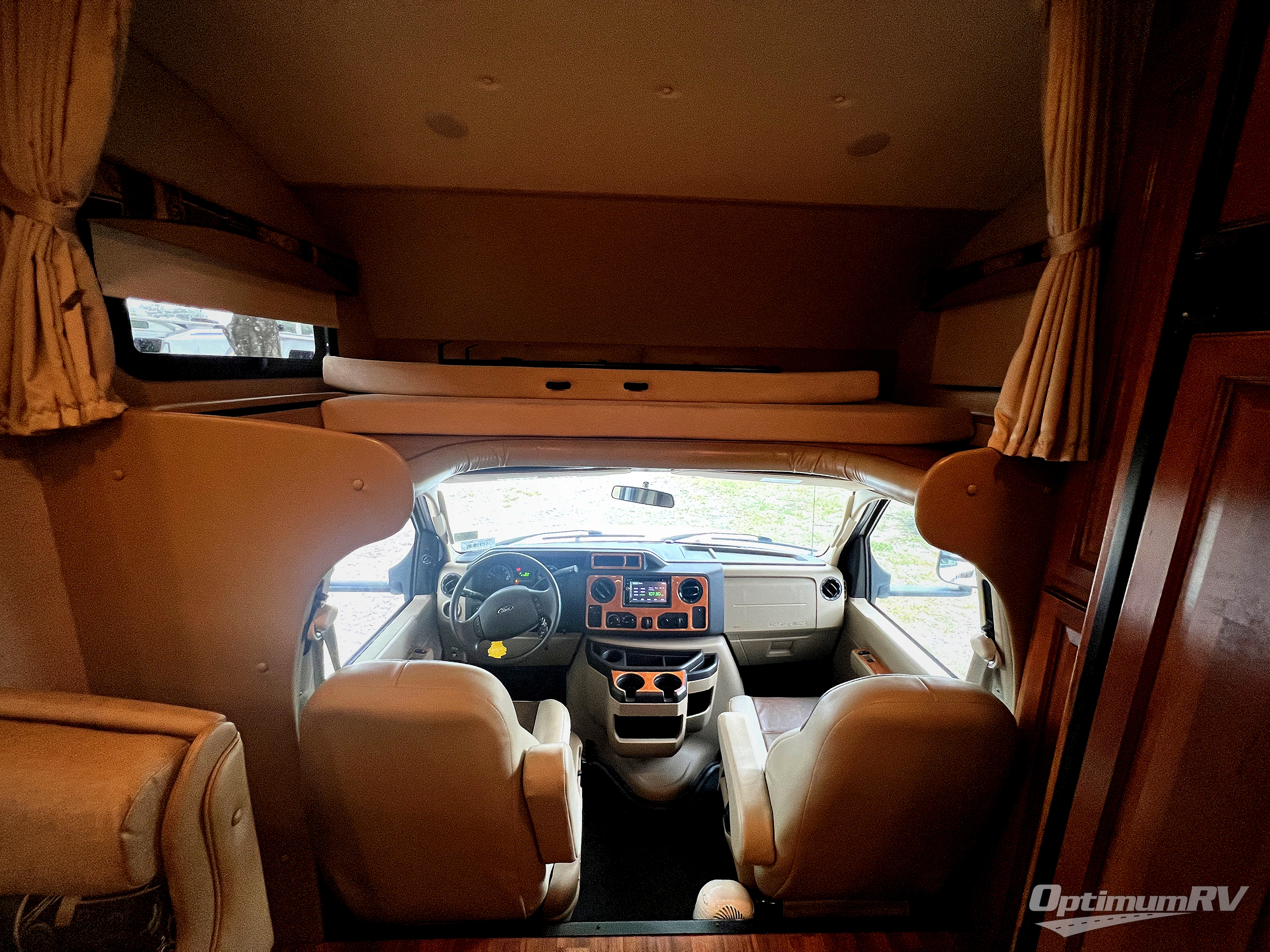 As you enter the front of the motor home, you will see a corner TV cabinet, double kitchen sink, three burner range, microwave, refrigerator, and a pantry. The side behind the driver's seat has a dinette and sofa slide. The cab-over bunk provides added sleeping space for friends, or you can choose an optional front entertainment in place of the cab-over bunk.