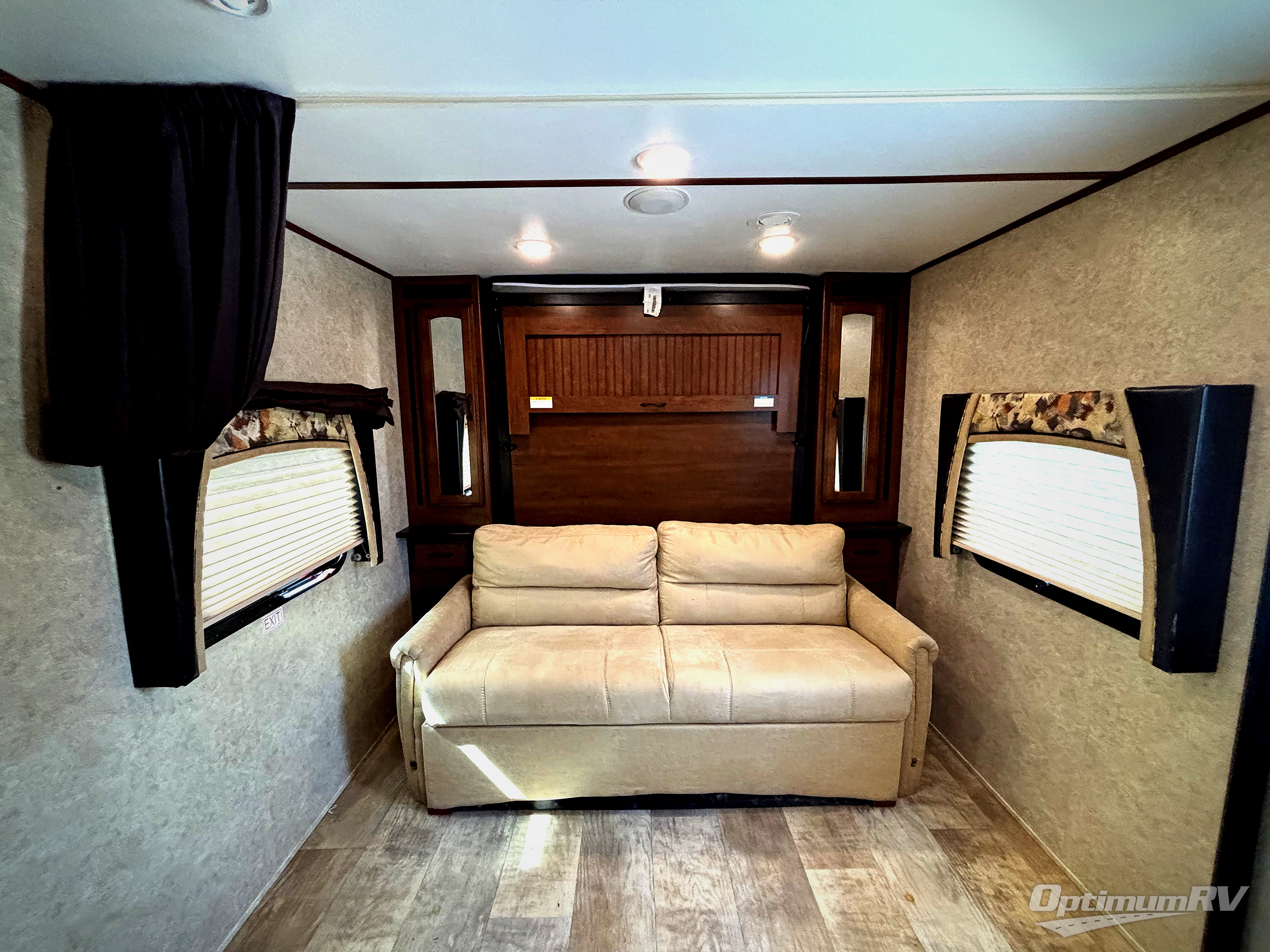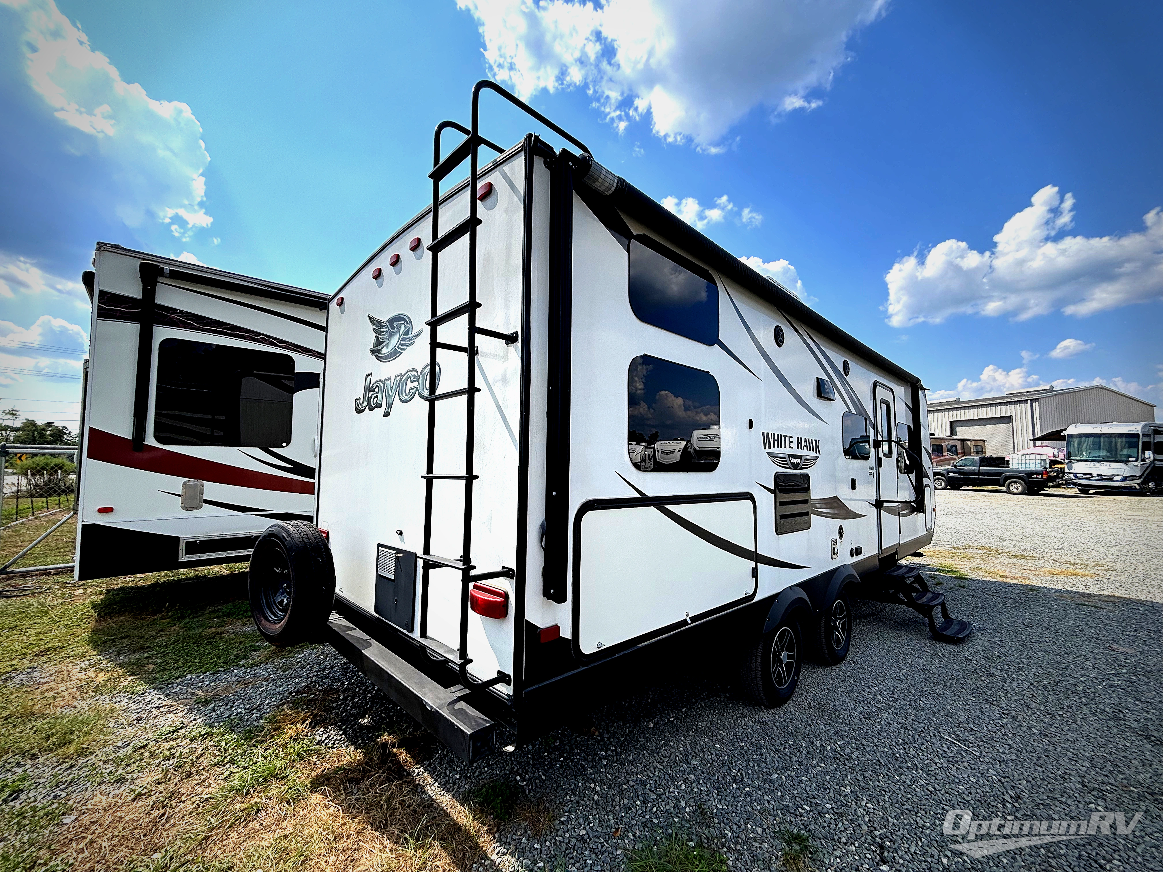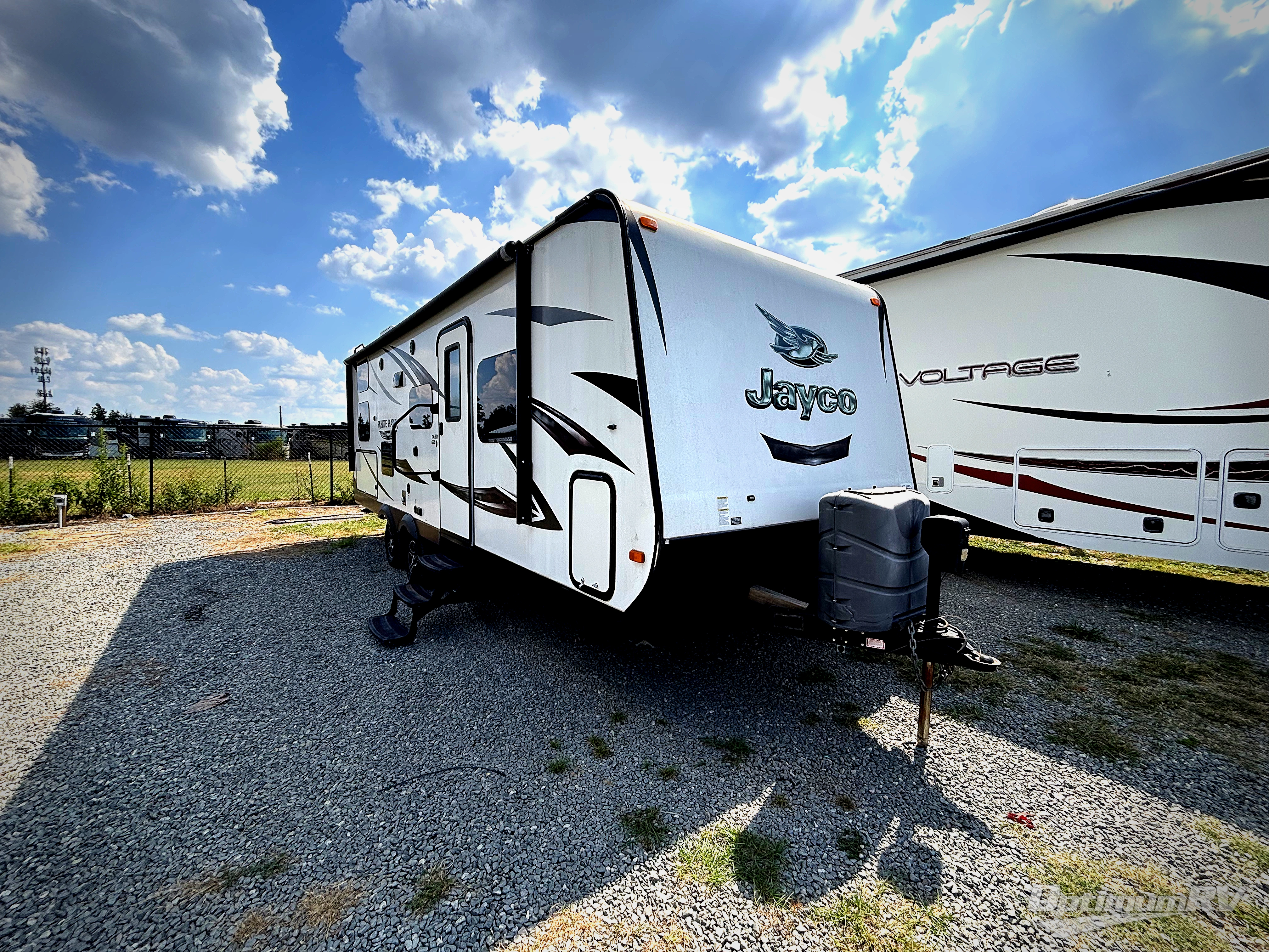 This Jayco White Hawk 24MBH travel trailer stands out with its dual entry, Murphy bed, double bunks, outside kitchen, u-shape dinette, plus so much more!