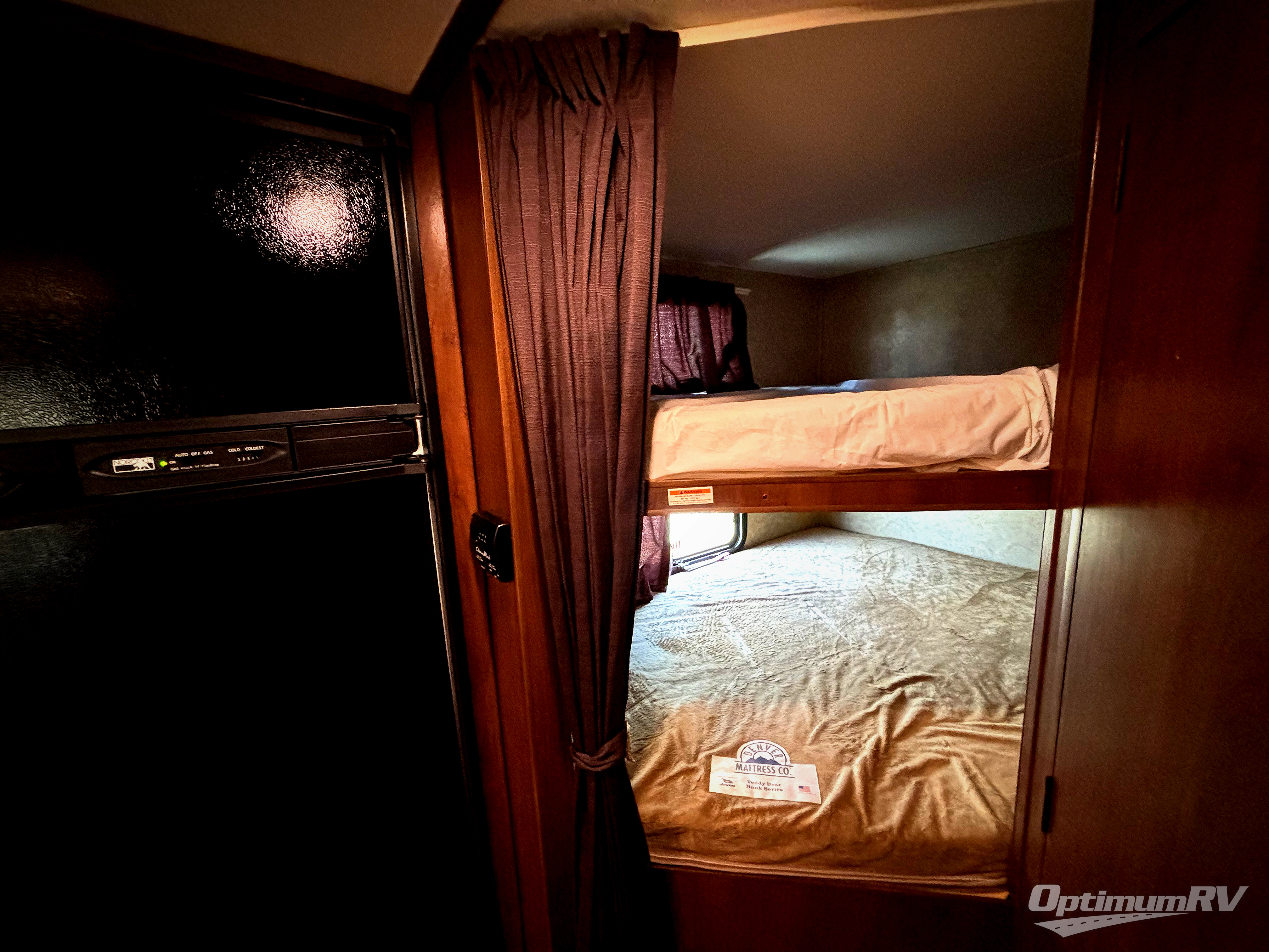 The left rear corner includes double size bunk beds with a privacy curtain for family and friends. Between the Murphy bed, u-shape dinette, and double size bunk beds, there is enough sleeping space for 8!