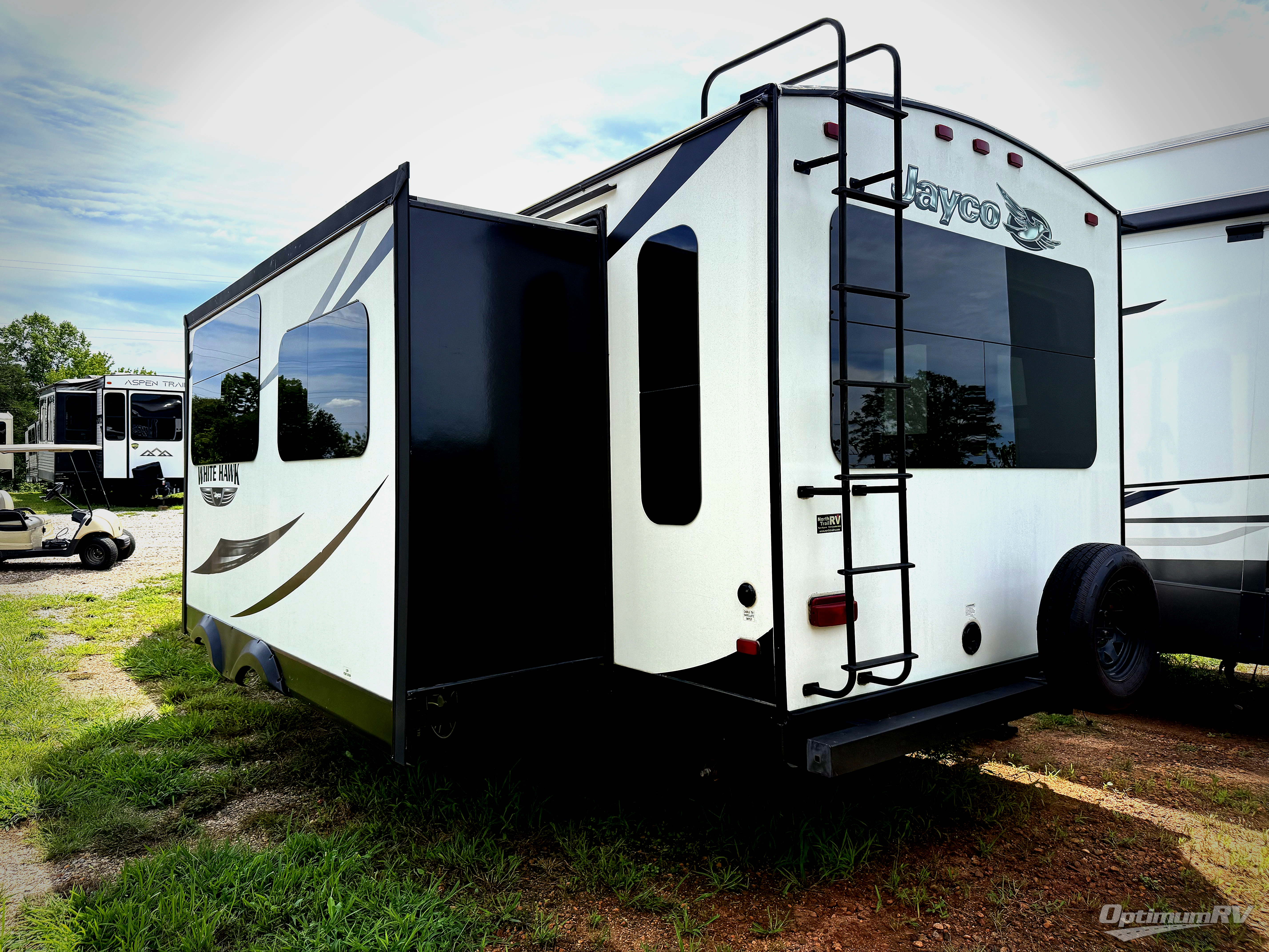 The 27DSRL White Hawk travel trailer by Jayco features a private front bedroom, a walk-thru bath, dual entry, plus so much more!