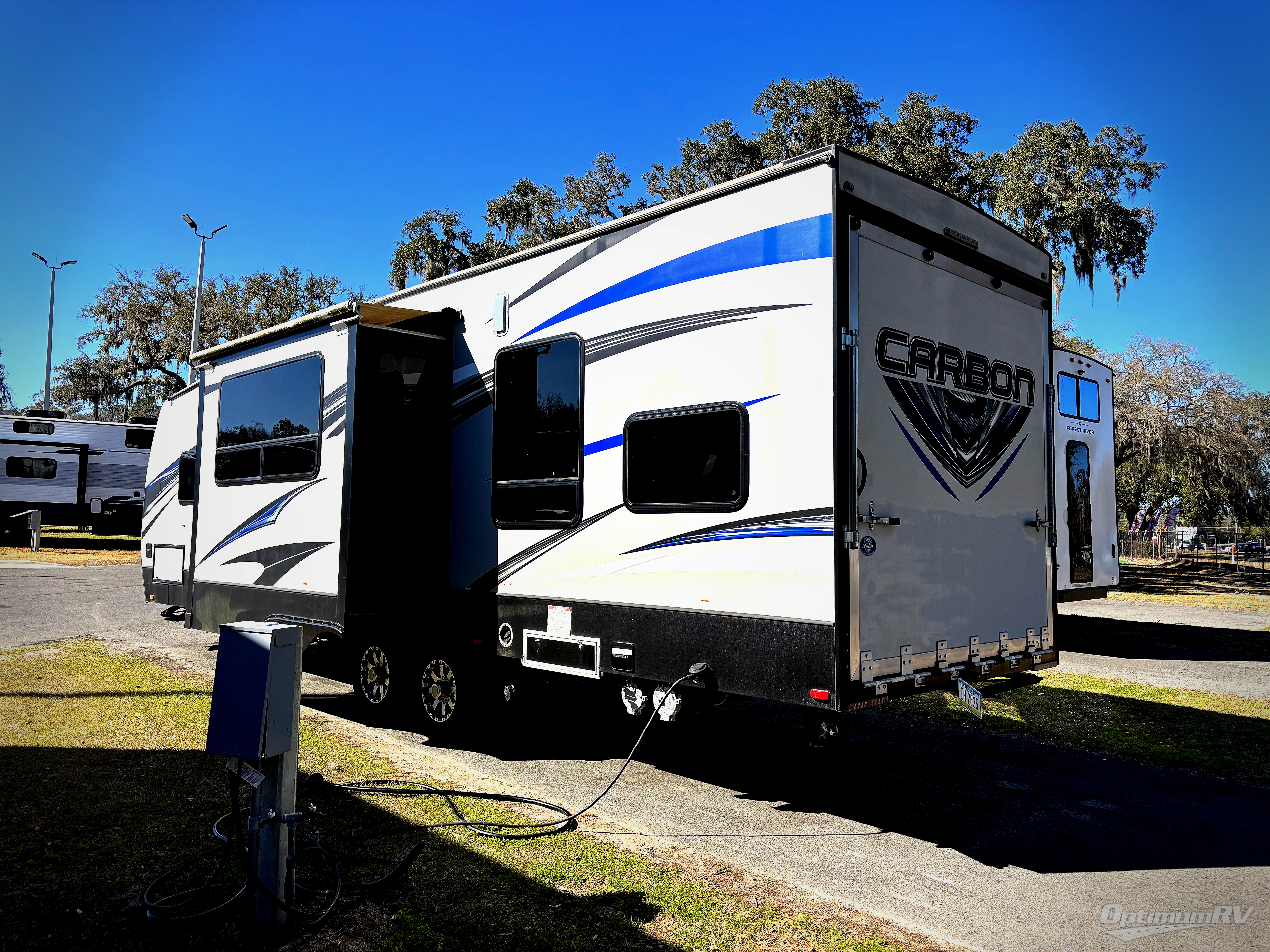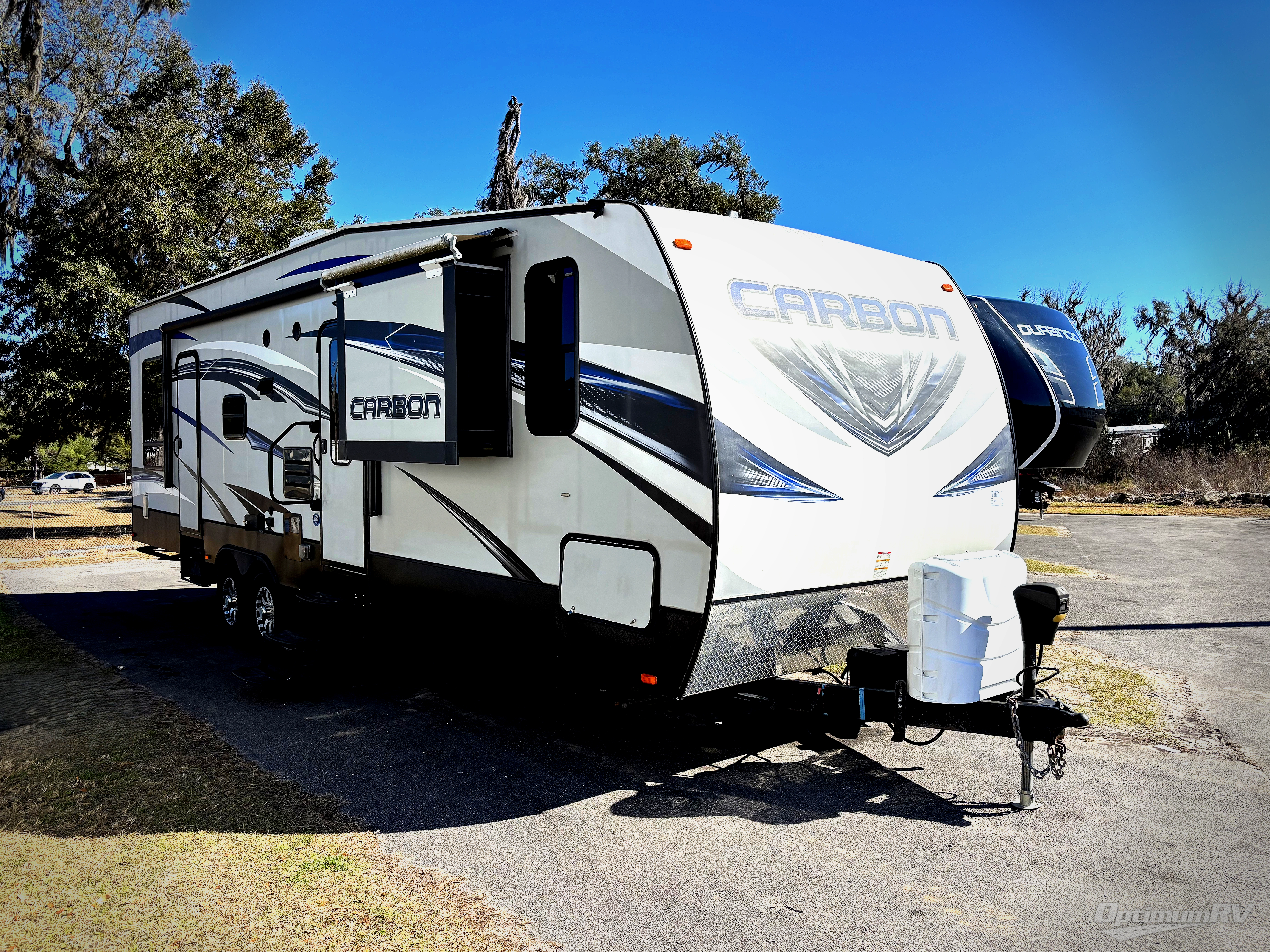 Carbon model 31 is ready to take you and your family on a great adventure! Step inside this toy hauler travel trailer by Keystone RV and see how luxurious your travel time can be! This unit features double slide outs, a private front bedroom, double electric beds in the cargo area for more sleeping, and a 30 gallon fuel tank to keep things going all weekend long!