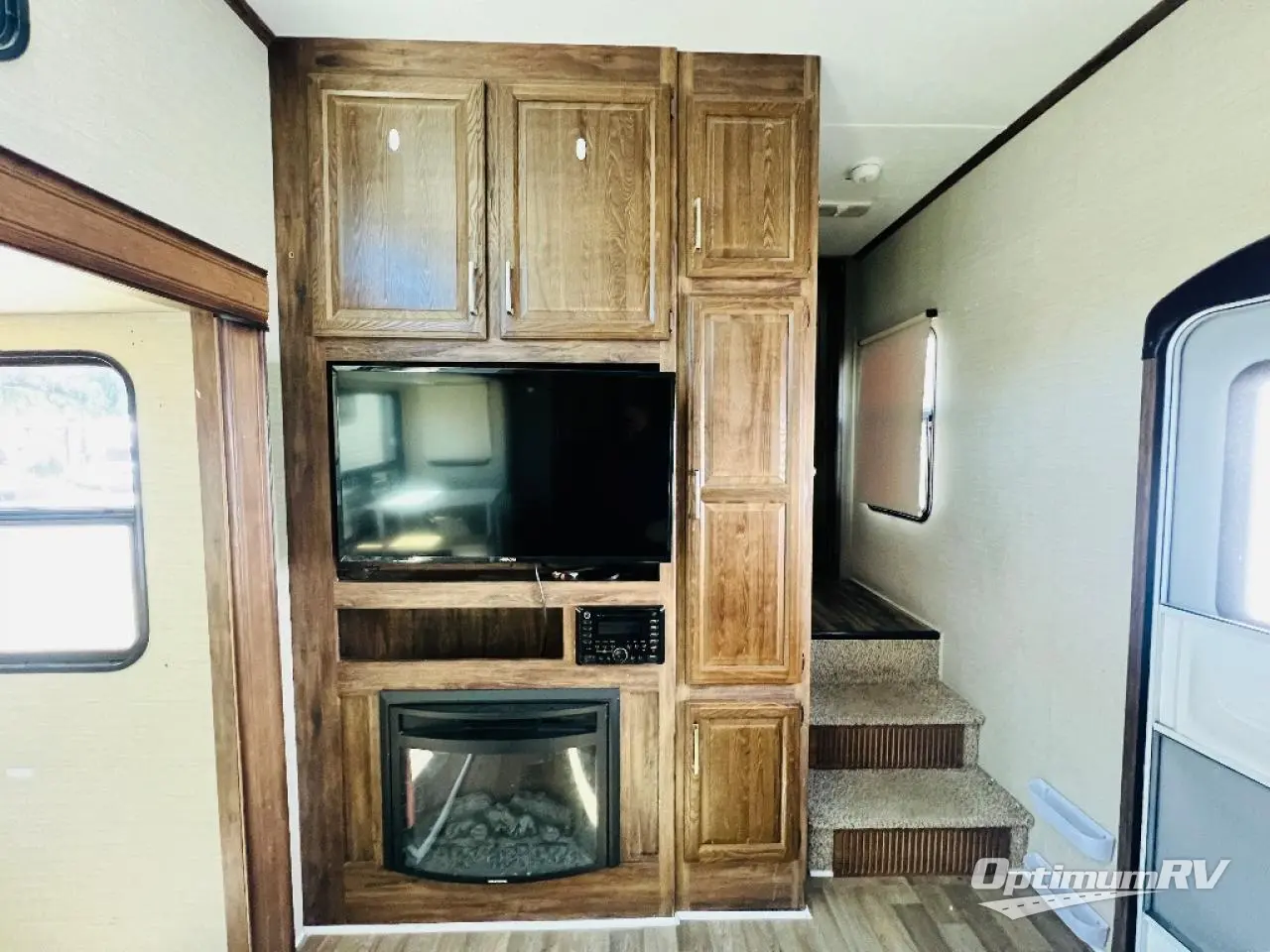 On the inside notice the large slide opposite the door as you step inside. There is a booth dinette and tri-fold sleeper sofa with overhead cabinet for storage. A nearby entertainment center with a 40" LCD TV can easily be viewed for your enjoyment, and also provides storage both above and below. The handy coat closet is also convenient with floor to ceiling storage space.
