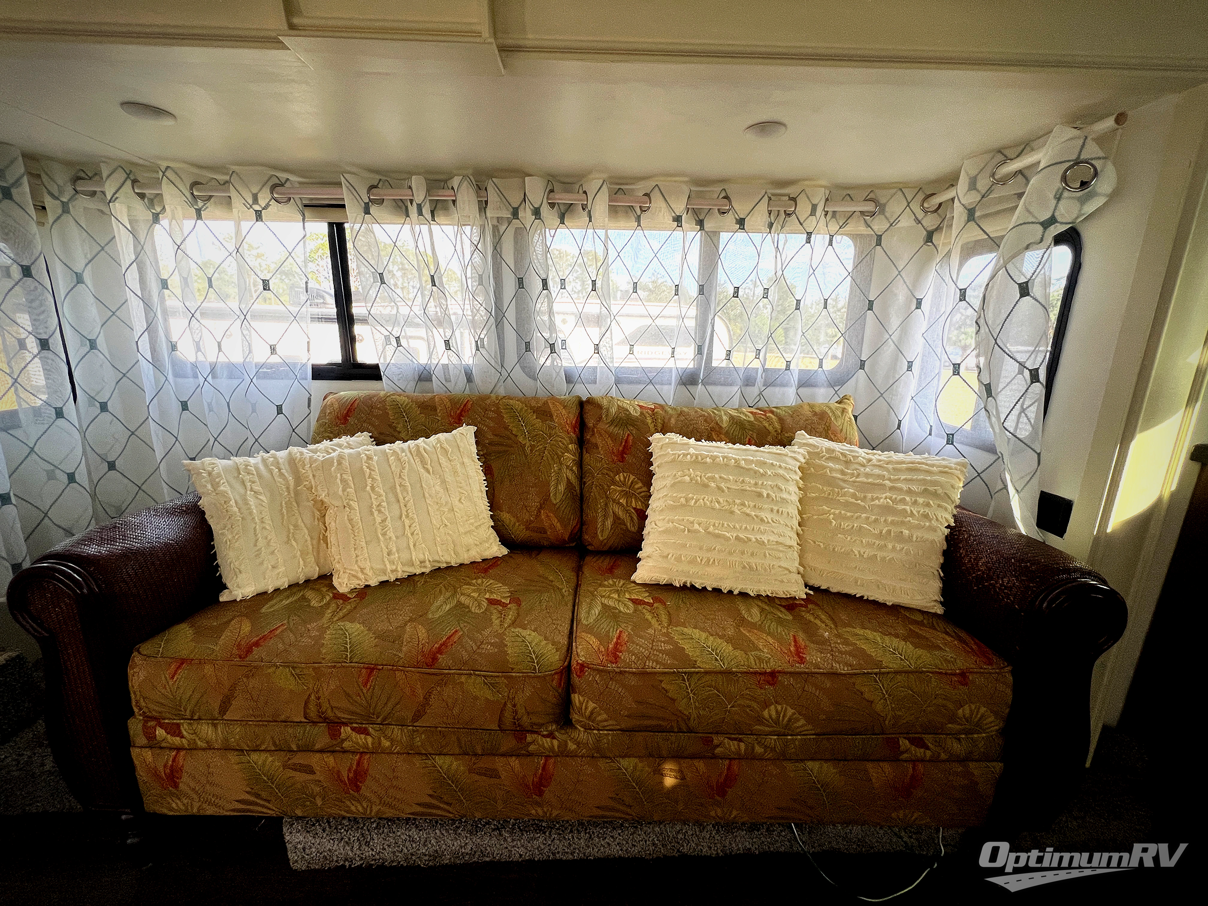 In front to the right of the main entry door head up the steps to a spacious front living area where you will find dual opposing slides. There is a slide out hide-a-bed to the right, and an L-shaped hide-a-bed sofa with connected recliner to the left. Along the front wall find a HDTV, and optional fireplace, plus so much more!
