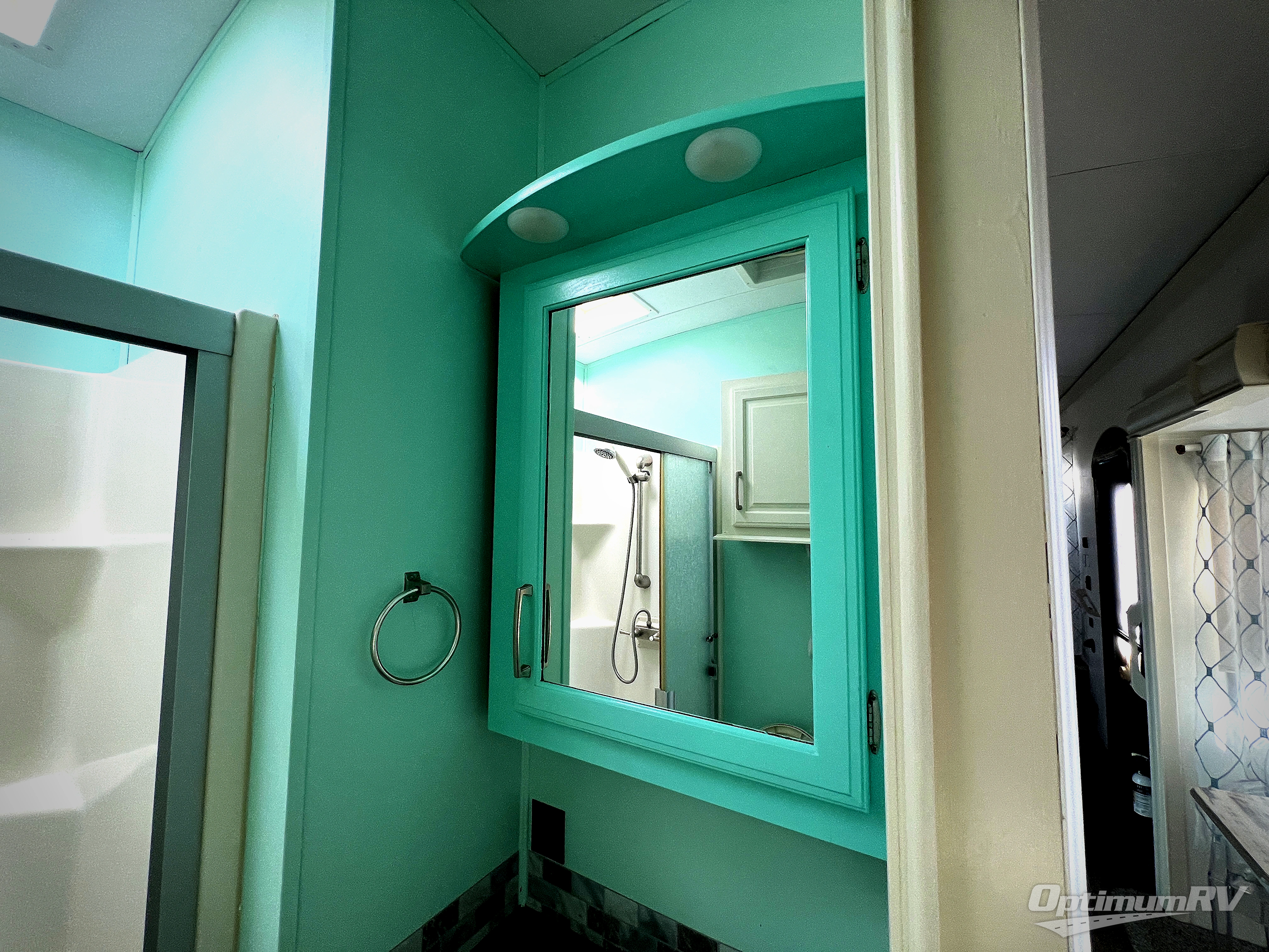 Head toward the rear of this unit and find a complete bath with sink, toilet, and a 48" x 30" shower, plus linen storage. There is also a second outdoor entry right across the hall from the bathroom door which makes it convenient to access when enjoying time outside making it a quick step in to use.