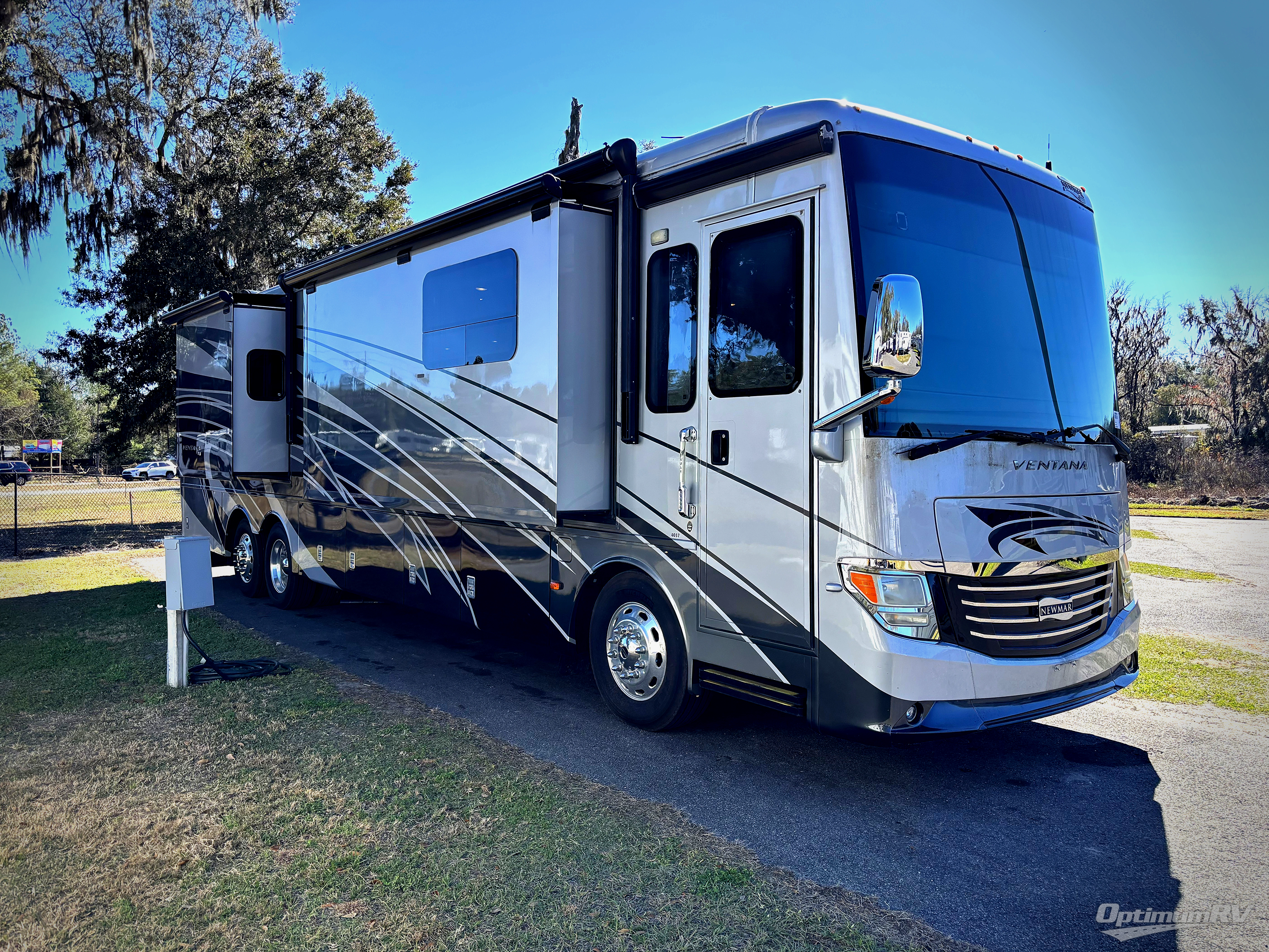 The Ventana 4037 class A diesel motor coach by Newmar offers triple slides, a rear master bath, and a half bath.