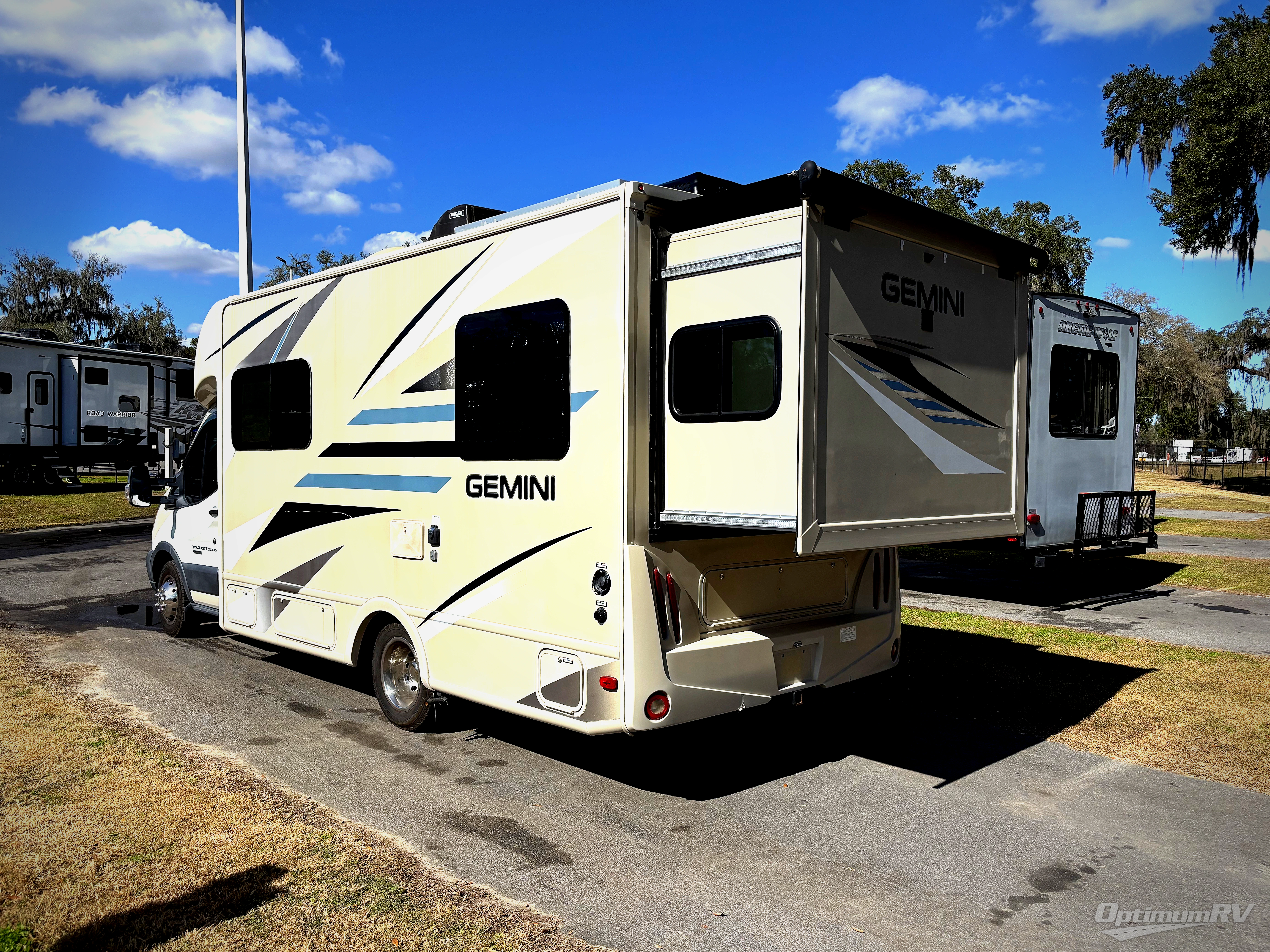 Travel comfortable in this Gemini class C diesel motorhome by Thor Motor Coach. Model 23TR features all the amenities needed to enjoy traveling with sleeping and dining accommodations for three or four, plus a complete bath, and more!