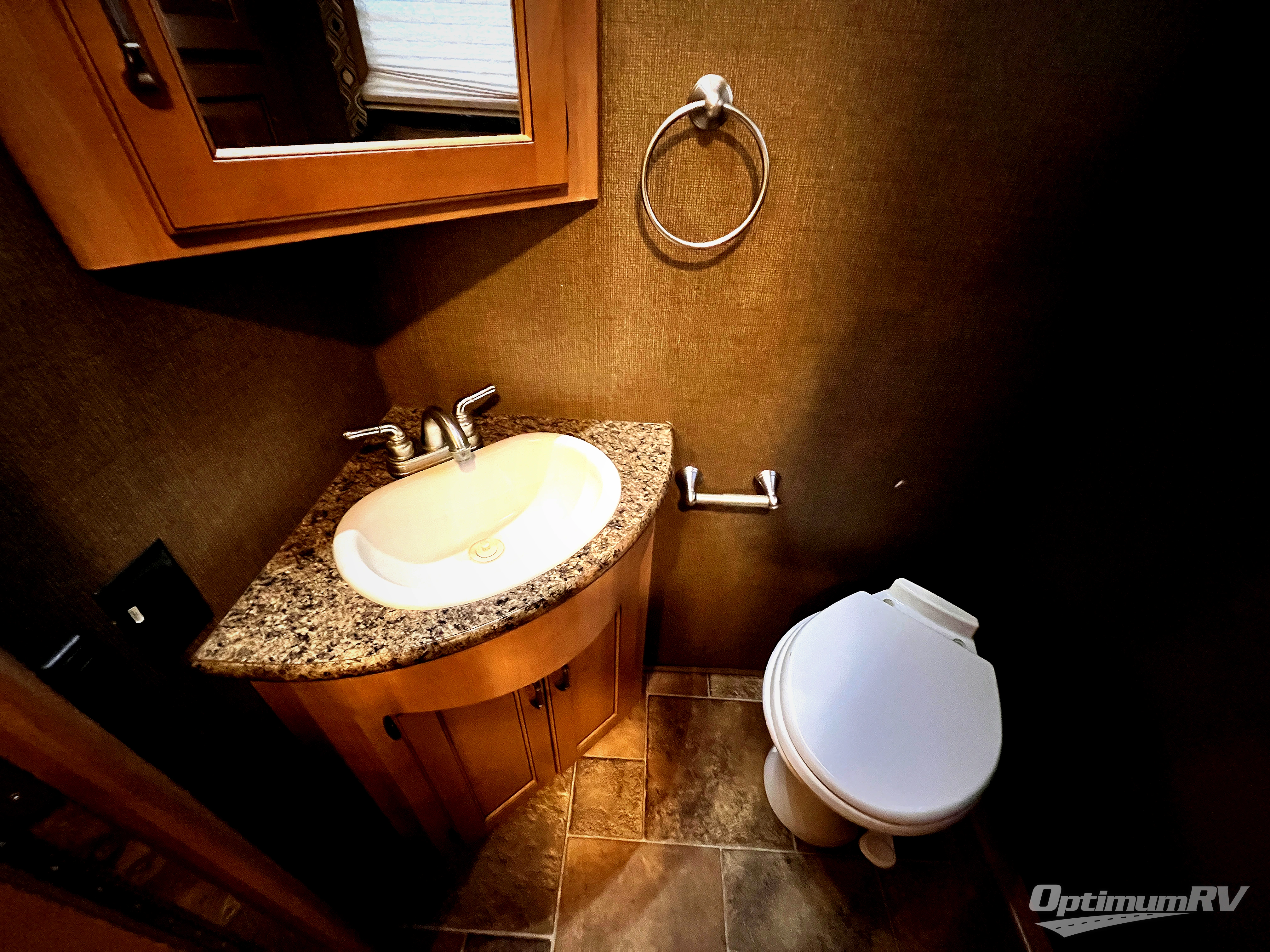 Step inside model 35C and see just how convenient your next road trip can be. There is a slide out dream dinette and theater seating for two opposite the entry door. With overhead storage above the theater seating, and two sets of seat belts, all of your guests and cabinet items will be secure while traveling. There is also a drop down overhead bunk above the cab area for added sleeping space if needed as well. The convenient coffee table between the captain's chairs allows for more table top space for just about anything. You can also choose a sofa with air bed in place of the theater seats if you like. Enjoy the 40" LED TV along the outer bathroom wall.