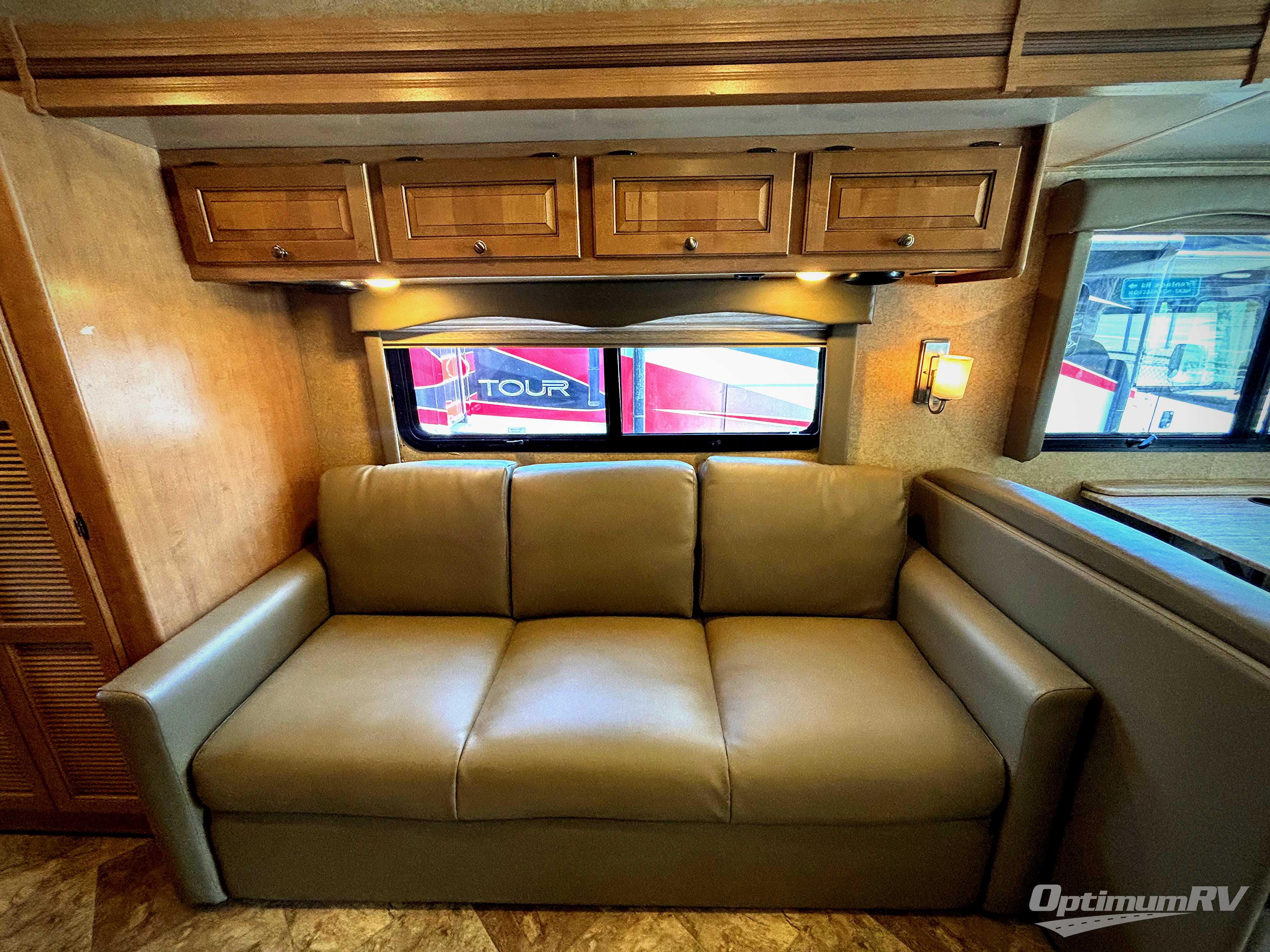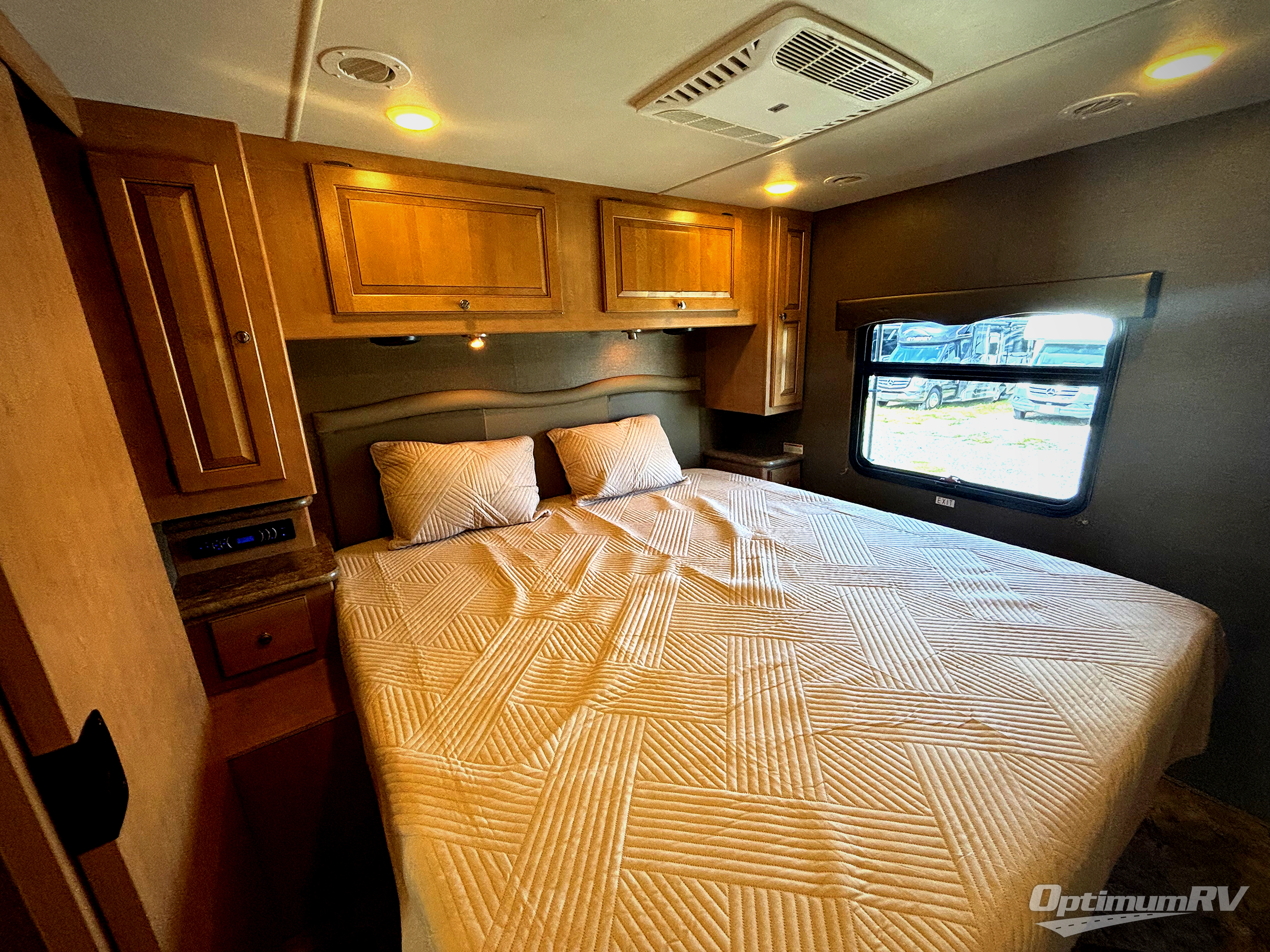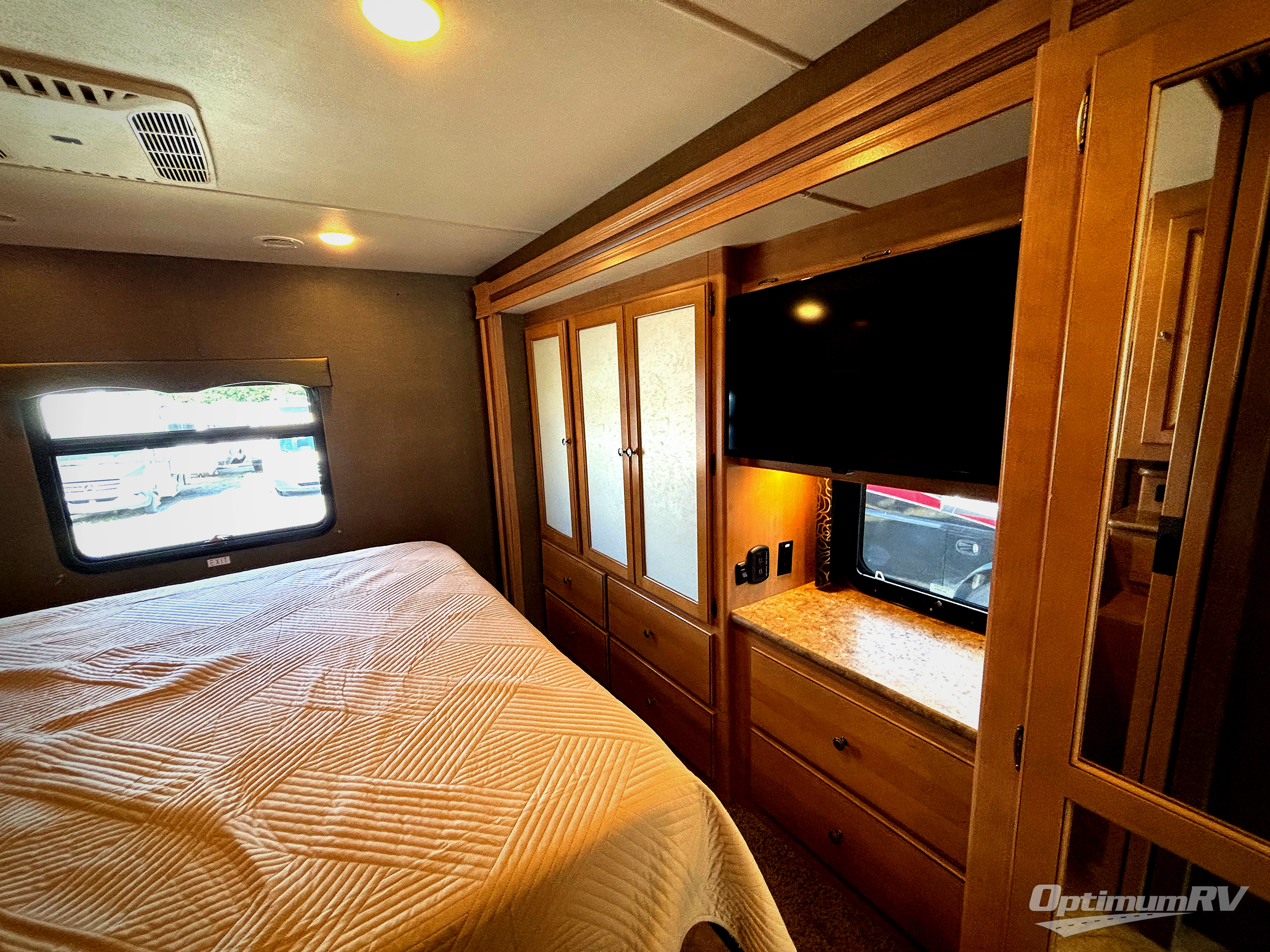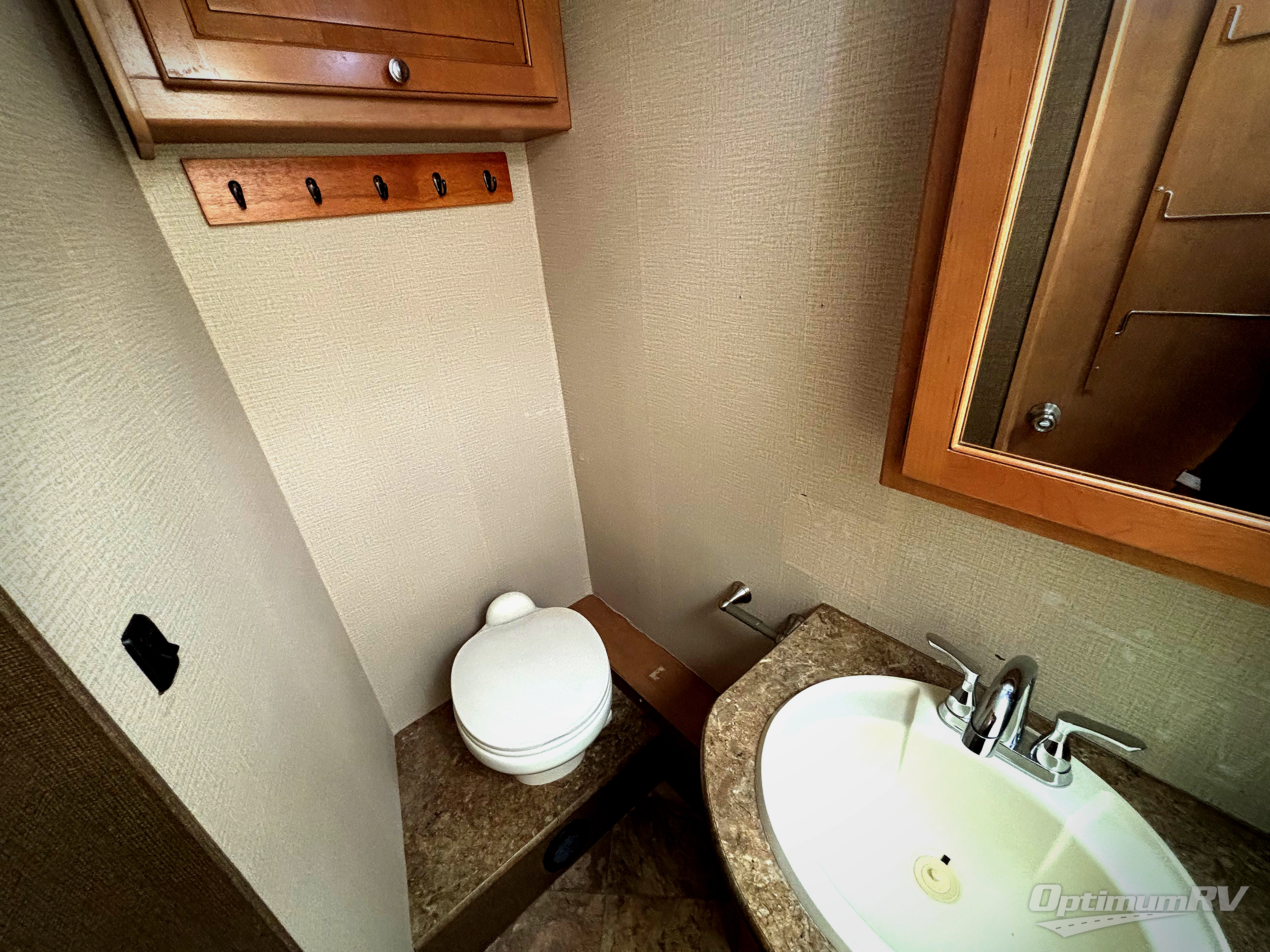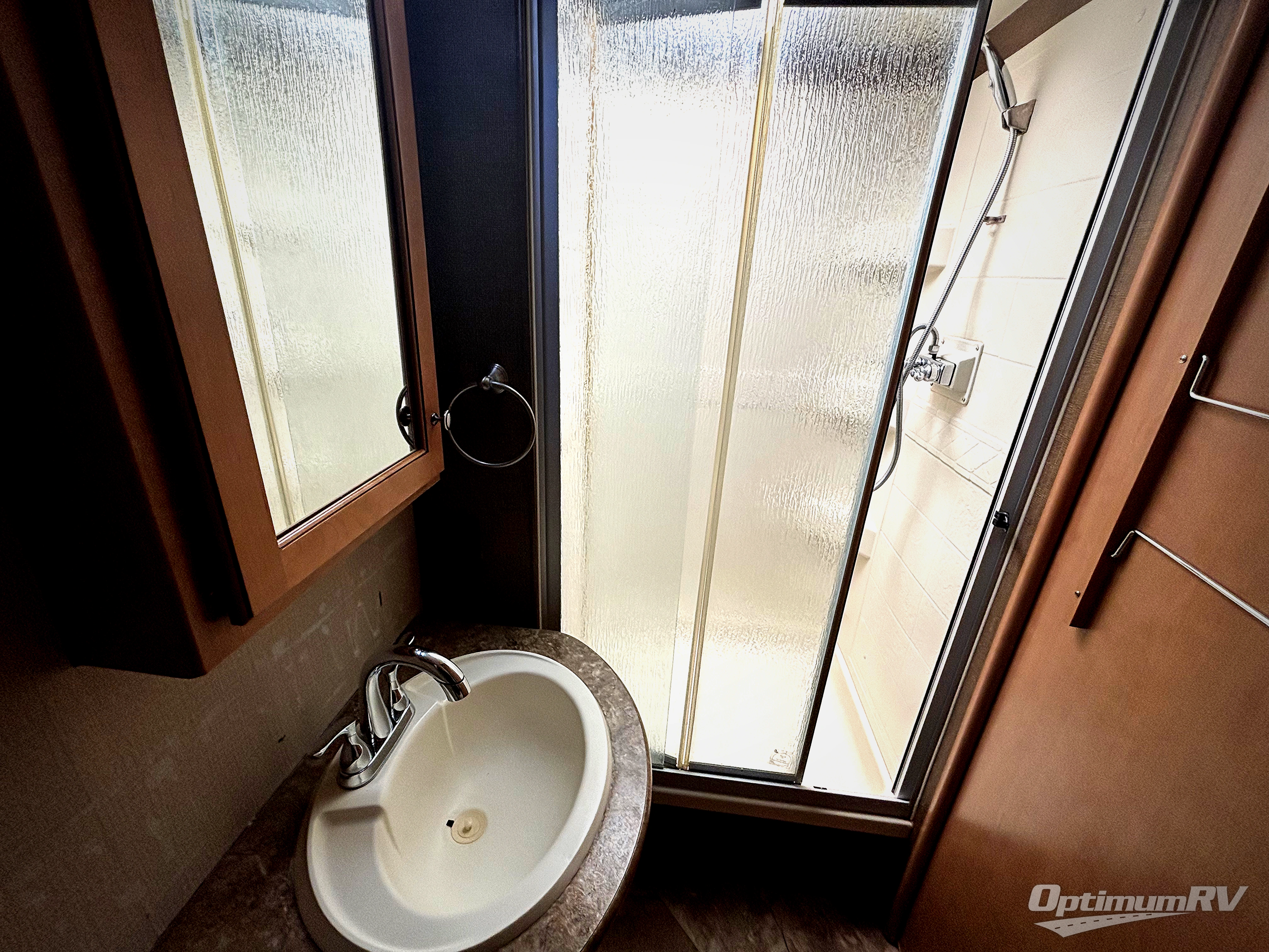 As you enter this Windsport 34F class A gas motor home by Thor Motor Coach, you will notice a full wall slide out along the driver's side that opens up this whole unit. Within the living area, there is a dream dinette, and a sofa with air bed along with overhead cabinets. Just beyond the sofa there are two wardrobes, one that includes washer and dryer prep.