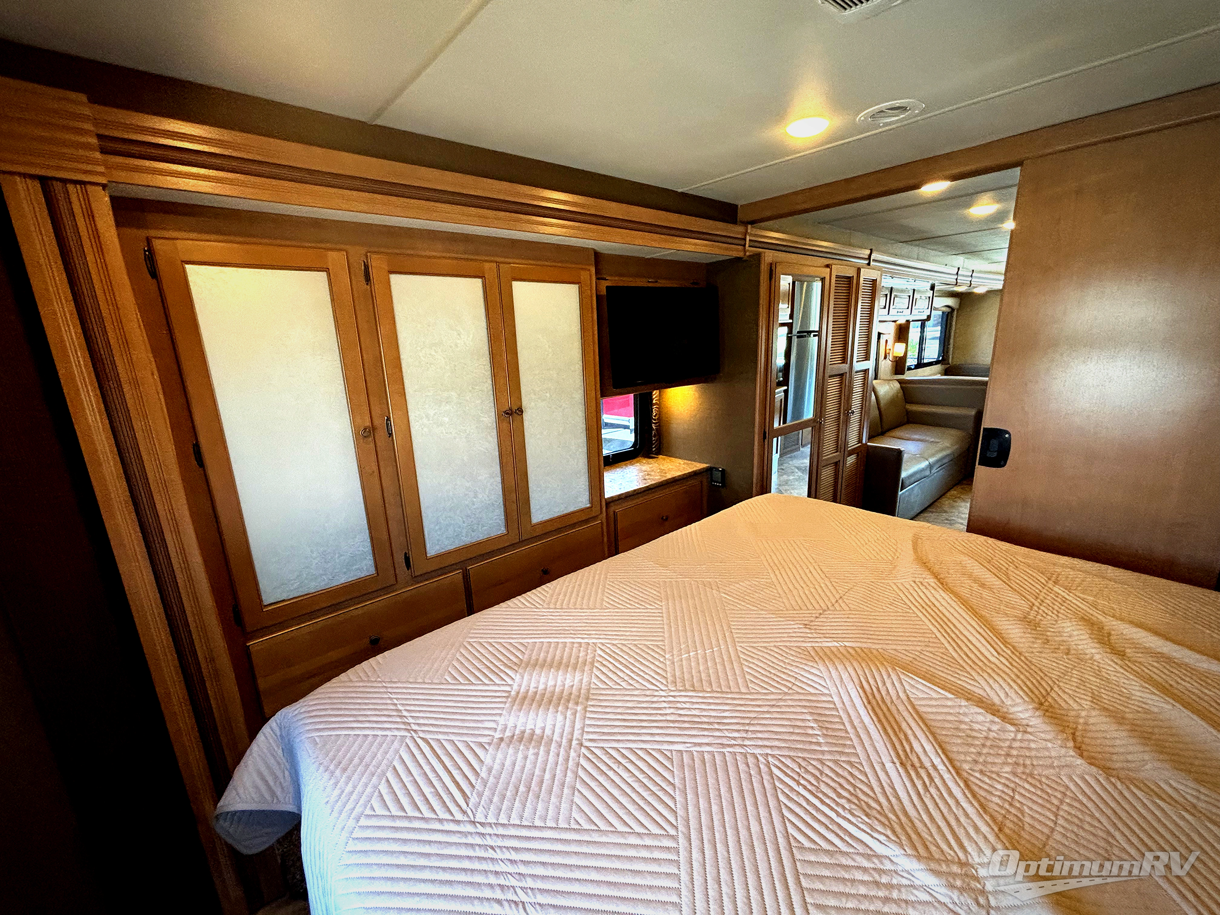 Continuing into the rear bedroom, the slide out offers an additional wardrobe, and a dresser with a location for an optional 32" LED TV. The bedroom also includes a king size bed with nightstands on each side and overhead storage above the head of the bed.