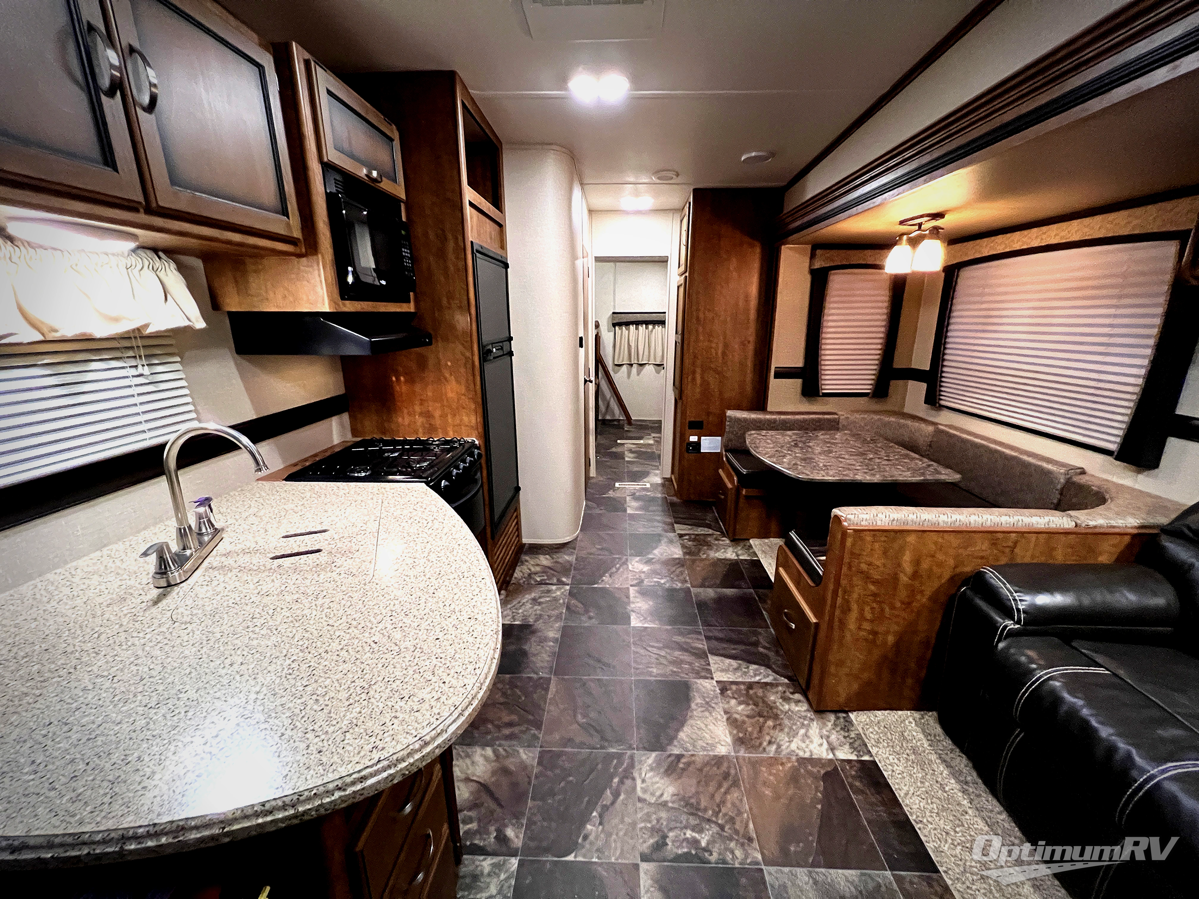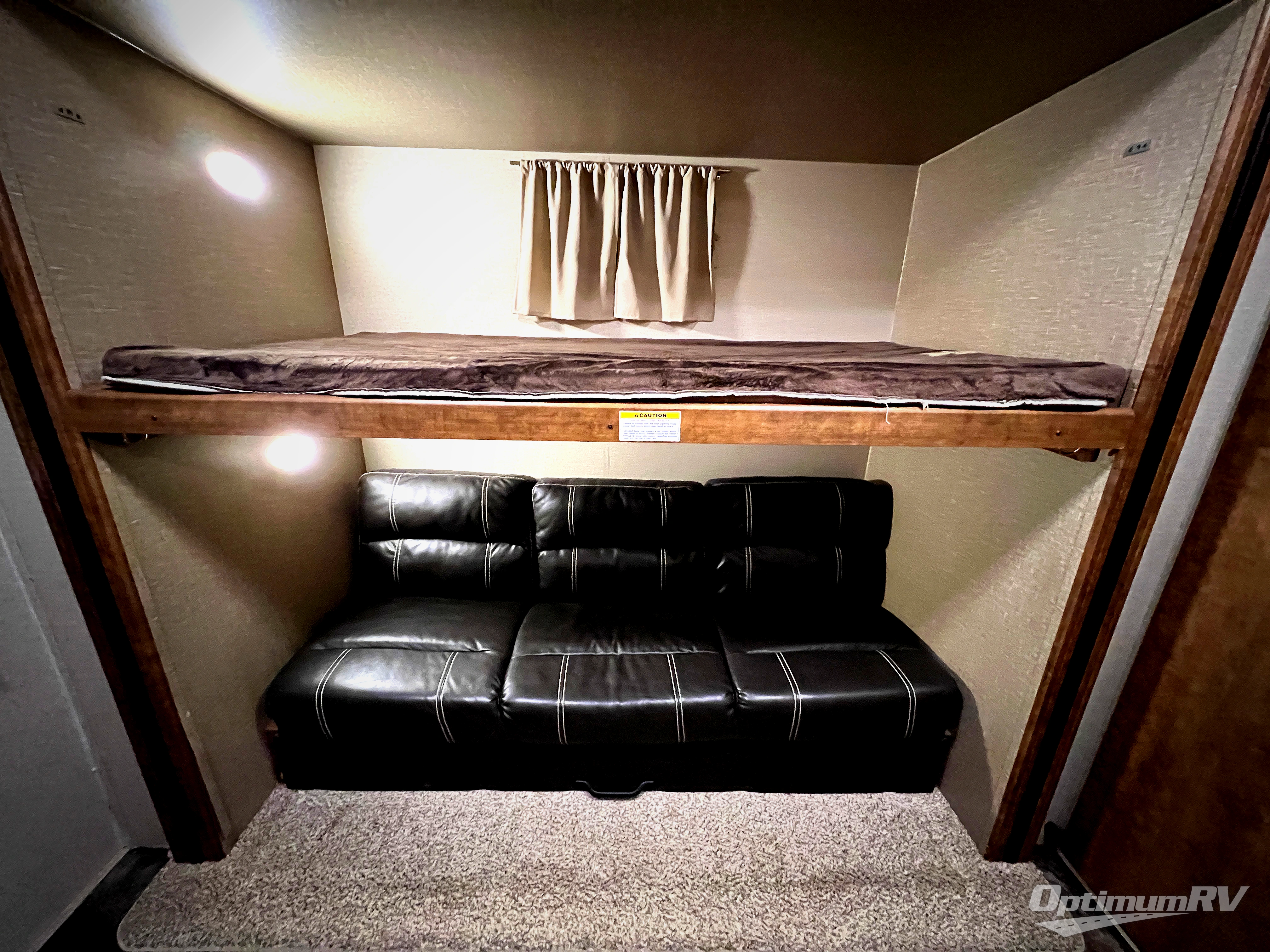 The ReZerve RFZ31BH fifth wheel by CrossRoads RV offers so many great features, such as a bunk house, outside kitchen, and a u-shaped dinette.