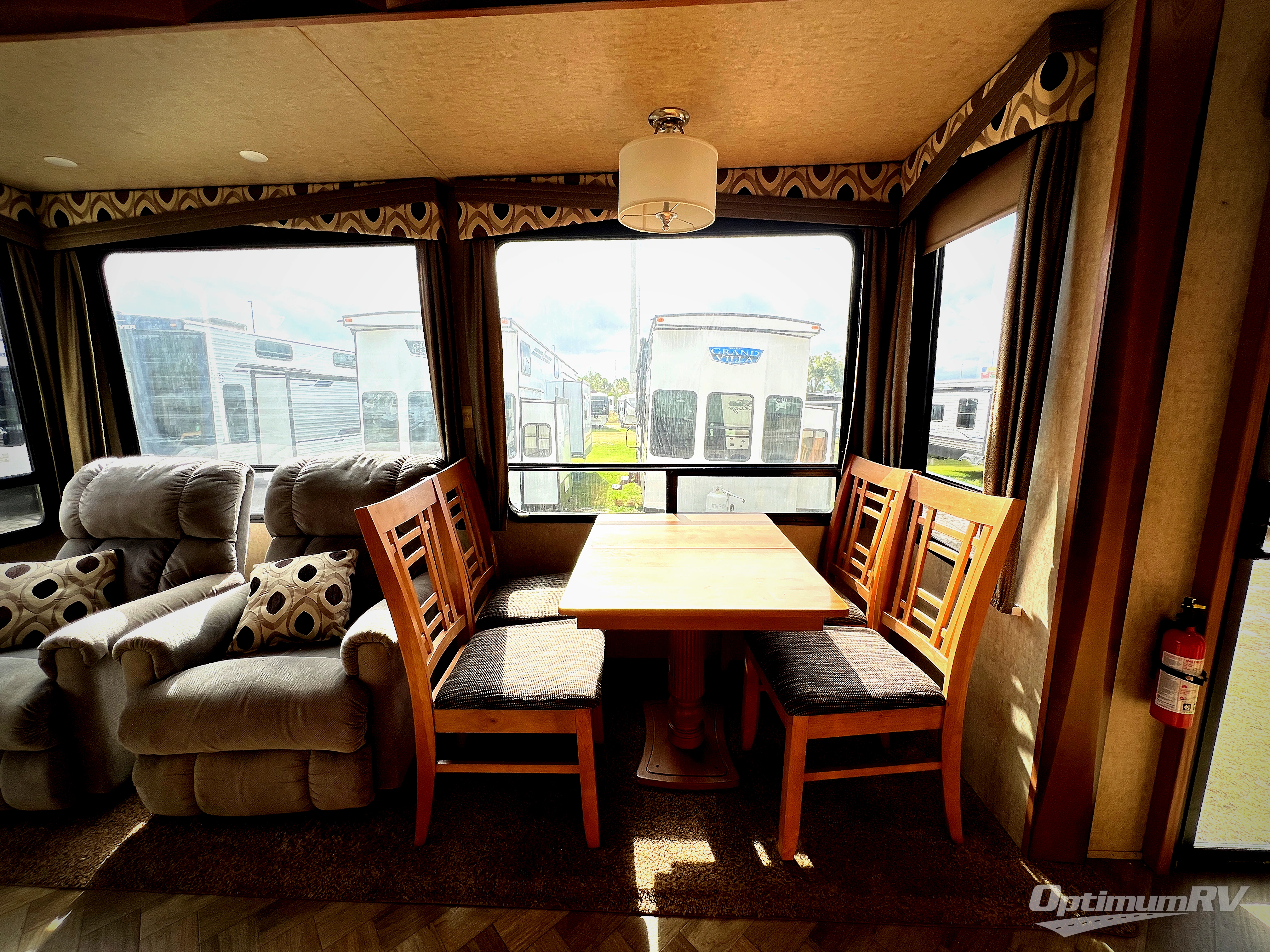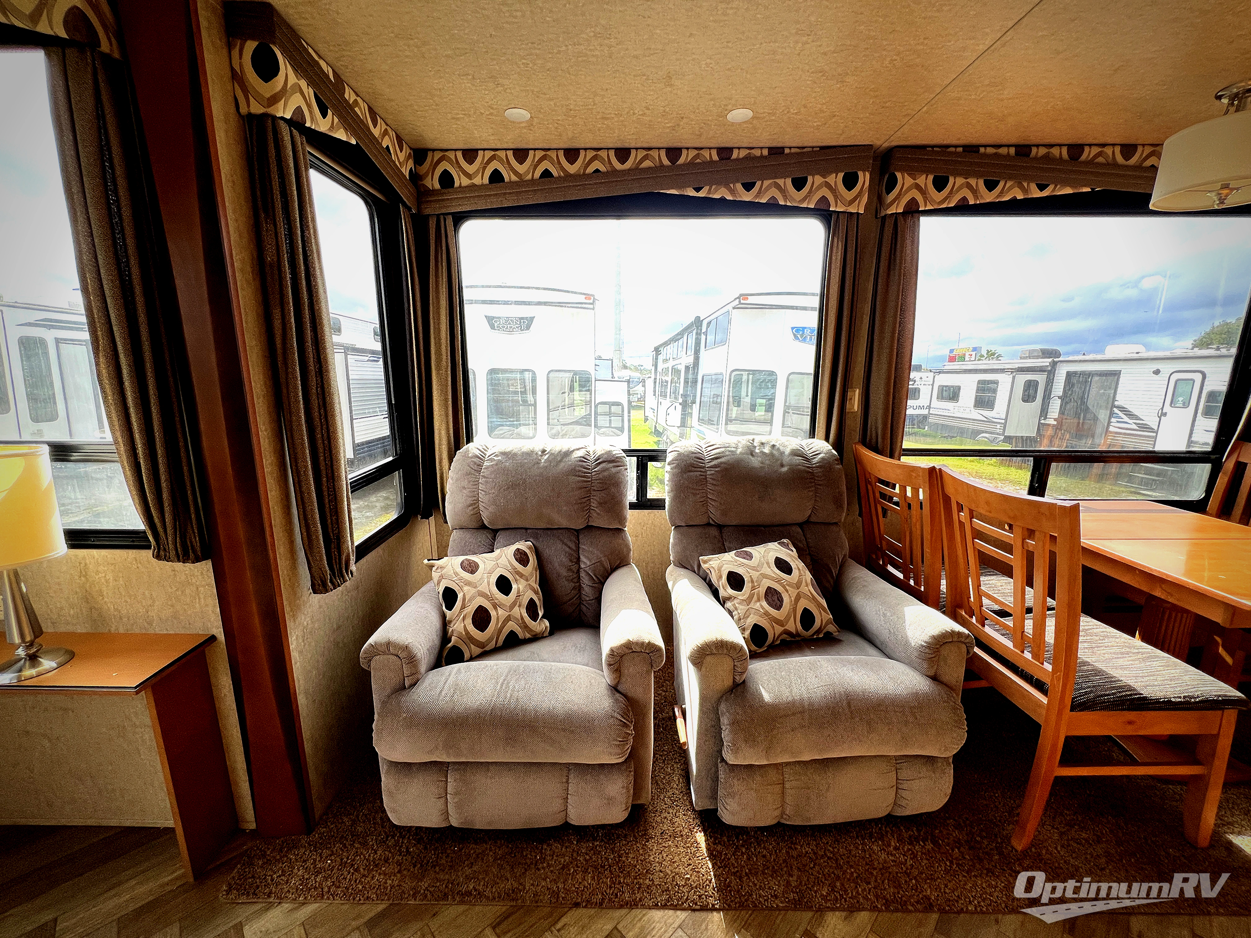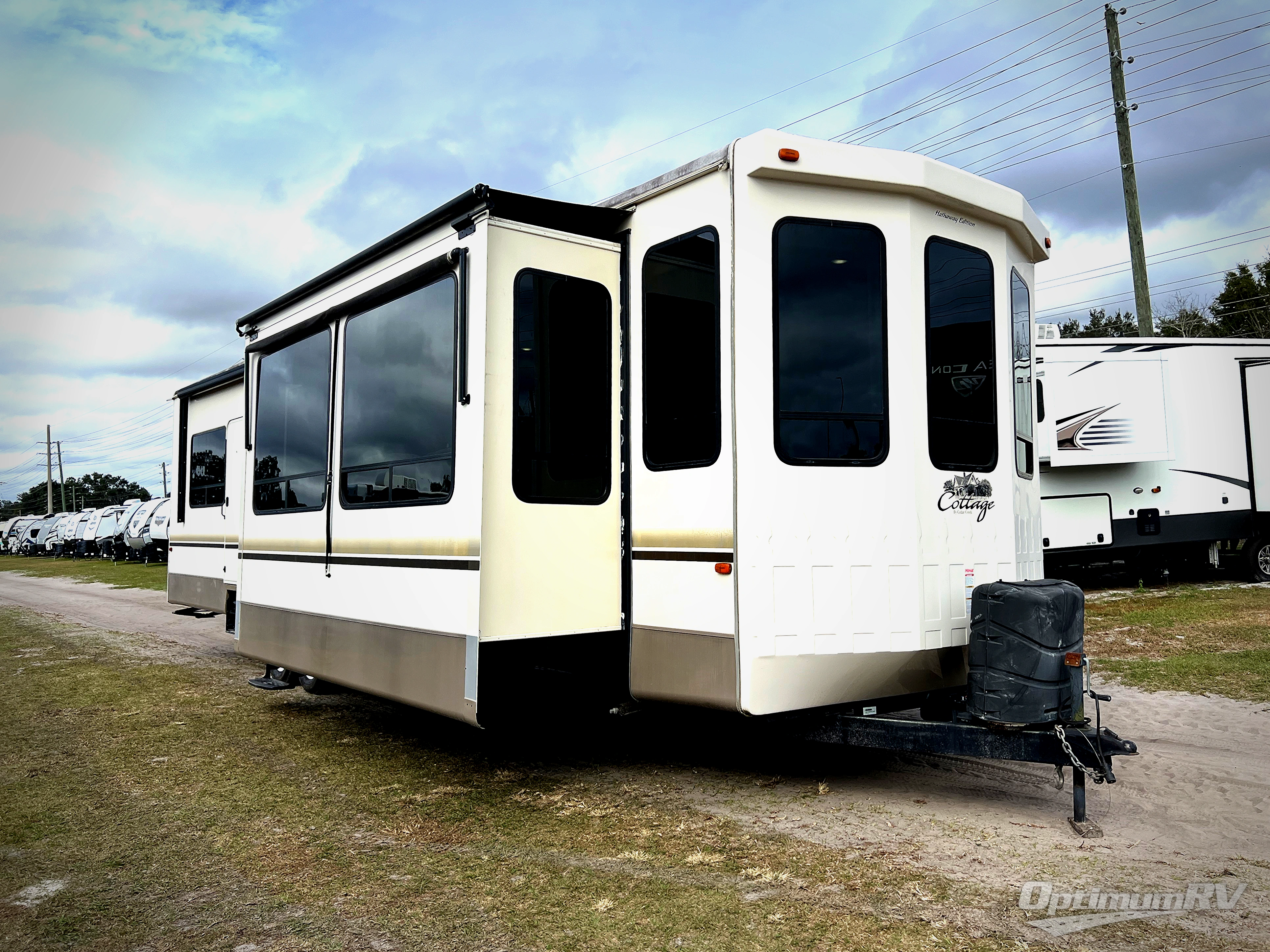 As you enter this Cedar Creek Cottage destination trailer model 40CCK by Forest River you will be wowed by the space that the triple slide outs provide in this destination trailer!
