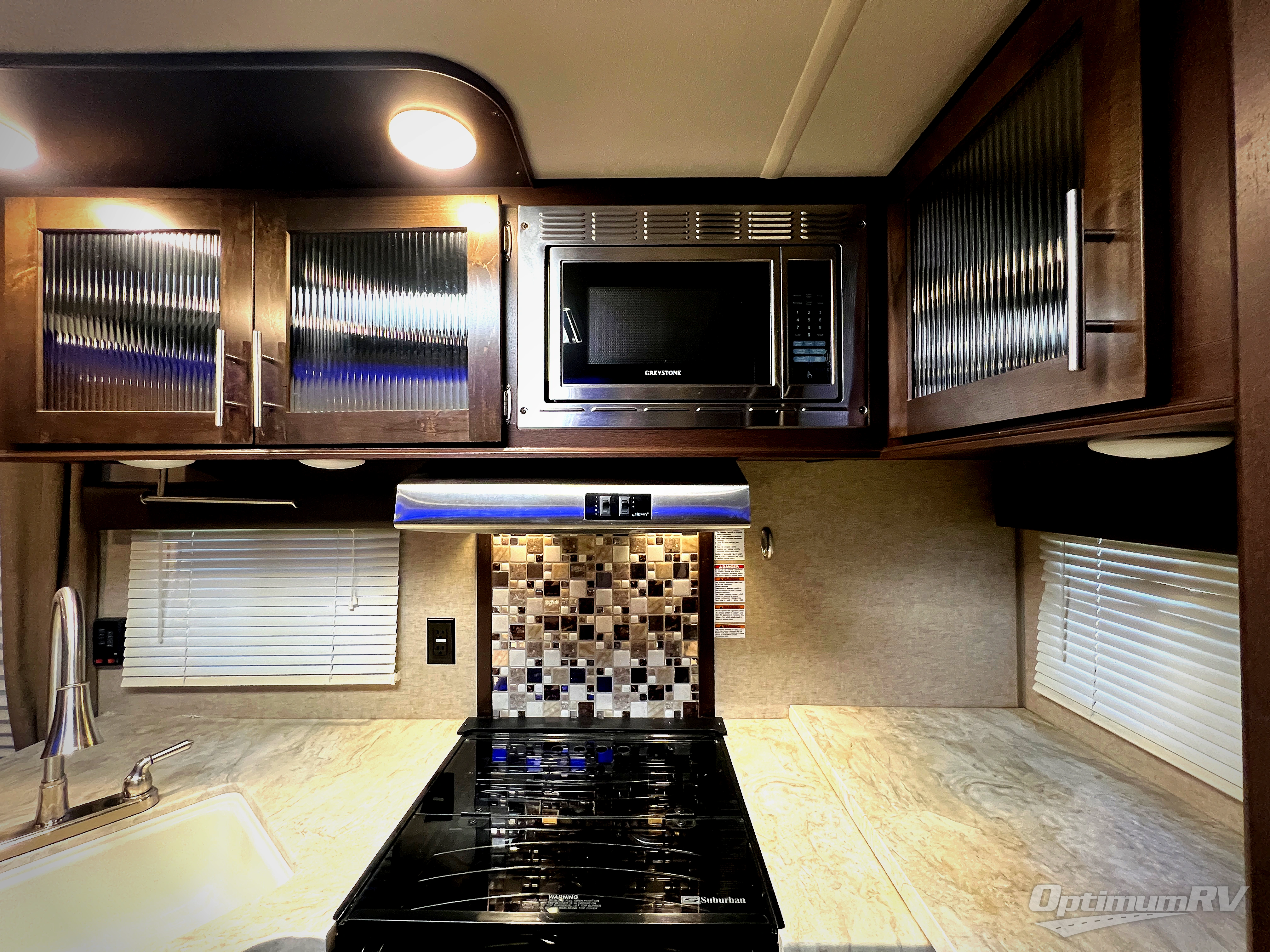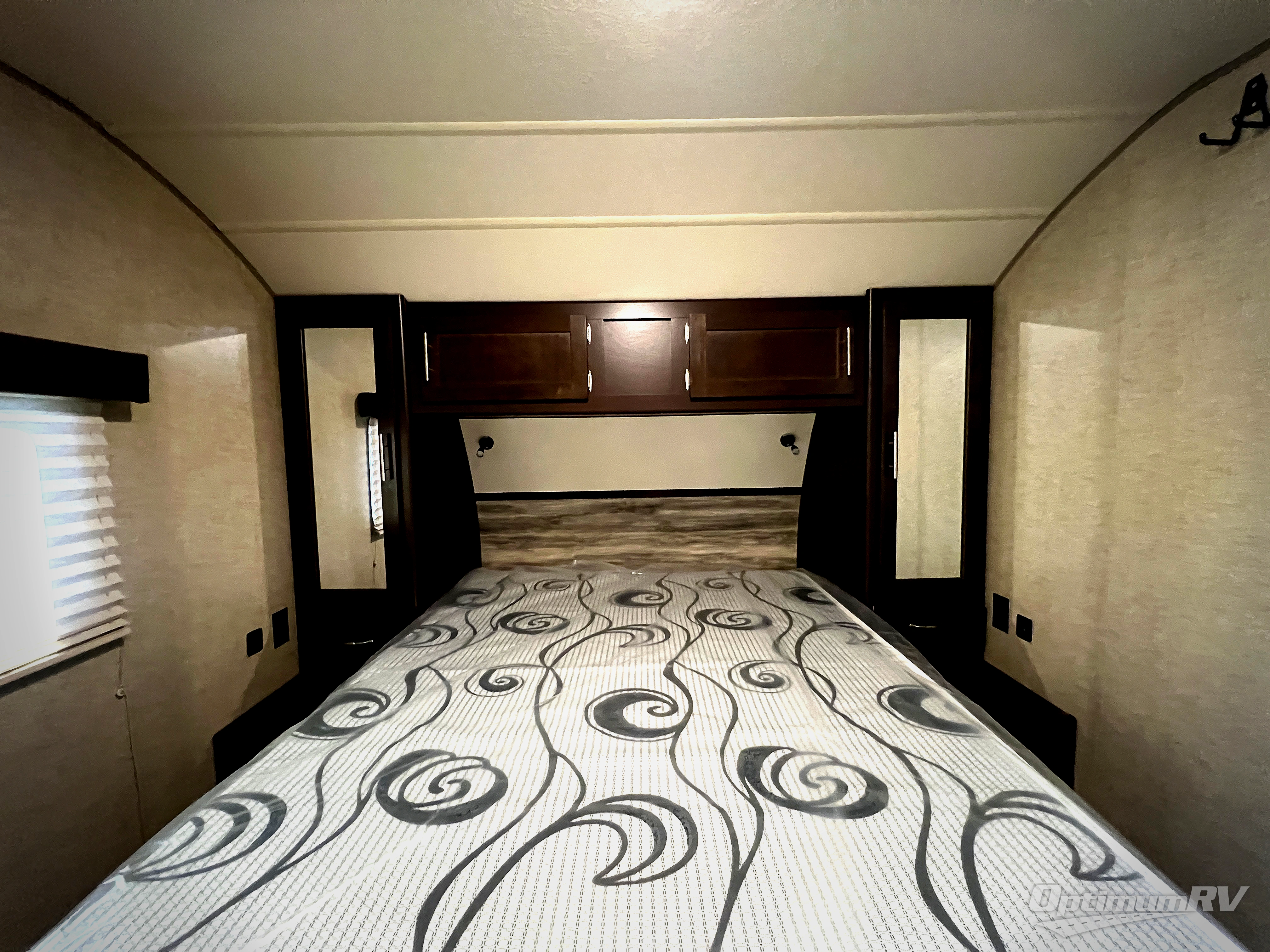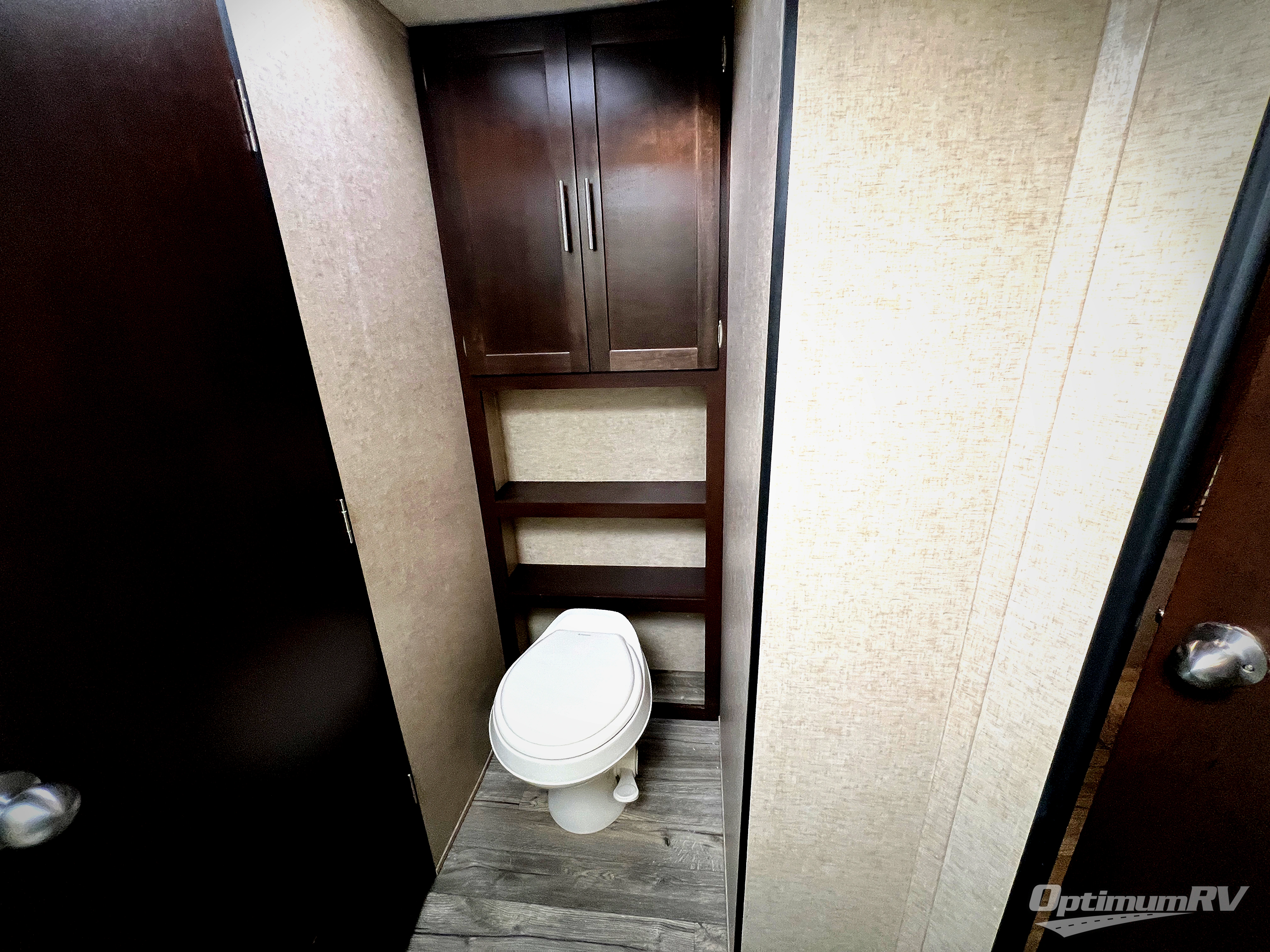 Throughout the trailer there are overhead cabinets and outside there is an outside storage which all provide additional storage, an outdoors LCD TV mount, plus more!